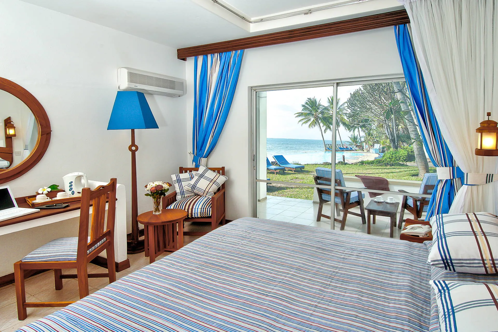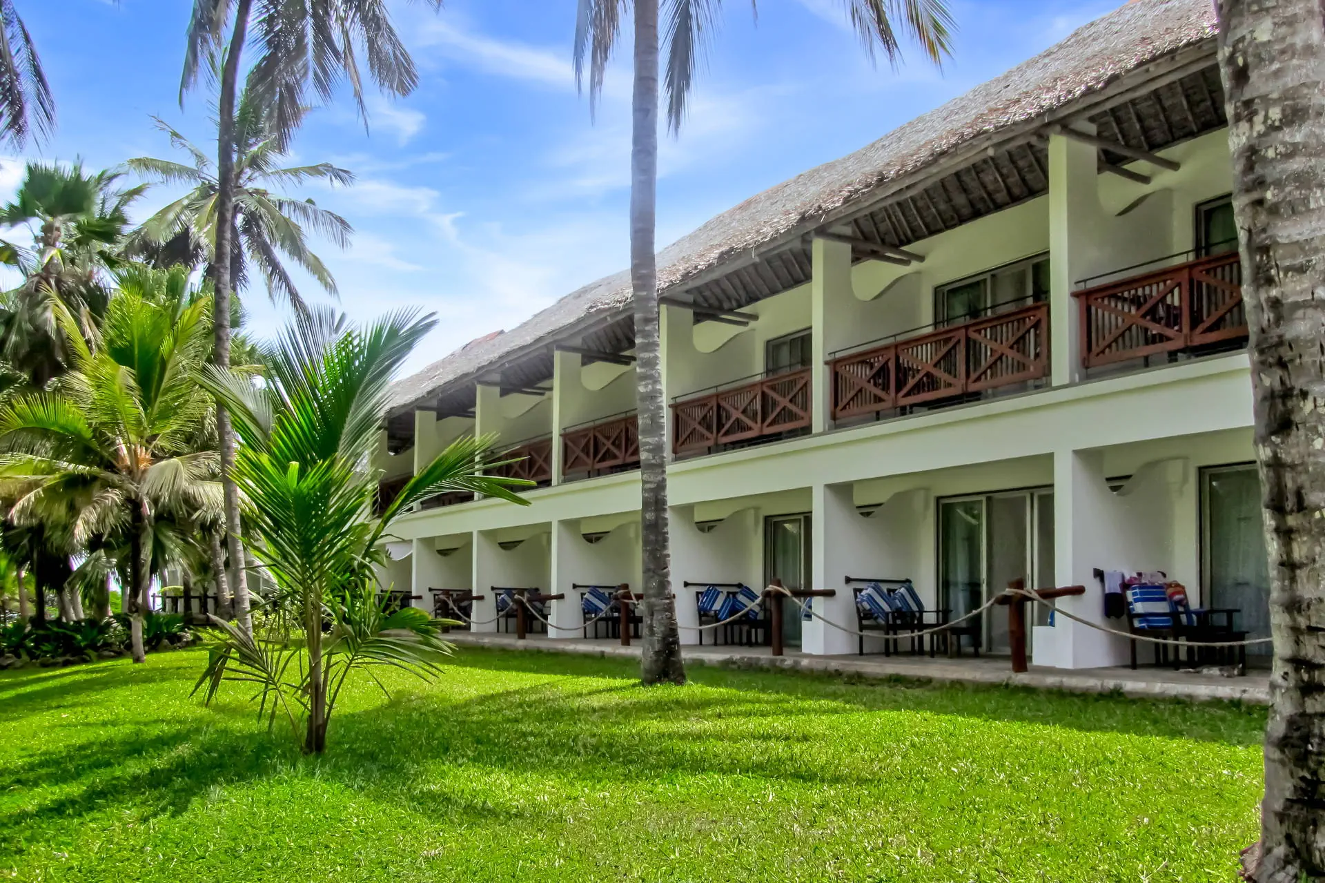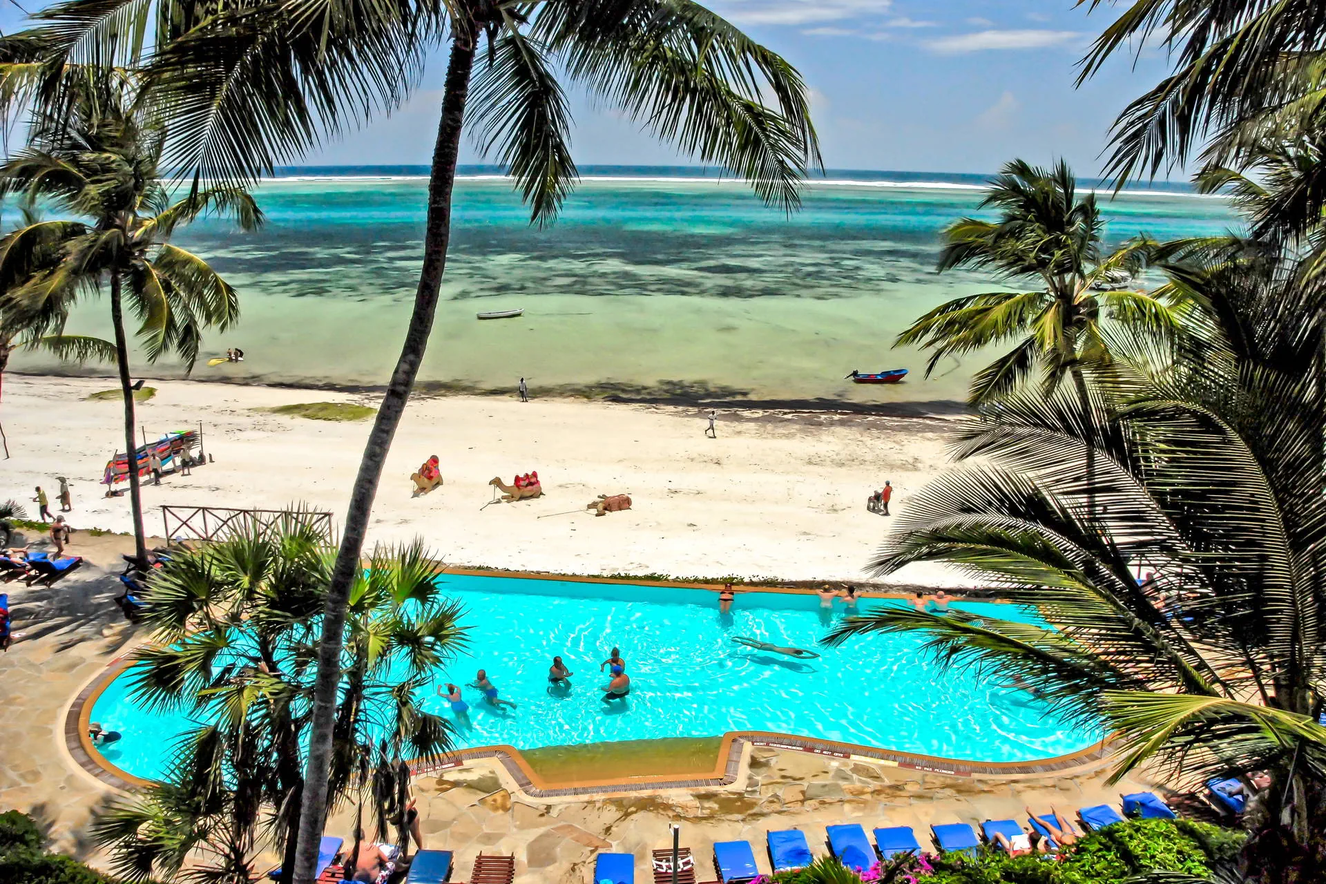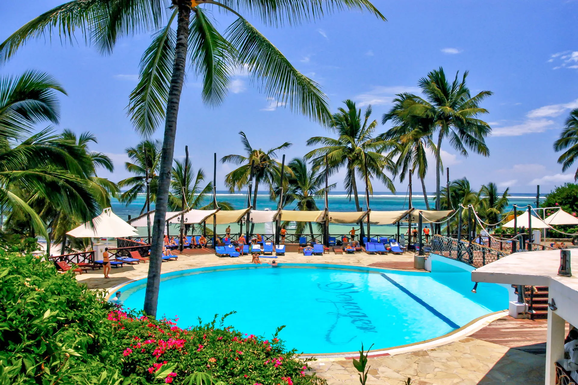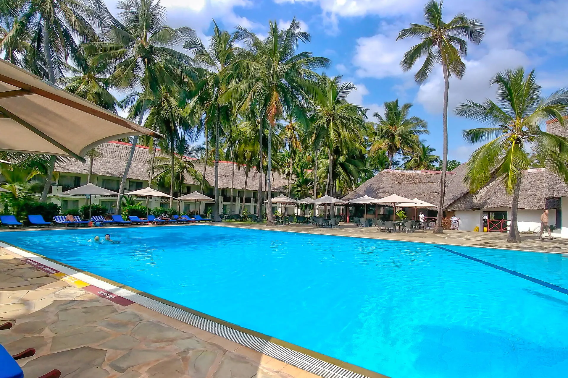 Położenie Stylowy kompleks wypoczynkowy, otoczony przepięknym i doskonale utrzymanym tropikalnym ogrodem, zlokalizowany na północnym wybrzeżu Mombasy. Hotel składa się z dwu i trzypiętrowych budynków hotelowych, zbudowanych w tradycyjnym stylu swahili. Niedaleko hotelu znajduje się farma krokodyli i Park Hallera, czyli ZOO zwierząt afrykańskich, powstałe na zrekultywowanym terenie dawnej kopalni, gdzie 2 razy w ciągu dnia odbywa się karmienie żyraf. Do centrum Mombasy ok. 10 km i ok. 20 km od lotniska. Plaża Hotel usytuowany bezpośrednio przy plaży Nyali z białym piaskiem. Bezpłatne leżaki i parasole na terenie ogrodu przy plaży. Do dyspozycji gości Recepcja 24 h, 3 restauracje: główna, restauracja a’la carte serwująca owoce morza (dodatkowo płatna) i włoska (bezpłatna po wcześniejszej rezerwacji stolika w recepcji). 4 bary, w tym lobby bar otwarty 24 h (po 24:00 dodatkowo płatny). 4 baseny ze słodką wodą (sportowy, przy plaży, z jacuzzi i wodospadem oraz brodzik dla dzieci), bezpłatne leżaki, parasole i ręczniki przy basenie. Ponadto: kantor, sklepik z pamiątkami, salon piękności. Pokoje Hotel posiada 236 pokoi stylowo urządzonych, o różnym standardzie. Pokoje typu standard (pow. ok. 18 m2) z widokiem na otoczenie hotelu wyposażone są w: łazienkę (prysznic, suszarka do włosów), indywidualnie sterowaną klimatyzację, TV, telefon, sejf, mini lodówkę, zestaw do przygotowywania kawy i herbaty oraz balkon lub taras. Pokoje superior są większe, posiadają dodatkowo widok na ogród. Za dopłatą i na potwierdzenie pokoje superior i deluxe z widokiem na ocean. Wyżywienie All Inclusive: śniadania, lunche i obiadokolacje w formie bufetu. Lokalne napoje bezalkoholowe i alkoholowe i dostępne w barach (10:00-23:00) oraz przekąski (12:00-18:00). Program sportowy i animacyjny Hotel oferuje bogate dzienne i wieczorne animacje m.in.: aerobik w wodzie, zabawy sportowe, przedstawienia. Mini klub i zajęcia edukacyjne dla dzieci (m.in.: z biologii morza, edukacji ekologicznej). 2 korty tenisowe (oświetlenie i sprzęt dodatkowo płatny), boiska sportowe, rzutki, tenis stołowy. Na plaży boisko do siatkówki plażowej i centrum sportów wodnych (dodatkowo płatne): nauka nurkowania, wypożyczalnia sprzętu wodnego. W pobliżu hotelu znajduje się 18-dołkowe pole golfowe. Internet Bezpłatny Internet Wi-Fi w lobby oraz w pokojach. Kategoria lokalna **** Naszym zdaniem Sprawdzony i lubiany hotel, z bogatym All Inclusive i szeroką ofertą sportową i animacyjną. Doskonały hotel na rodzinne wakacje czy wypad z przyjaciółmi, tuż przy pięknej plaży z białym piaskiem. Pokoje czyste i przestronne. W pobliżu hotelu liczne atrakcje!