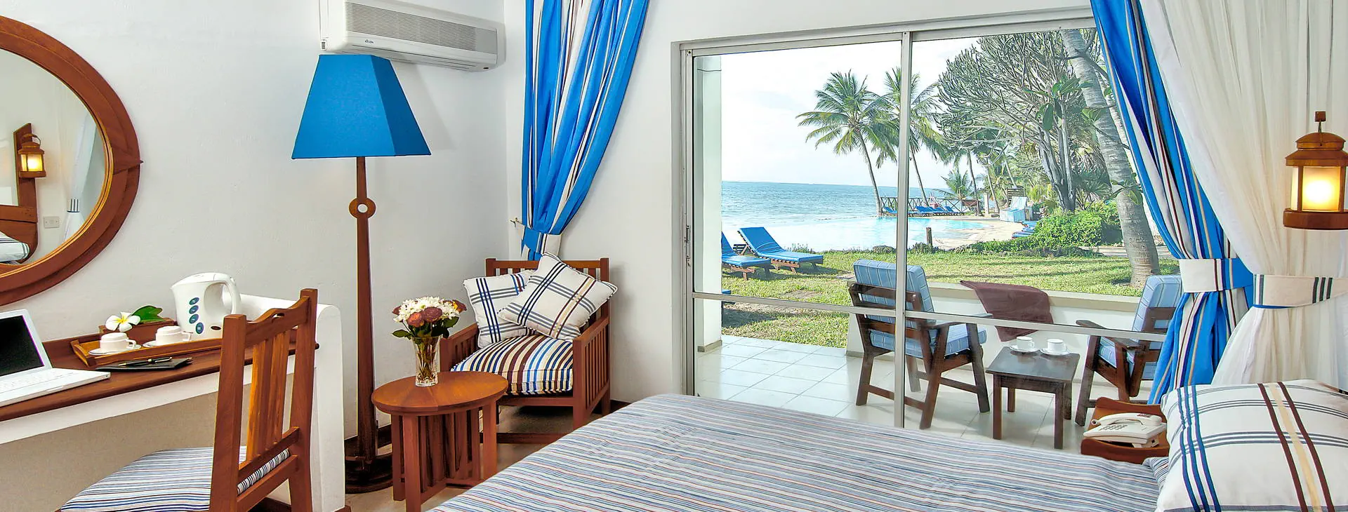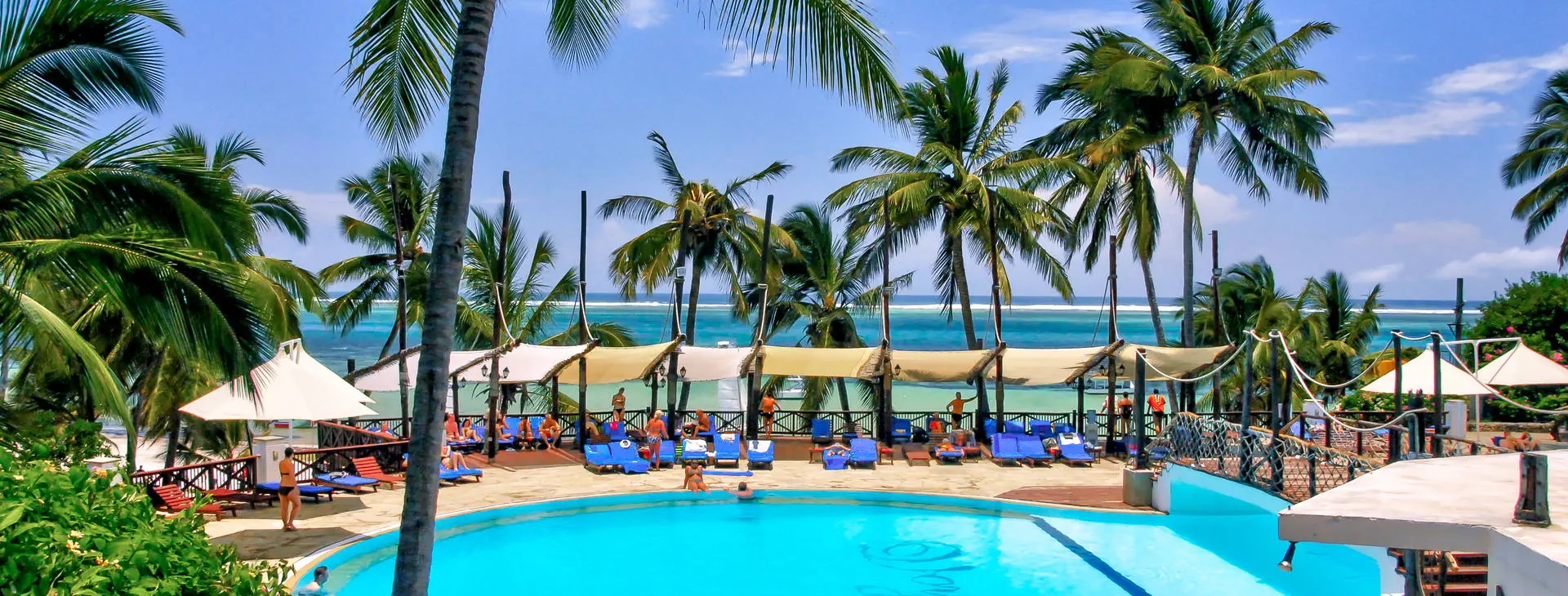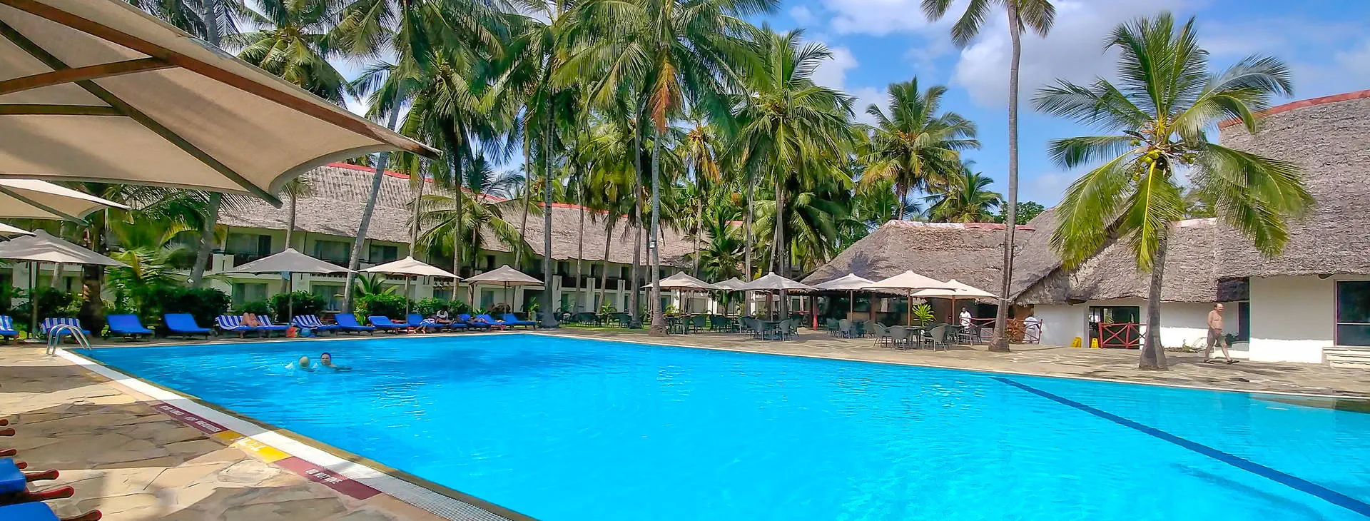 Położenie: Stylowy kompleks hotelowy, otoczony przepięknym i doskonale utrzymanym tropikalnym ogrodem, zlokalizowany na północnym wybrzeżu Mombasy. Niedaleko hotelu znajduje się farma krokodyli i Park Hallera, czyli ZOO zwierząt afrykańskich, powstałe na zrekultywowanym terenie dawnej kopalni. Do centrum Mombasy ok. 10 km, do lotniska ok. 20 km. Plaża: Hotel bezpośrednio przy plaży Nyali z białym, drobnym piaskiem. Leżaki, parasole i ręczniki kąpielowe bezpłatne w ogrodzie przy plaży. Do dyspozycji gości: Recepcja 24 h, 3 restauracje: główna Mashua, restauracja a’la carte Smugglers’ Cove specjalizująca się w owocach morza (dodatkowo płatna, dla Gości hotelowych 20% zniżki) i włoska Minestrone (bezpłatna po wcześniejszej rezerwacji stolika w recepcji). 4 bary: Kaskazi przy basenie, całodobowy Harbour (po 24:00 dodatkowo płatny) serwujący koktajle, Sports bar i Lookout bar. Na terenie hotelu znajdują się 3 baseny ze słodką wodą (sportowy, przy plaży, z jacuzzi i wodospadem oraz brodzik dla dzieci) z bezpłatnymi leżakami, parasolami i ręcznikami kąpielowymi. Płatne dodatkowo: kantor, sklep z pamiątkami, salon piękności, fryzjer. Pokoje: Hotel składa się z 2- i 3-piętrowych budynków hotelowych, zbudowanych w tradycyjnym stylu swahili, w których rozlokowanych jest 236 komfortowo urządzonych pokoi, o różnym standardzie. Pokoje standardowe o pow. ok. 18 m2, mogą zakwaterować max. 3 os. dorosłe lub rodzinę 2+1, wyposażone są w: łazienkę z prysznicem, suszarkę do włosów, indywidualnie sterowaną klimatyzację lub wiatrak, TV Sat., telefon, bezpłatny sejf, mini lodówkę, zestaw do przygotowywania kawy i herbaty oraz balkon lub taras z widokiem na ogród i otoczenie hotelu. Pokoje superior z widokiem na ogród są większe, mogą zakwaterować max. 3 os. dorosłe lub rodzinę 2+2. Pokoje superior z widokiem na ocean dla max. 2 os., na zapytanie łóżeczko dla dziecka do lat 2. Za dopłatą i na potwierdzenie pokoje deluxe z widokiem na ocean dla max. 3 os. dorosłych lub rodziny 2+2. Wyżywienie: All Inclusive: śniadania, lunche i obiadokolacje w formie bogatego bufetu. Lokalne napoje bezalkoholowe i alkoholowe dostępne w hotelowych barach w godzinach 10:00-23:00. Przekąski w ciągu dnia w godzinach 12:00-18:00. Każdego dnia hotel oferuje dania tematyczne. Wyżywienie na objeździe: śniadania, obiady i kolacje zgodnie z opisem w programie wycieczki. Program sportowy i animacyjny: Hotel oferuje bogate dzienne i wieczorne animacje m.in.: aerobik w wodzie, zabawy sportowe, przedstawienia. Ponadto: 2 korty tenisowe (oświetlenie i sprzęt dodatkowo płatny), boiska sportowe, siatkówka plażowa, tenis stołowy, rzutki. Dla dzieci: mini klub, zabawy w basenie, zajęcia edukacyjne dla dzieci (m.in.: z biologii morza, edukacji ekologicznej). Płatne dodatkowo: bilard, centrum sportów wodnych-nauka nurkowania, wypożyczalnia sprzętu wodnego, wyprawy na połów ryb w pobliżu hotelu 18-dołkowe pole golfowe. Internet: Bezpłatny Internet Wi-Fi w lobby oraz w pokojach. Kategoria lokalna: Voyager Beach****/zakwaterowanie na objeździe*** Strona www: www.heritage-eastafrica.com Naszym zdaniem: Bardzo dobrej klasy hotel, stylizowany na okręt, który codziennie zabiera swoich Pasażerówdo innego portu dzięki szerokiej ofercie sportowo-animacyjnej. Hotel cieszy się bardzo dobrymi opiniami Gości i chwalony jest szczególnie za dobrą kuchnię w bogatej formule All Inclusive. Doskonały wybór na beztroskie rodzinne wakacje czy wypad z przyjaciółmi! W naszej ofercie od wielu sezonów.