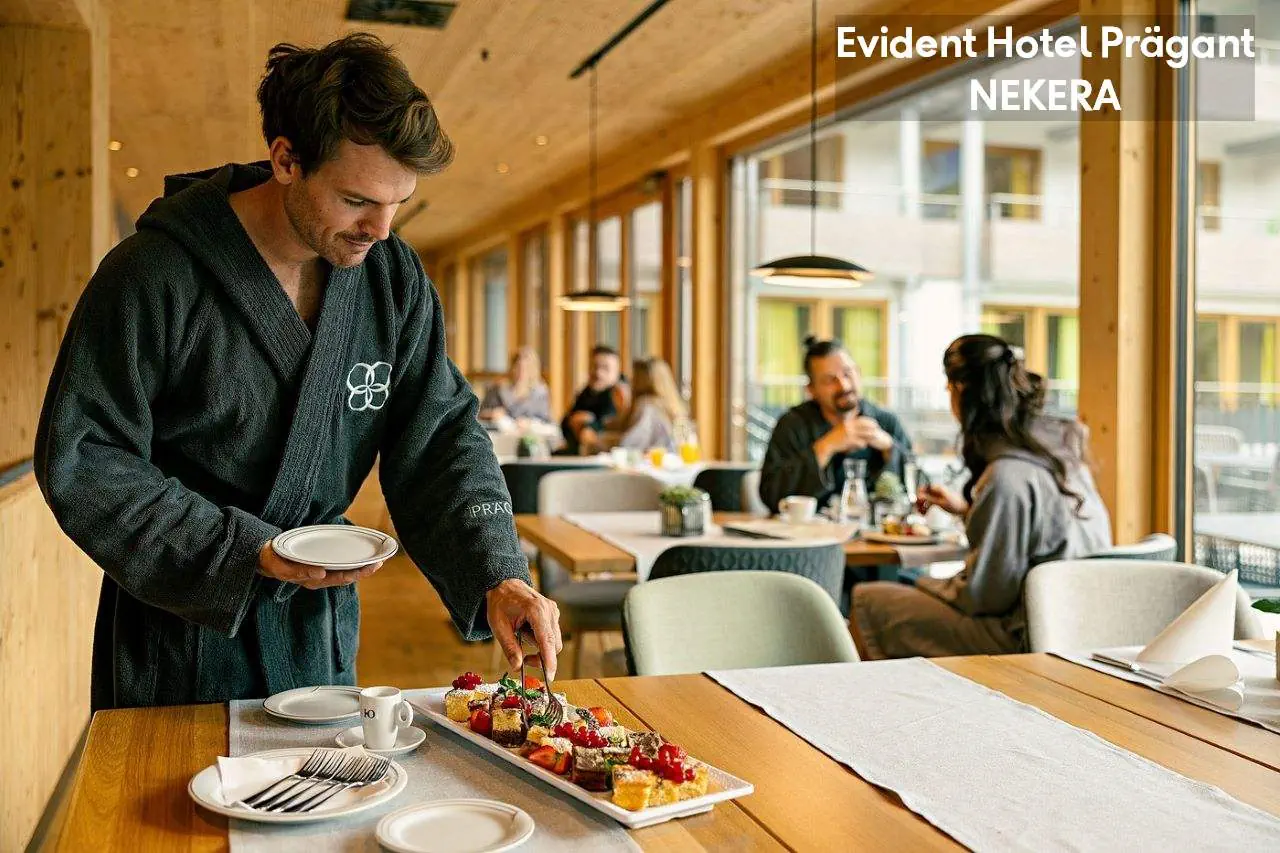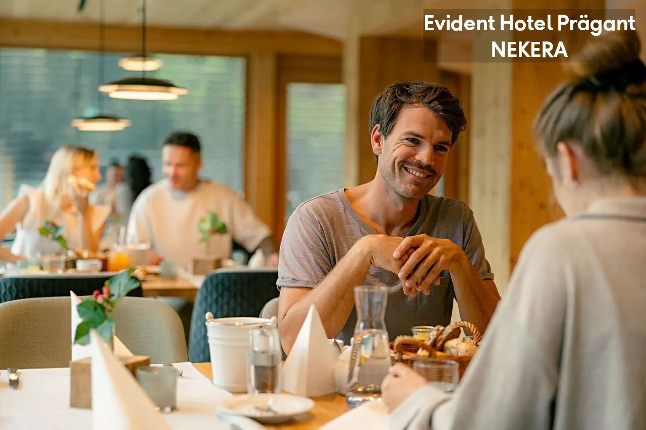 z dwoma posiłkami: śniadanie w formie bufetu (7-10:00), kolacja w formie 5-daniowego menu, z bufetem przystawek i deserów. Kolacje tematyczne, produkty od lokalnych dostawców, kuchnia austriacka i międzynarodowa. Napoje do kolacji za dodatkową opłatą. Popołudniowe apres ski w godz. 14-16:00 (ciasto, słodkości)