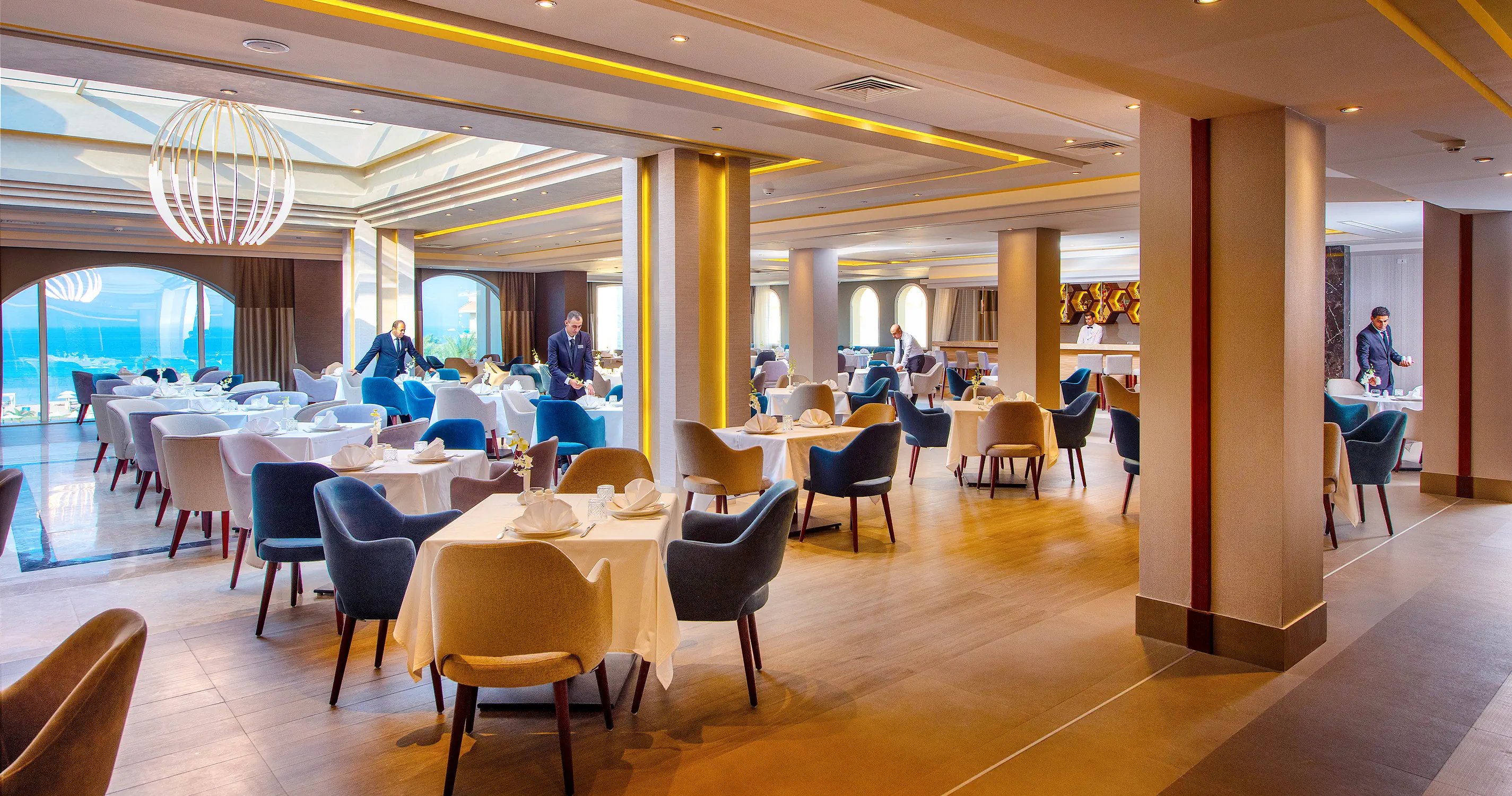 Ultra All Inclusive Śniadanie, obiad i kolacja serwowane w restauracji głównej w godzinach jej otwarcia Przekąski w ciągu dnia w restauracjach wskazanych przez hotel Napoje bezalkoholowe oraz alkoholowe lokalnej produkcji w brach wskazanych przez hotel przez 24h Możliwość skorzystania z trzech restauracji a`la carte: włoskiej, śródziemnomorskiej oraz chińskiej VIP Package Goście, którzy wykupili pokój Suite mają automatycznie pakiet VIP Package Możliwość korzystania ze wszystkich restauracji a`la Carte, basenu na dachu i innych dodatkowych usług (szczegóły na stronie hotelu oraz w recepcji)