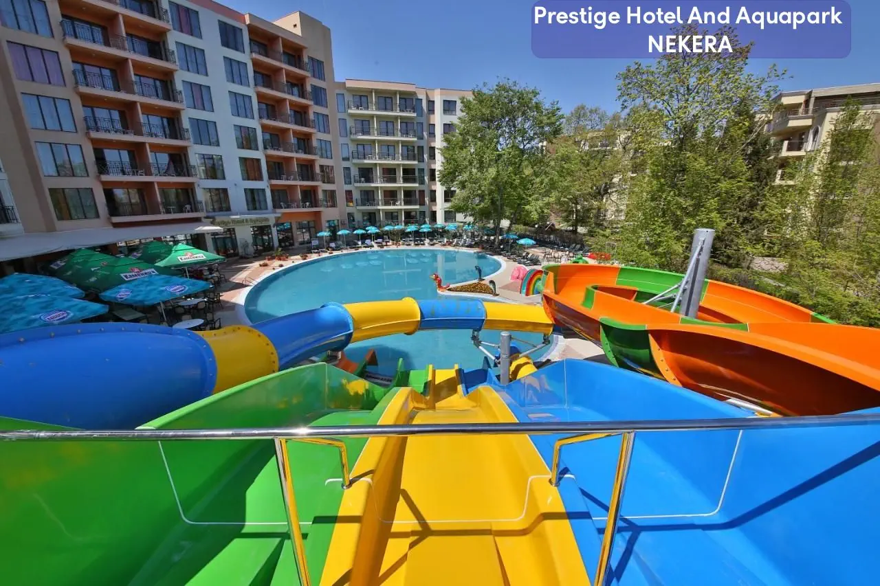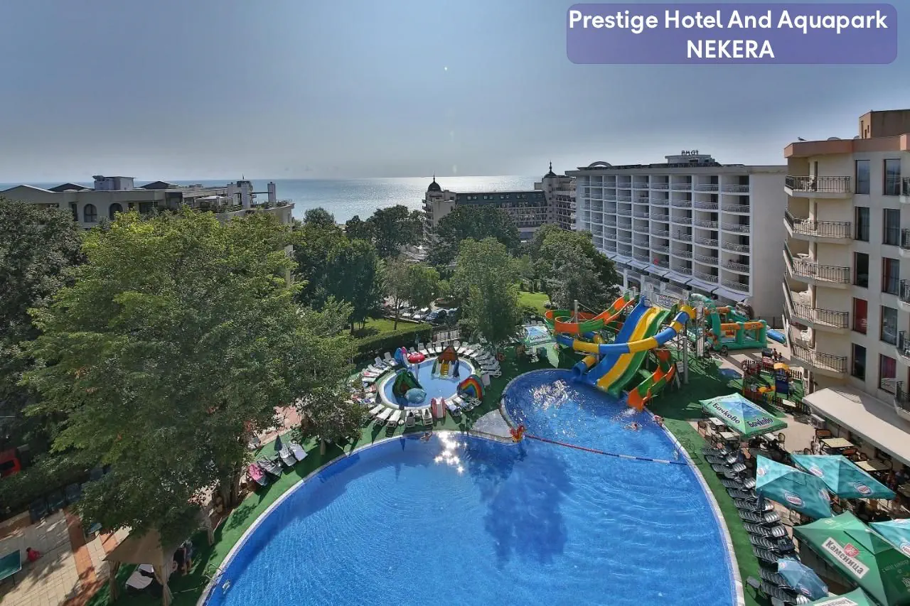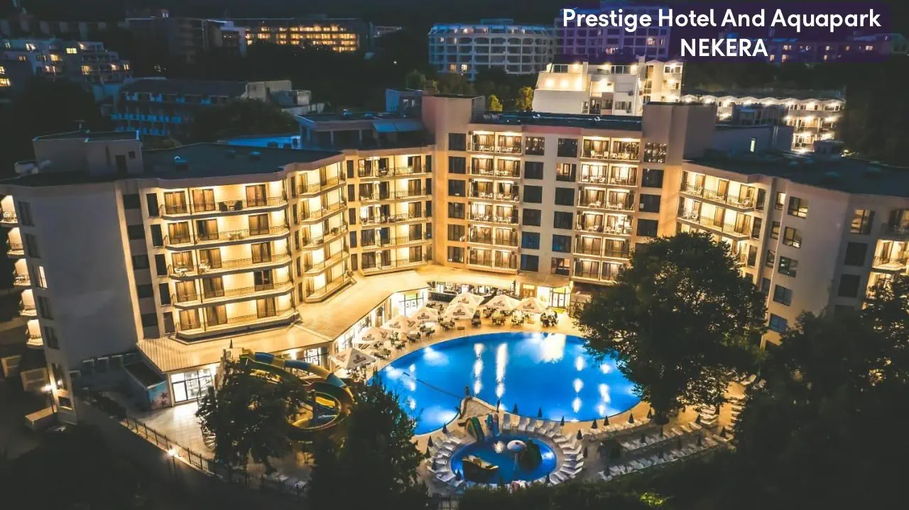 Prestige Hotel & Aquapark to czterogwiazdkowy obiekt położony w sercu popularnego kurortu Złote Piaski na bułgarskiej Riwerze. Hotel łączy wygodę, atrakcyjność dla rodzin oraz osób szukających relaksu, oferując liczne udogodnienia i przestronne pokoje. Dzięki bliskiej odległości do plaży oraz centrum kurortu, jest idealnym wyborem na wakacje z dziećmi oraz dla osób ceniących aktywny wypoczynek.