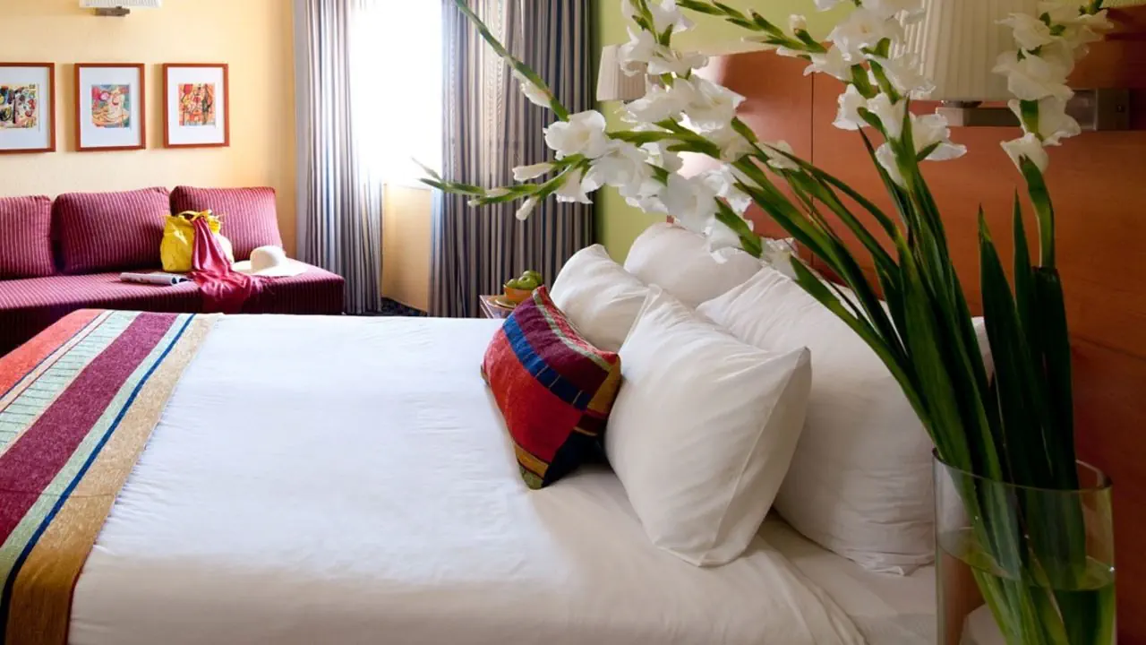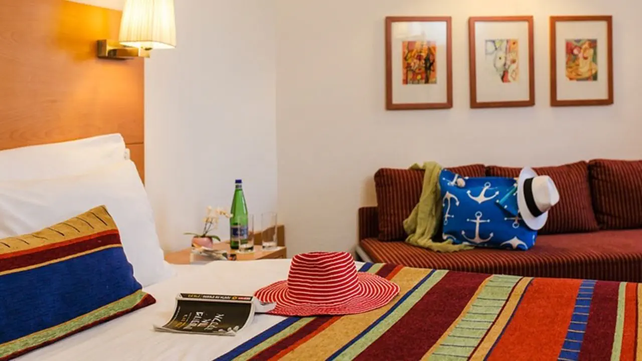 Wszystkie pokoje wyłożone są wykładziną i oferują widok na morze. Pokój dwuosobowy Standard ok. 21 m² z łóżkiem podwójnym lub dwoma łózkami pojedynczymi, z częścią wypoczynkową z rozkładaną sofą, klimatyzacją, szafą, biurkiem, sejfem, lodówką, czajnikiem elektrycznym, TV z kanałami kablowymi, łazienką z toaletą, waną lub prysznicem, suszarką do włosów i zestawem kosmetyków.