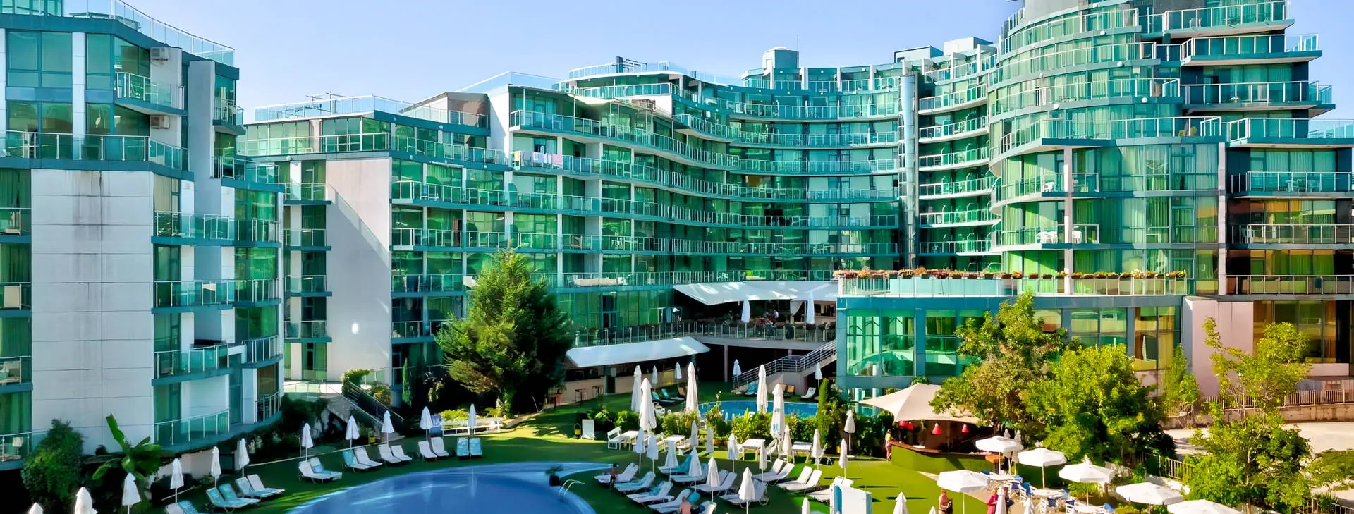 Położenie: Hotel oddany na nowo do użytku w 2017 r., po częściowej renowacji oraz zmianie właścicieli i zarządu. Położony w północnej części Primorska, ok. 800 m od ścisłego centrum i ok. 1 km od dworca autobusowego. Primorsko to dawna wioska rybacka, która w ostatnich latach dynamicznie się rozwinęła. Poza malowniczymi plażami i ciepłym morzem oferuje również wiele innych atrakcji – dla miłośników zwiedzania niezwykłe obiekty historyczne, a dla amatorów aktywnego wypoczynku aquapark Aqua Planet (ok. 800 m od hotelu, bilet ok. 35 BGN/os, dzieci do 90 cm bezpłatnie) i szeroki wachlarz sportów wodnych. Primorsko pełne jest też barów, tawern i dyskotek. Odległość do lotniska w Burgas to ok. 60 km (transfer ok. 1 godzina), do portu lotniczego w Warnie to ok. 170 km (transfer ok. 3-4 godziny, w zależności od ilości hoteli w których zatrzymuje się autokar). Plaża: Hotel znajduje się ok 200 m od długiej, piaszczystej plaży z łagodnym zejściem do morza - oddzielony lokalną drogą i ok. 60m pasem porośniętych wydm. Na wydzielonej hotelowej części plaży parasole i leżaki dostępne w cenie (ograniczona ilość). Do dyspozycji gości: Całodobowa recepcja, 3 windy, przestronne lobby, przechowalnia bagażu, bufetowa restauracja główna serwująca dania kuchni regionalnej i międzynarodowej, 2 bary, dyskoteka, taras słoneczny, basen zewnętrzny (gł. 1,5m) z wydzielonym brodzikiem dla dzieci (gł. 0,6m), basen półkryty (z niezadaszonym fragmentem, gł. 1,5m) z leżakami i parasolami przy basenie, sklep, parking (płatny ok. 5Eur/dzień). Za opłatą: ręczniki plażowe (ilość ograniczona), pralnia. Wyżywienie: All Inclusive: śniadanie (08:00-10:00), obiad (12:00-14:00), kolacja (18:30-21:00) serwowane w restauracji głównej w formie zróżnicowanego bufetu. W ciągu dnia (10:00-12:00 i 15:00-17:00) zimne i gorące przekąski serwowane w wyznaczonych barach- słodkie bułeczki, pizza, oraz lody (10:30-17:00) dostępne w barze przy basenie. Napoje bezalkoholowe oraz lokalne napoje alkoholowe serwowane w barze przy basenie w godz. 10:00-23:00. Program sportowy i animacyjny: 6 razy w tygodniu program sportowo-animacyjny oraz wieczorne przedstawienia, piłka wodna, siłownia. Dla najmłodszych brodzik, mini klub (4-12 lat), mini disco. Za opłatą: bilard orazsporty wodne w ofercie firm zewnętrznych przy plaży. Dla dzieci zajęcia w FIGLO KLUBIE od połowy czerwca do połowy września - animacje, gry i zabawy z polskimi animatorami! Internet: WiFi w lobby bezpłatnie. Kategoria lokalna: ***** Naszym zdaniem: Komfortowo zaprojektowany hotel położony blisko pięknej, piaszczystej plaży oraz wygodna formuła all inclusive sprawiają, że jest to doskonałe miejsce na bezstroski rodzinny wypoczynek.