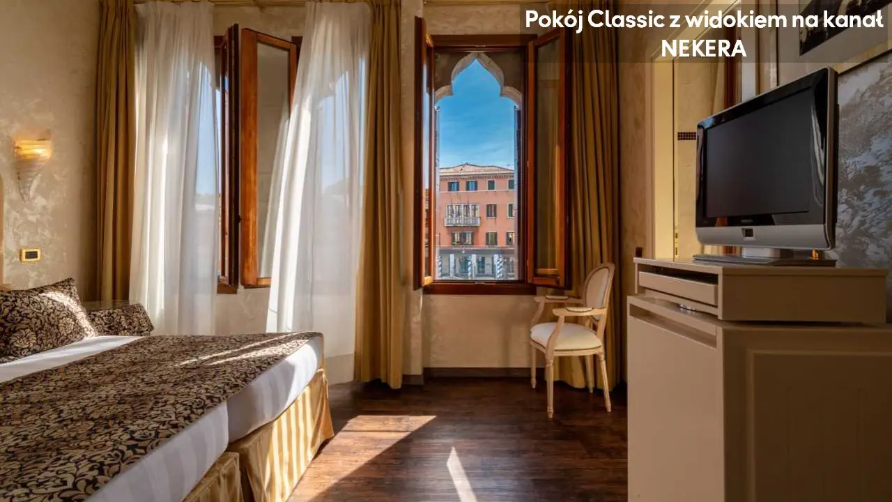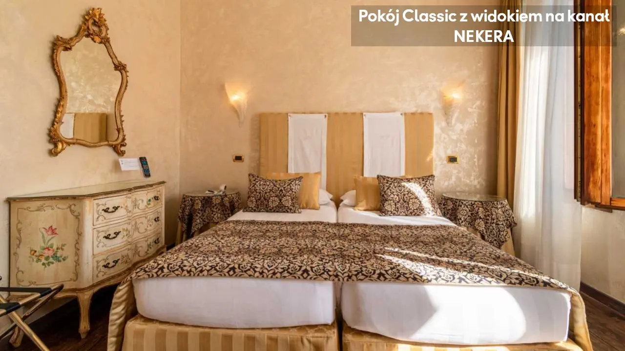 Pokój Classic, ok. 18 m², dla max 3 osób, łóżko podwójne lub 2 łóżka pojedyncze, sofa jako dostawka, klimatyzacja, TV-Sat, minibar (płatny), sejf, telefon, prywatna łazienka (prysznic/wanna, toaleta, suszarka do włosów). Pokój Superior z widokiem na kanał wyposażony jak pokoje Classic, dodatkowo widok na kanał.