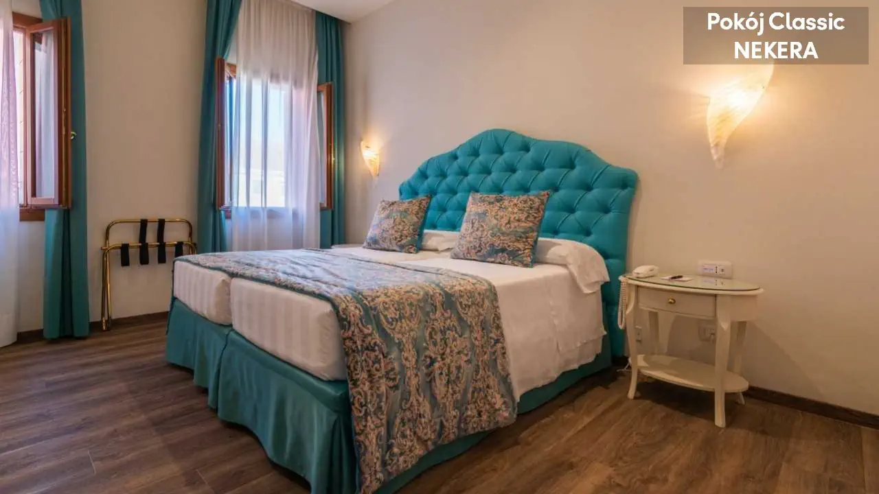 Noclegi, wyżywienie zgodnie z rezerwacją, telefoniczną opiekę rezydenta. Dodatkowo w przypadku imprez pakietowych z przelotem, oprócz ww. świadczeń w cenie zawarty jest: przelot, opłata lotniskowa, opłata za wylot z lotniska lokalnego, transfer lotnisko-hotel-lotnisko (chyba, że dana oferta stanowi inaczej), ubezpieczenie dla imprez turystycznych, bezpośrednia opieka polskojęzycznego rezydenta - w sezonie letnim (wakacyjnym): Kreta, Rodos, Turcja (Riwiera), Majorka, Bułgaria, całorocznie: Malta, na pozostałych kierunkach opieka telefoniczna lub przez czat w serwisie moja.nekera.pl. W przypadku imprez turystycznych opartych o przeloty przewóz bagażu może być nieuwzględniony w cenie. Cena uzależniona jest m.in. od przewoźnika oraz terminu wyjazdu, należy ją zweryfikować podczas zakupu. Linie lotnicze, w których bagaż jest w cenie (20 kg bagaż główny oraz bagaż podręczny) - przeloty czarterowe: Enter Air, LOT (dla wylotów na Rodos), Sky Express, Holiday Europe, European Air Charter, Ryan Sun (dla wylotów na Rodos) oraz przeloty rejsowe: Sun Express, Corendon, Pegasus Airlines, Emirates, Fly Dubai, Quatar Airlines, Air France, Austrian Airlines.Przykładowe linie lotnicze, gdzie bagaż jest dodatkowo płatny to: FR (Ryanair), W6 (WizzAir), Easy Jet. Podane godziny serwowania posiłków oraz funkcjonowania poszczególnych elementów infrastruktury hotelowej mogą ulec nieznacznym zmianom, ze względu na sezonowość, siły wyższe i inne okoliczności.