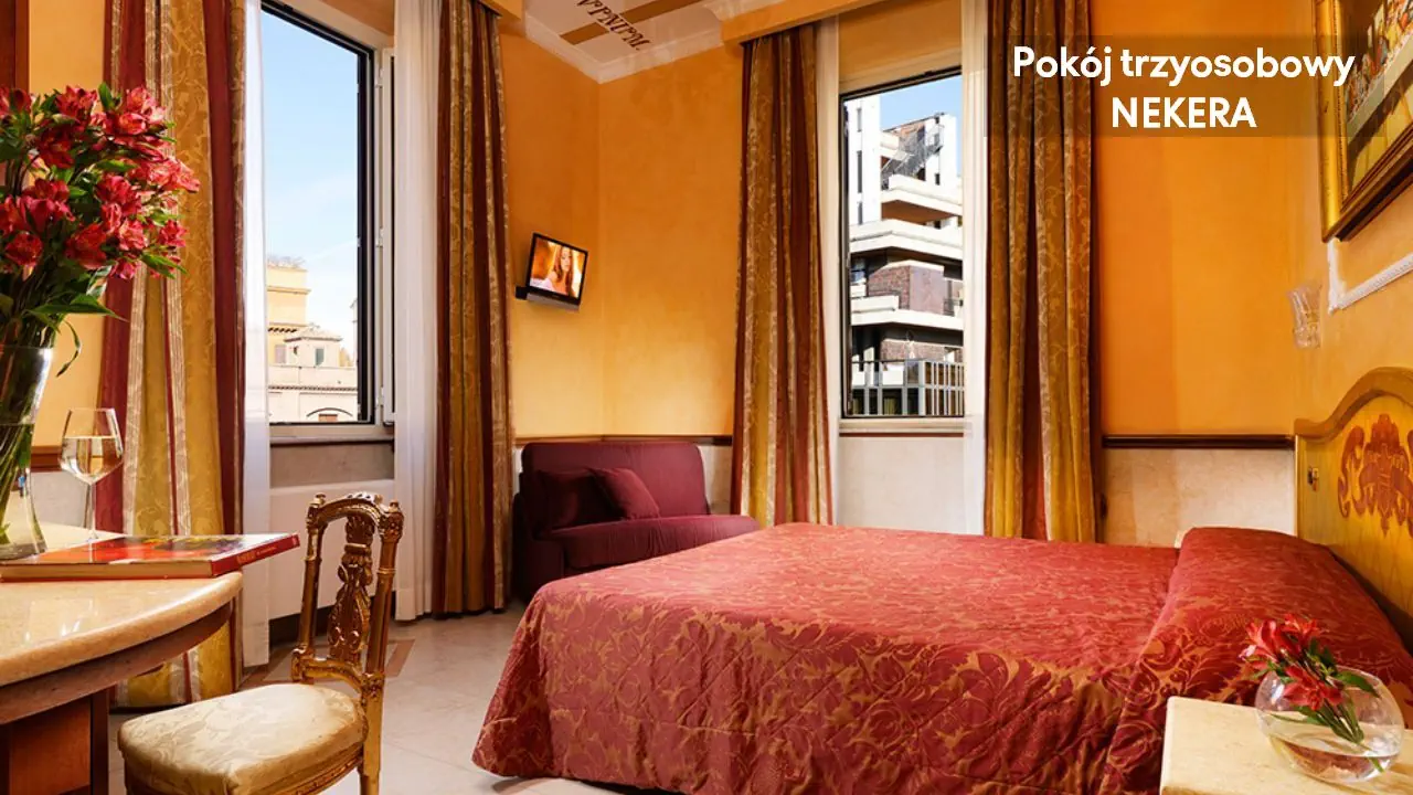 Hotel zlokalizowany jest w Rzymie, ok. 400 m od pięknych ogrodów Borghese. W pobliżu znajdują się liczne sklepy, bary, restauracje i kawiarnie. Przystanek autobusowy – ok. 150 m. Schody Hiszpańskie – ok. 1,4 km; Fontanna di Trevi – ok. 1,6 km; Koloseum – ok. 2,7 km. Port lotniczy Rzym-Fiumicino oddalony jest o ok. 29 km.