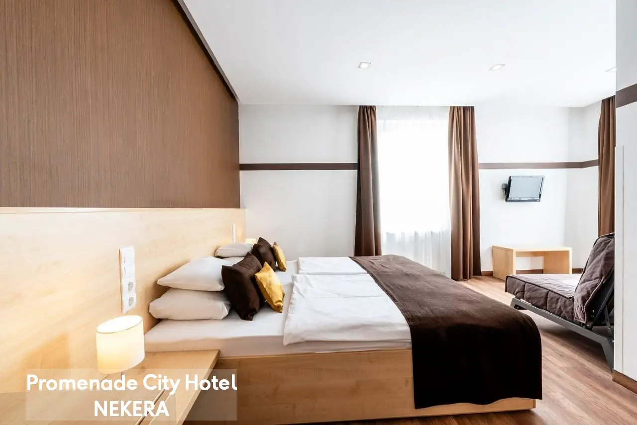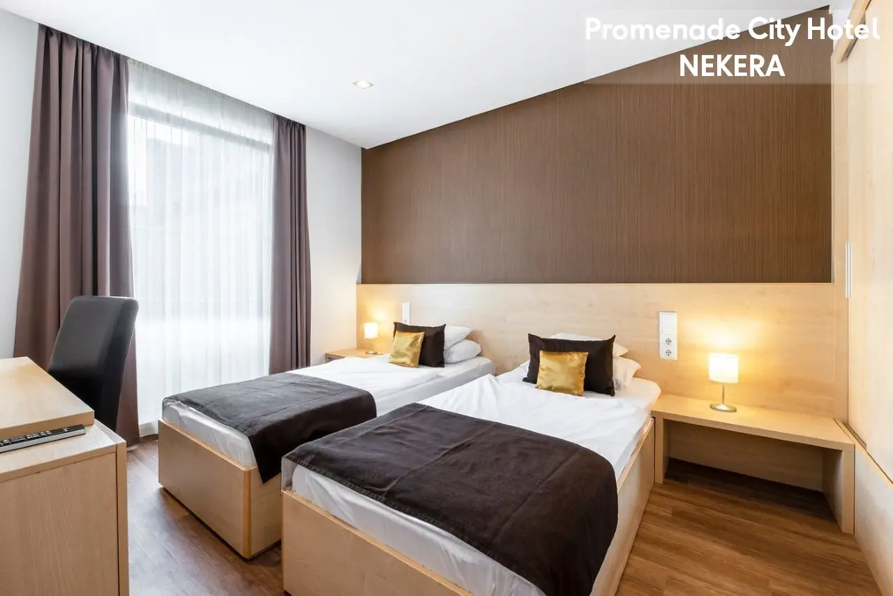 komfortowe, gustownie urządzone pokoje dwuosobowe: ok. 20 m2, z łóżkiem małżeńskim lub dwoma pojedynczymi, klimatyzacja / ogrzewanie, TV-Sat., telefon, sejf, lodówka (minibar za opłatą), zestaw do parzenia kawy / herbaty, butelka wody na powitanie, łazienka z wanną, WC, suszarką. Pokoje trzyosobowe: ok. 22 m2, dodatkowo dostawka.