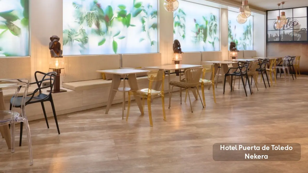 Hotel Puerta de Toledo to trzygwiazdkowy obiekt położony w centralnej części Madrytu, tuż przy jednej z najbardziej rozpoznawalnych historycznych bram miasta - Puerta de Toledo. Hotel mieści się w nowoczesnym budynku, usytuowanym w sercu dzielnicy o mieszanym charakterze - turystycznym, komercyjnym i mieszkaniowym. Do dyspozycji gości dostępna jest całodobowa recepcja, informacja turystyczna, obsługa pokoju (room service), oraz przechowalnia bagażu.
