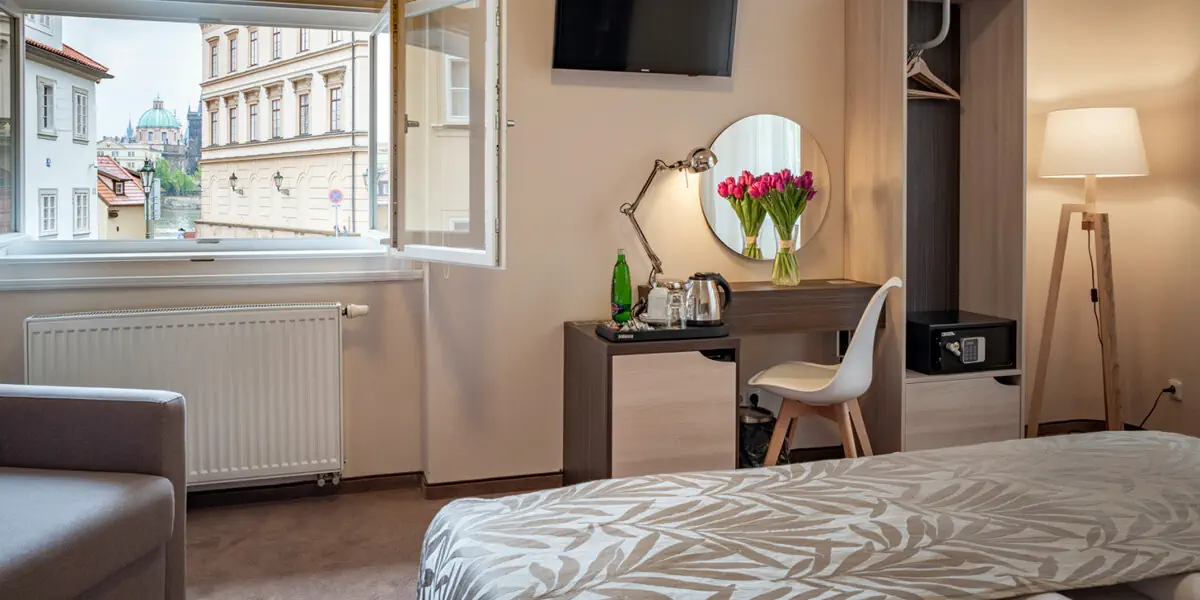 Pytloun Kampa Garden Hotel Prague **** jest klimatycznie położony w historycznym centrum Pragi, na jednej z najpiękniejszych miejskich wysp świata – na Kampie. To tutaj możesz przejść pod najsłynniejszym Mostem Karola. Dzięki atrakcyjnej lokalizacji hotel znajduje się bardzo blisko najbardziej rozpoznawanych zabytków Pragi, takich jak Most Karola, Zamek Praski, Mur Lennona czy Pałac Lichtensteinów. Hotel Pytloun Kampa Garden powstał nad tak zwanym Diabelskim Kanałem (Čertovka), tuż obok zabytkowego koła młyńskiego z gremlinem. To świetne miejsce, by wygodnie zwiedzać czeską stolicę i komfortowo odpoczywać po aktywnym dniu. Udogodnienia: Bar / restauracja, Pobyt z pupilem, Winda, Dla niepełnosprawnych, Parking strzeżony / monitorowany, Płatność kartą