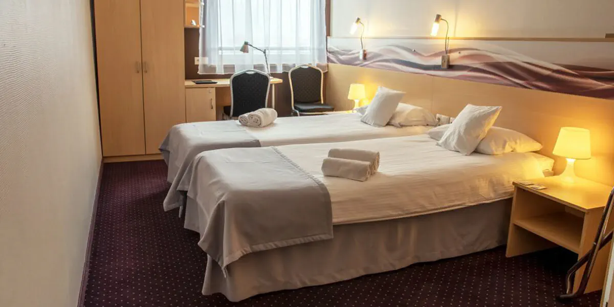 Komfortowy pokój przeznaczony dla 2 osób. W wyposażeniu: TV, WiFi, zestaw do parzenia kawy i herbaty oraz prywatna łazienka z kabiną prysznicową i suszarką do włosów