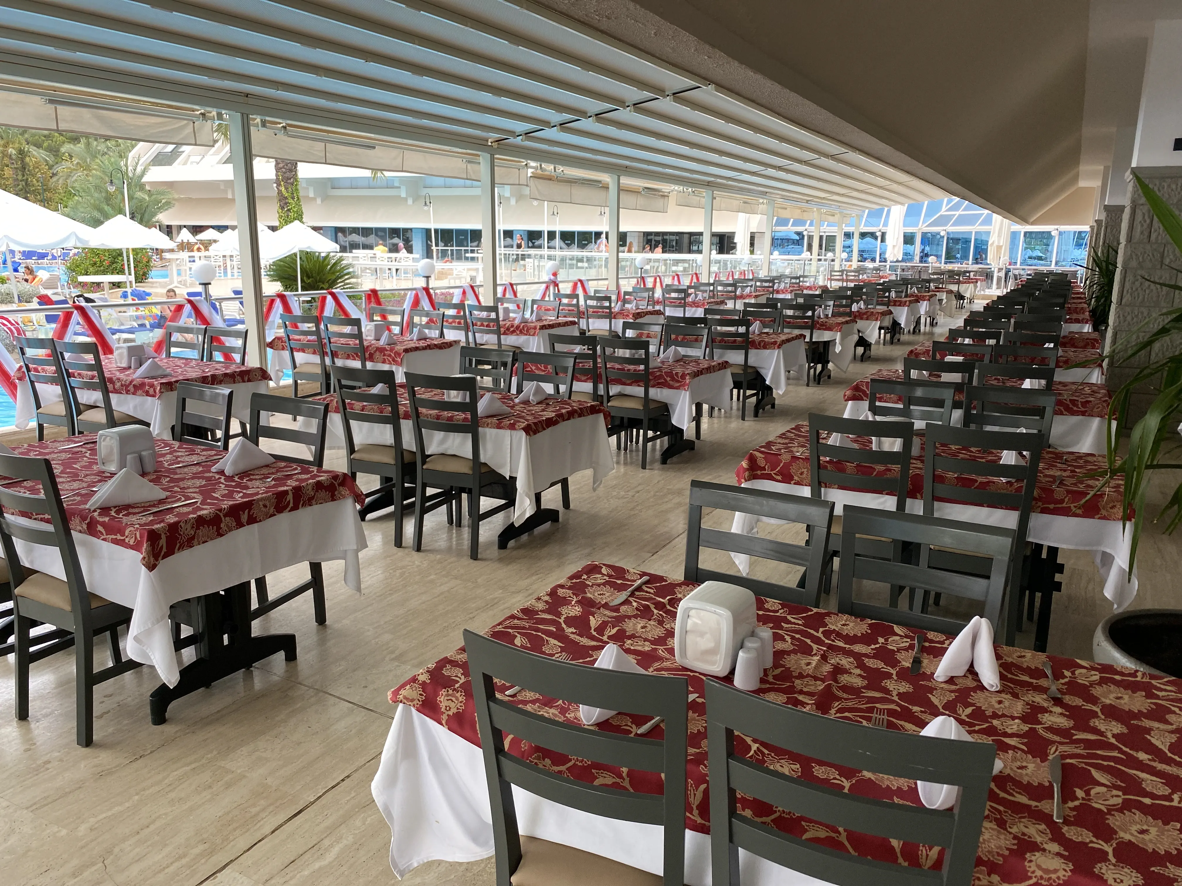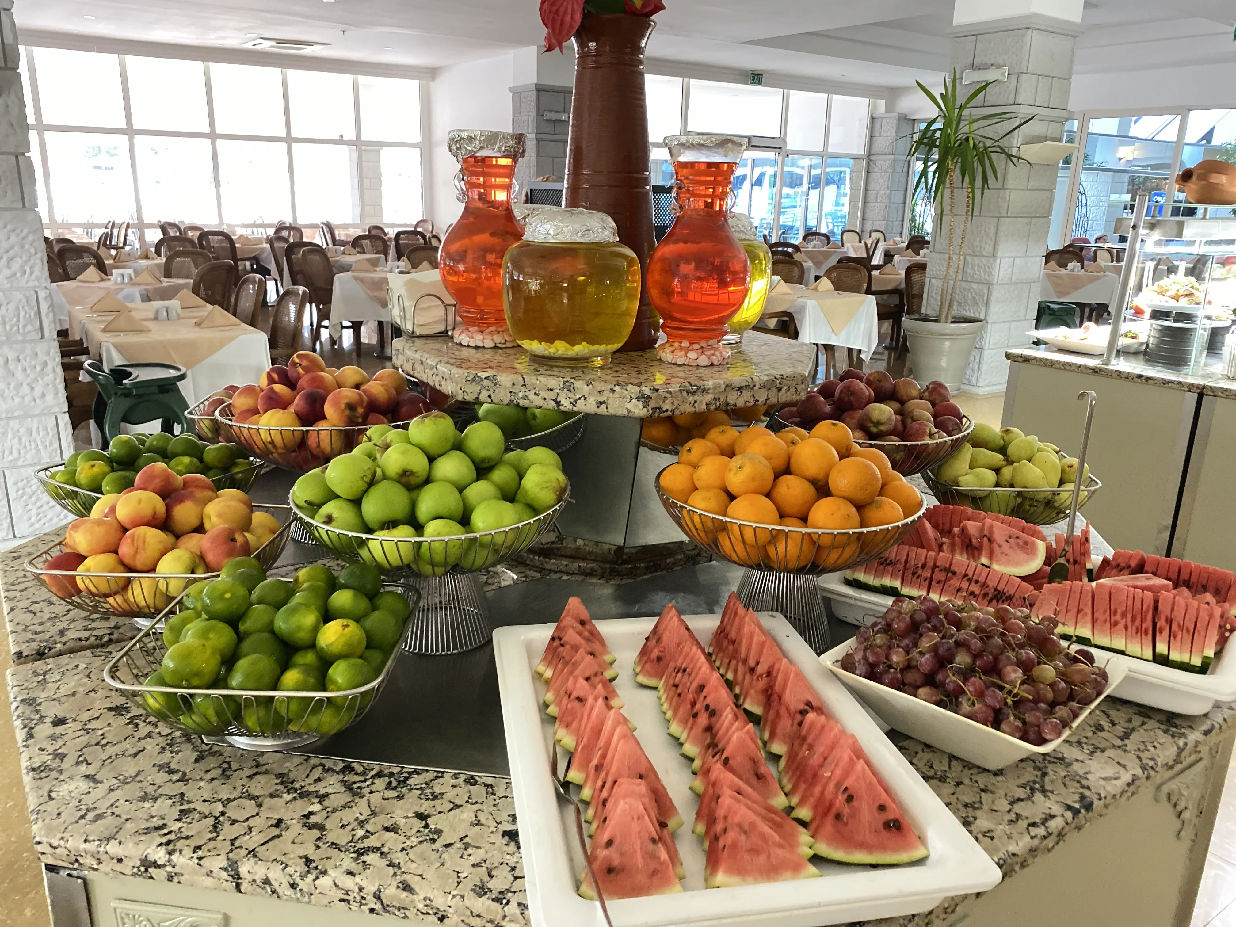 Śniadanie (07:00 - 10:00) - MAIN RESTAURANT, stół szwedzki, Późne śniadanie (10:00 - 10:30) - MAIN RESTAURANT, stół szwedzki, Obiad (12:30 - 14:00) - MAIN RESTAURANT, stół szwedzki, Przekąski (12:30 - 16:00) - SNACK RESTAURANT, stół szwedzki, Podwieczorek (10:30 - 18:00) - PASTANE, stół szwedzki, Kolacja (19:00 - 21:00) - MAIN RESTAURANT, stół szwedzki, Późna kolacja (23:30 - 01:00) - MAIN RESTAURANT, stół szwedzki, POOL BAR (10:00 - 23:59), Napoje: alkohole lokalne (10:00 - 23:59), SNACK BAR (12:00 - 16:00), Napoje: alkohole lokalne (12:00 - 16:00), LOBBY BAR (24h), Napoje: alkohole lokalne, wybrane alkohole importowane, napoje bezalkoholowe (24h), DISCO BAR (23:00 - 01:30), Napoje: alkohole lokalne (23:00 - 01:30), BEER HOUSE (14:00 - 22:00), Napoje: alkohole lokalne (14:00 - 22:00), napoje bezalkoholowe, alkohole lokalne, wybrane alkohole importowane ¹⁾, lody, pakiety dla nowożeńców ¹⁾, pakiety urodzinowe (na życzenie) ¹⁾, cukiernia ¹⁾, room service ¹⁾, Minibar w pokoju ¹⁾ ¹⁾ - dodatkowo płatne