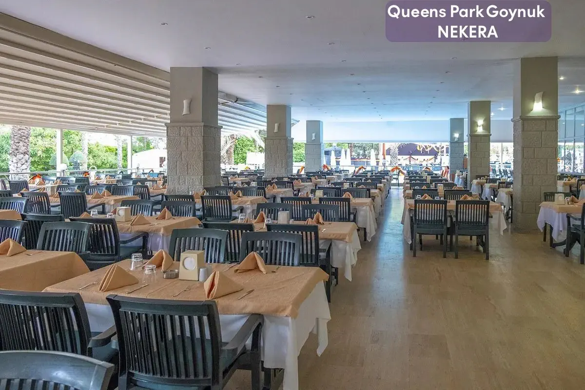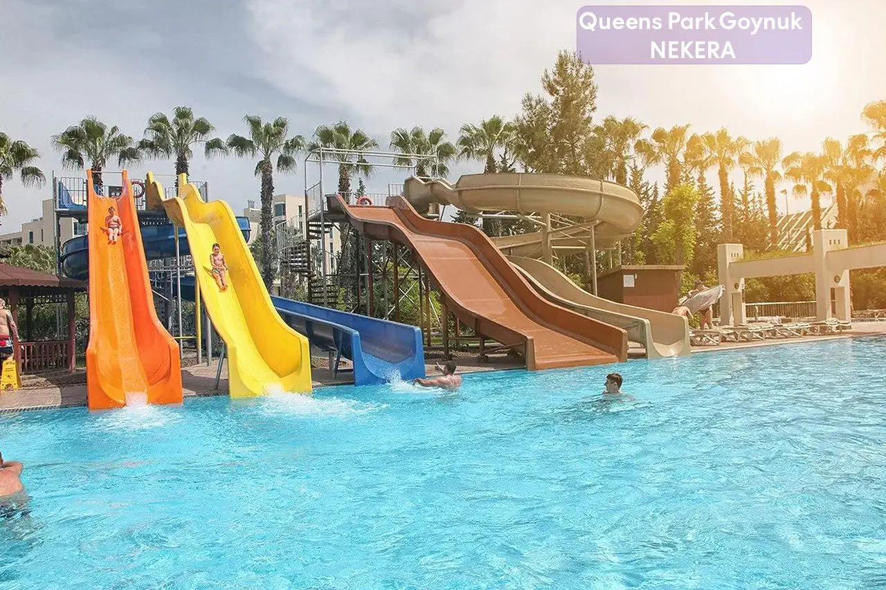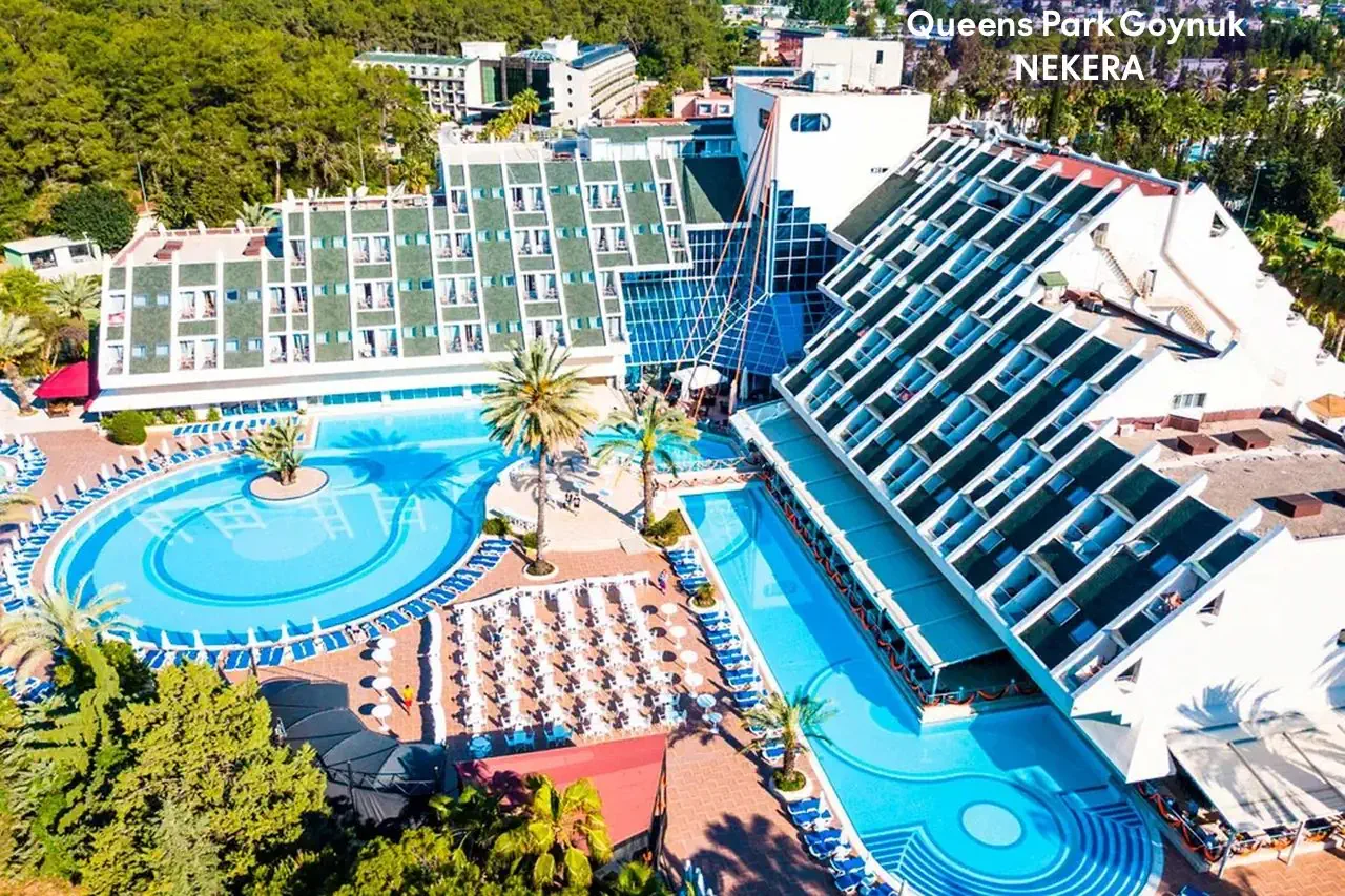 Queen’s Park Goynuk (Queen’s Park Resort Göynük) to luksusowy, pięciogwiazdkowy hotel  All Inclusive położony w turystycznym regionie  (Kemer) nad Morzem Śródziemnym. Obiekt łączy komfortowe zakwaterowanie z prywatną plażą, aquaparkiem, rozbudowaną infrastrukturą rekreacyjną oraz bogatą ofertą gastronomiczną – to świetna propozycja zarówno dla rodzin z dziećmi, par, jak i gości aktywnie wypoczywających.