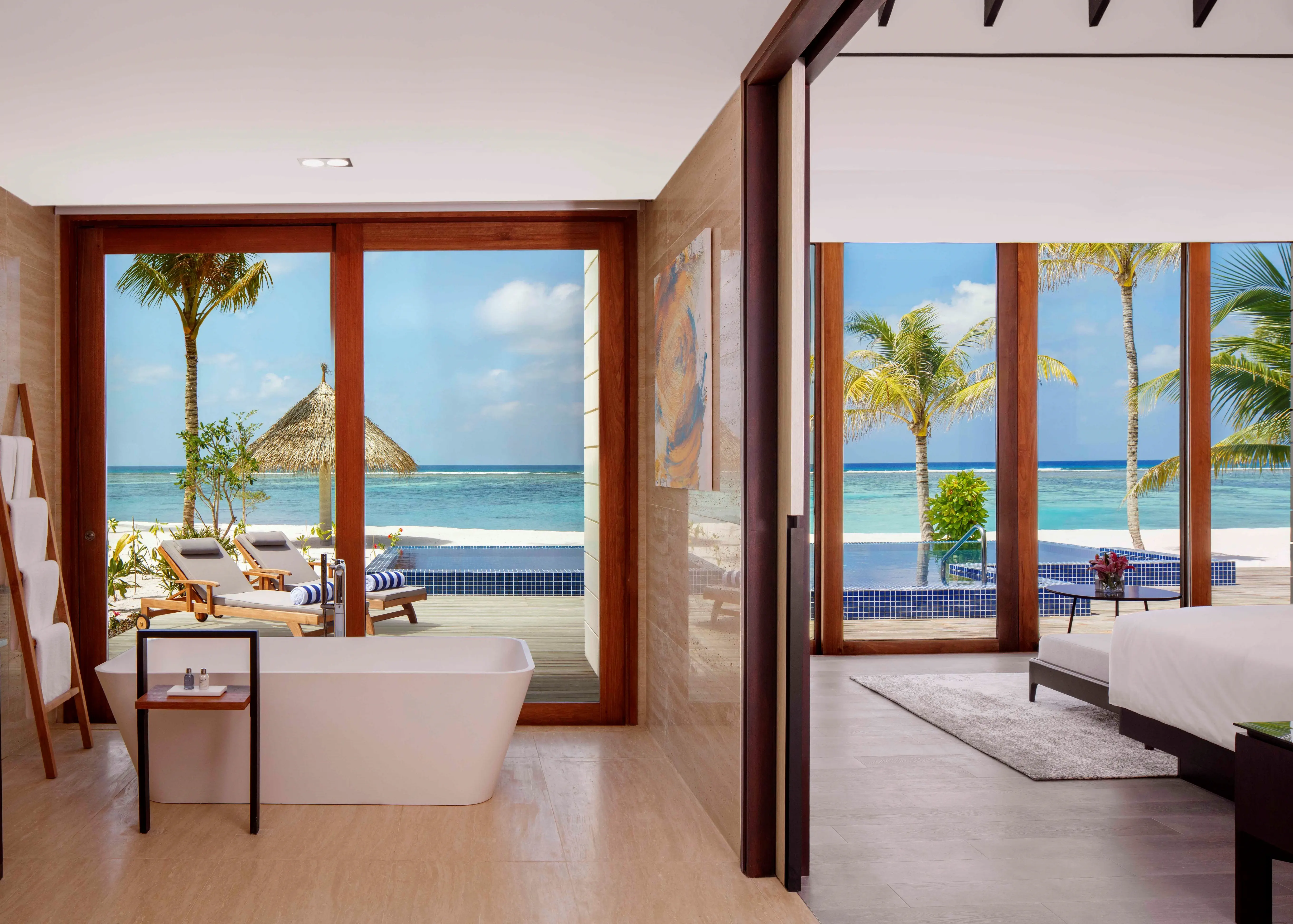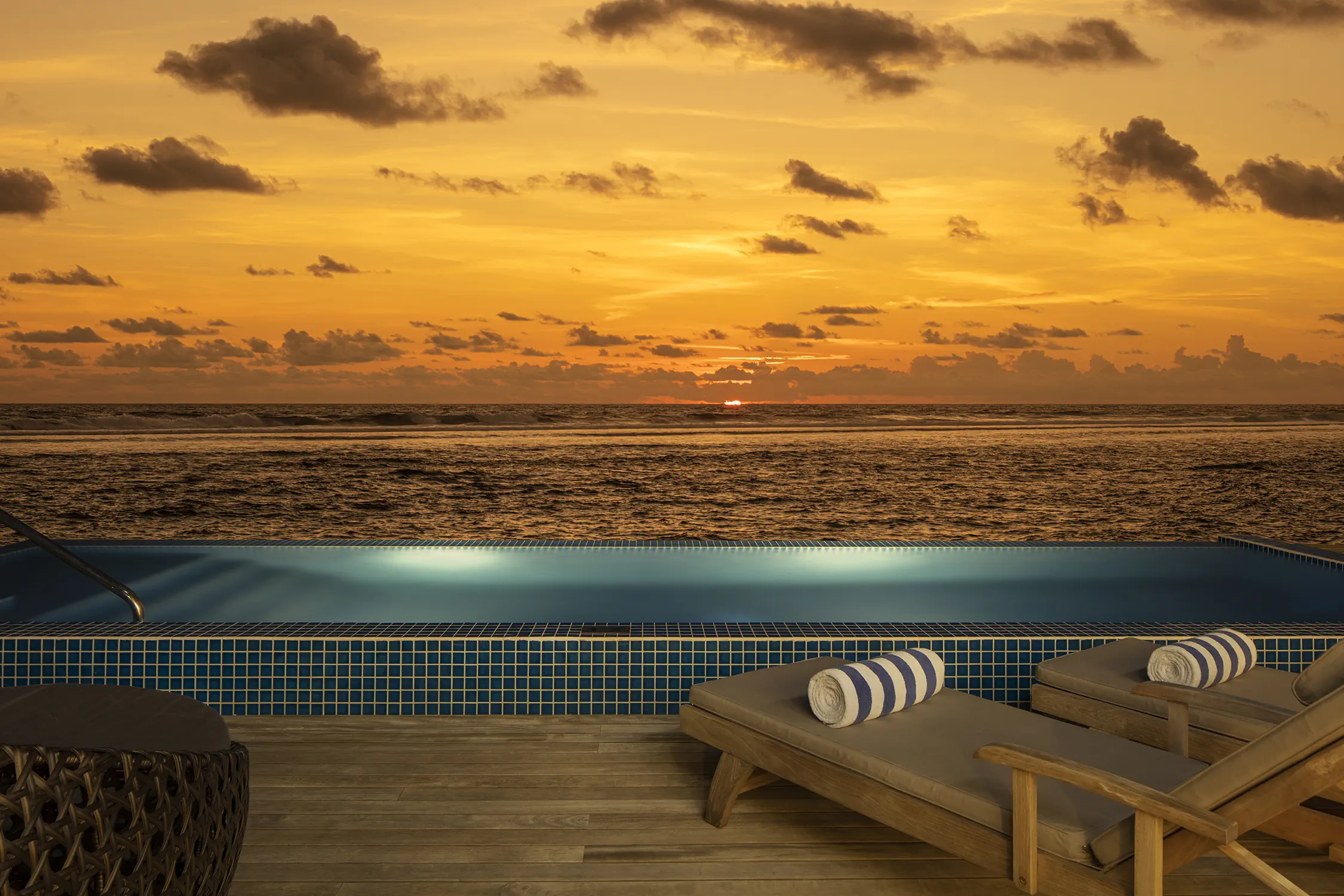 Dla max. 7 osób, Przestrzeń zewnętrzna: Taras, Kanały telewizji: Polski, Angielski, Telefon w pokoju, wanna, prysznic, Powierzchnia pokoju: ok. 350 m2, Dostawka: łóżko standardowe, Rodzaj podłogi: drewno, Sprzątanie codziennie, Salon, część jadalniana, miejsce do pracy, 2 sypialnie, Drzwi łączące między pokojami, Maksymalna liczba osób dorosłych: 6, Maksymalna liczba dzieci: 1, Kwiaty i owoce, Prysznic na świeżym powietrzu, Frontalny widok na plażę,Widok na morze, Bezpośredni dostęp do plaży, Wyjście do wspólnego basenu, Prywatny basen, Liczba łazienek: 3, Liczba toalet: 3, Zestaw do parzenia kawy i herbaty, Klimatyzacja: Klimatyzacja indywidualna