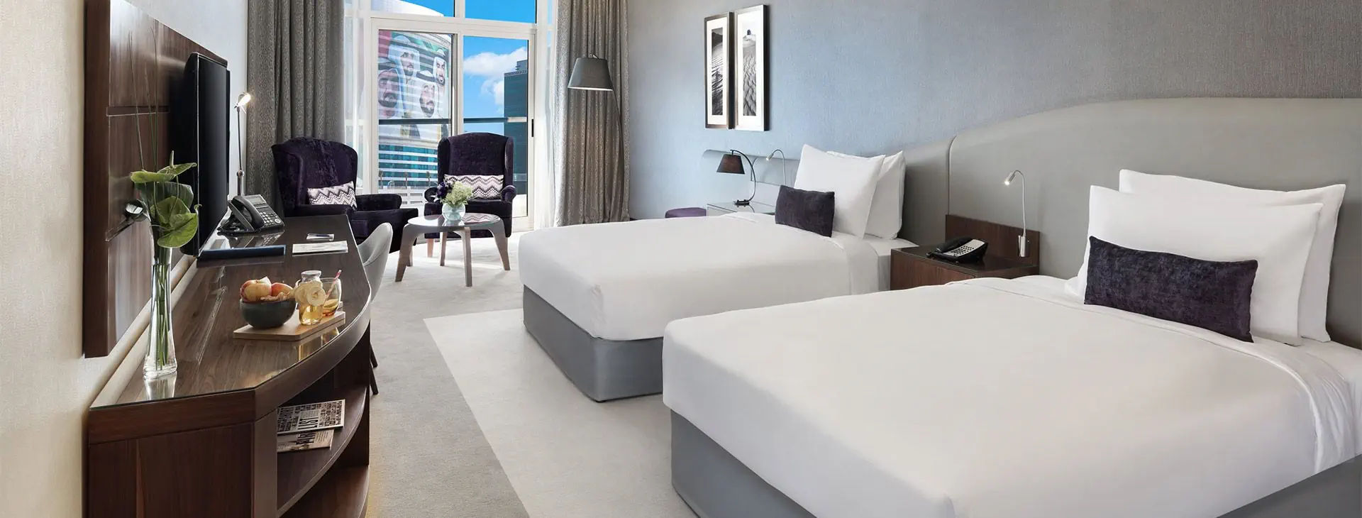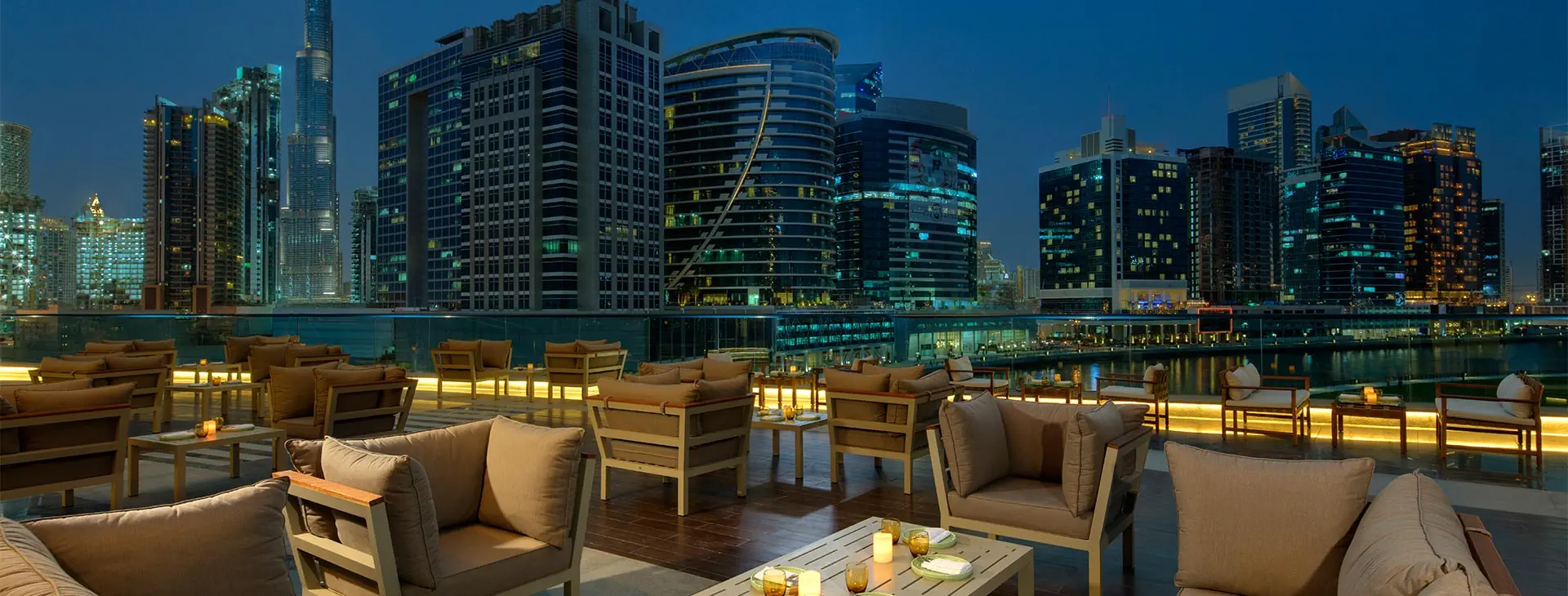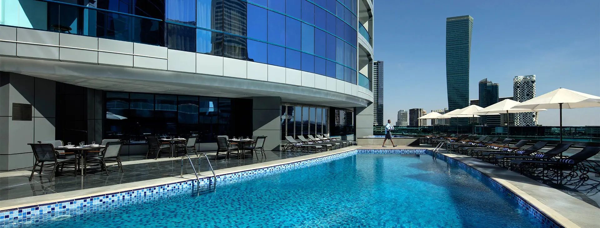 Położenie: Niedawno otwarty, ekskluzywny miejski hotel zlokalizowany w centrum jednej z najsłynniejszych dzielnic Dubaju - Business Bay z widokiem na przedłużenie dubajskiego Creeku (zatoki). W pobliżu znajdują się liczne restauracje, sklepy, kawiarnie oraz największe atrakcje miasta jak Burj Khalifa czy centrum handlowe Dubai Mall. Do lotniska Dubai International Airport jest ok. 15 km a Dubai Al Maktoum ok. 1 godzina jazdy. Plaża: Hotel oferuje bezpłatny transfer na plażę publiczną Kite Beach. Leżaki i parasole na plaży za dodatkową opłatą (ok. 30 USD/ dzień/leżak i parasol). Do dyspozycji gości: Całodobowa recepcja z przestronnym lobby, punkt wymiany walut (w recepcji), centrum biznesowe i konferencyjne, parking, salon fryzjerski, pralnia (za dodatkową opłatą), restauracja główna Larder, restauracja Republic (kuchnia libańska), bary: przy basenie, szkocki Makar oraz Fire Grill House and Coctail Bar, kawiarnia Abraj w lobby i klub nocny Gotha Club. Ponadto basen z tarasem słonecznym (leżaki, parasole i ręczniki przy basenie dostępne bezpłatnie), brodzik dla dzieci, siłownia, klub dla dzieci oraz centrum SPA oferujące szeroki wybór zabiegów pielegnacyjnych (dodatkowo płatne). Wyżywienie: Śniadania w formie bufetu serwowane w restauracji głównej Larder. Za dopłatą obiady lub kolacje (HB, napoje dodatkowo płatne) lub obaidy i kolacje (FB, napoje dodatkowo płatne) serwowane w formie bufetu w restauracji głónej Larder. Program sportowy i animacyjny: Na terenie hotelu basen, taras słoneczny z widokiem na okolicę, m. in. Burj Khalifę i Dubai Canal, brodzik dla dzieci, w pełni wyposażona siłownia i jacuzzi. Za dodatkową opłatą centrum SPA. Dla najmłodszych dostępny mini klub. Internet: Bezprzewodowy Internet Wi-Fi dostępny na terenie hotelu bezpłatnie. Kategoria lokalna: ***** Strona www: