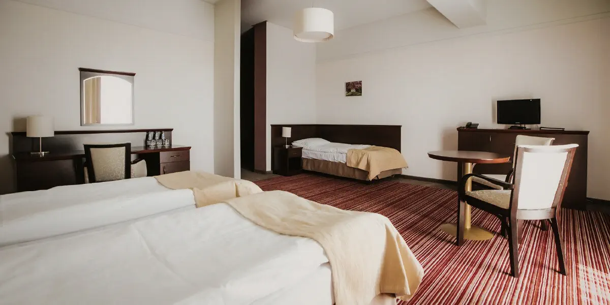 - Codzienne śniadanie - Codzienna obiadokolacja serwowana - Dostęp do basenu i jacuzzi - Dostęp do sauny parowej - Dostęp do salki fitness - Dostęp do sali zabaw i placu zabaw dla dzieci - Dostęp do bilardu - Bezpłatny parking - Internet Wi-Fi - Podatek VAT