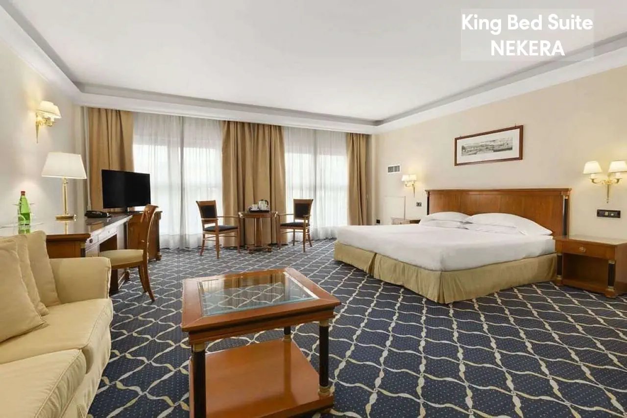 Pokój Standard: ok. 16 m2, mogący zakwaterować do dwóch osób, TV, Wi-Fi, sejf, klimatyzacja, prywatna łazienka (wanna lub prysznic, toaleta, umywalka). Pokój Superior: ok. 20 m2, mogący zakwaterować do dwóch osób, jedno łóżko podwójne i miejsce do odpoczynku z sofą lub fotelami, czajnik; poza tym wyposażony jak pokój Standard. Suite: ok. 30 m2, mogący zakwaterować do trzech osób, jedno łóżko podwójne i część dzienna z sofą dla trzeciej osoby, czajnik, minibar, szlafrok, kapcie; poza tym wyposażony jak pokój Standard.