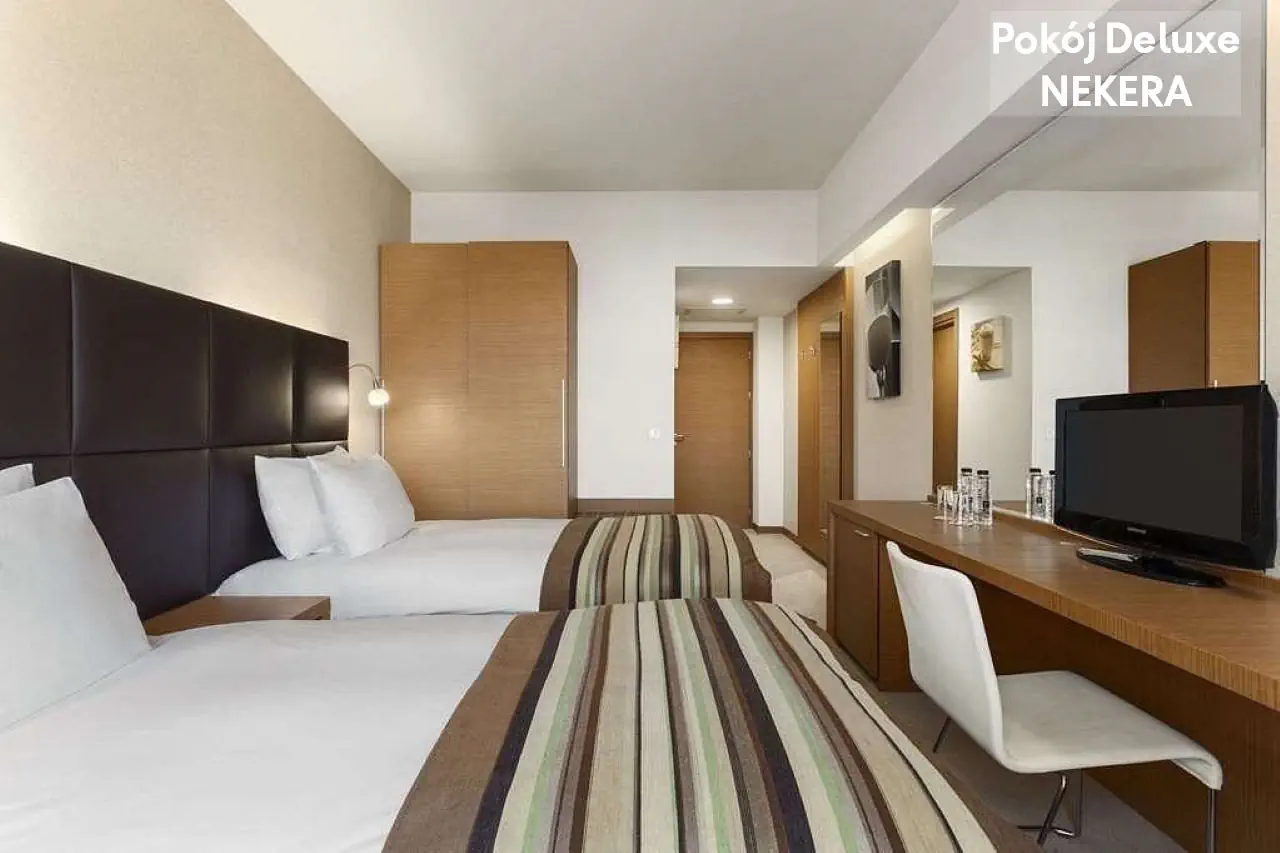 Noclegi, wyżywienie zgodnie z rezerwacją, telefoniczną opiekę rezydenta. Dodatkowo w przypadku imprez pakietowych z przelotem, oprócz ww. świadczeń w cenie zawarty jest: przelot, opłata lotniskowa, opłata za wylot z lotniska lokalnego, transfer lotnisko-hotel-lotnisko (chyba, że dana oferta stanowi inaczej), ubezpieczenie dla imprez turystycznych, bezpośrednia opieka polskojęzycznego rezydenta - w sezonie letnim (wakacyjnym): Kreta, Rodos, Turcja (Riwiera), Majorka, Bułgaria, całorocznie: Malta, na pozostałych kierunkach opieka telefoniczna lub przez czat w serwisie moja.nekera.pl. W przypadku imprez turystycznych opartych o przeloty przewóz bagażu może być nieuwzględniony w cenie. Cena uzależniona jest m.in. od przewoźnika oraz terminu wyjazdu, należy ją zweryfikować podczas zakupu. Linie lotnicze, w których bagaż jest w cenie (20 kg bagaż główny oraz bagaż podręczny) - przeloty czarterowe: Enter Air, LOT (dla wylotów na Rodos), Sky Express, Holiday Europe, European Air Charter, Ryan Sun (dla wylotów na Rodos) oraz przeloty rejsowe: Sun Express, Corendon, Pegasus Airlines, Emirates, Fly Dubai, Quatar Airlines, Air France, Austrian Airlines.Przykładowe linie lotnicze, gdzie bagaż jest dodatkowo płatny to: FR (Ryanair), W6 (WizzAir), Easy Jet. Podane godziny serwowania posiłków oraz funkcjonowania poszczególnych elementów infrastruktury hotelowej mogą ulec nieznacznym zmianom, ze względu na sezonowość, siły wyższe i inne okoliczności.