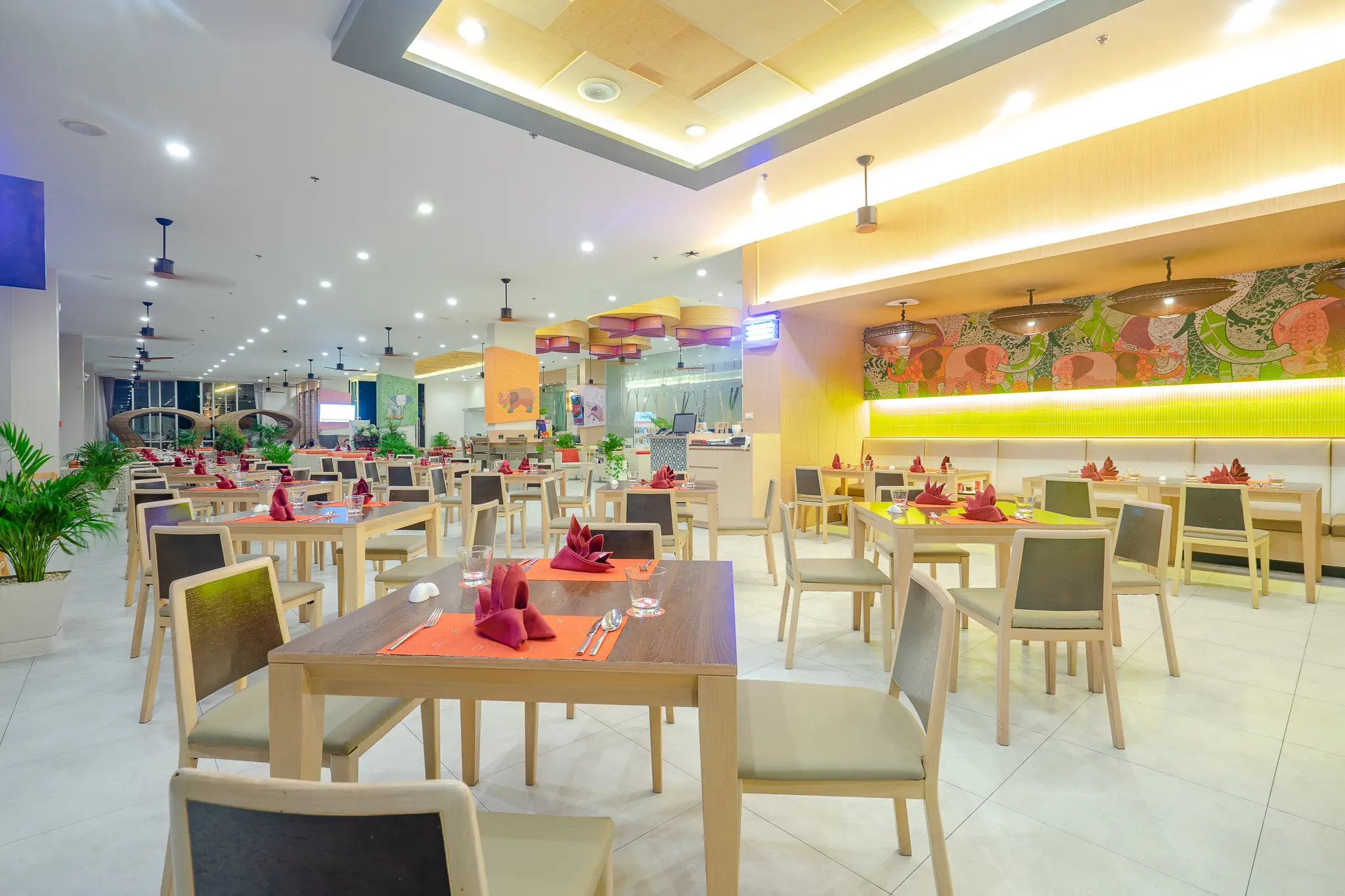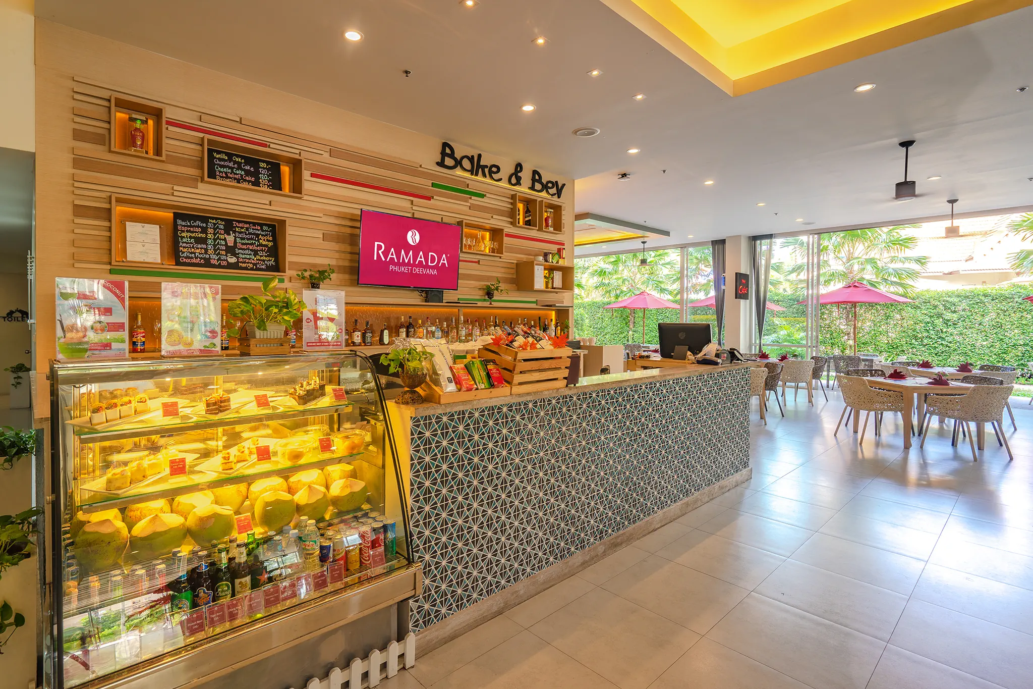 Śniadanie (06:30 - 10:30) - The Cafe, stół szwedzki, Obiad (11:00 - 23:00) - The Cafe, a la carte ¹⁾, Przekąski (10:00 - 23:00) - Bake and Bev, a la carte ¹⁾, Kolacja (16:00 - 23:00) - The Cafe, a la carte ¹⁾, The Cafe (06:30 - 23:00) (06:30 - 23:00), bez limitu, Kuchnia: międzynarodowa, Wymagana rezerwacja: Tak ¹⁾, napoje bezalkoholowe ¹⁾, alkohole lokalne ¹⁾, wybrane alkohole importowane ¹⁾, lody ¹⁾, pakiety dla nowożeńców ¹⁾, pakiety urodzinowe (na życzenie) ¹⁾, cukiernia ¹⁾, room service ¹⁾ ¹⁾ - dodatkowo płatne