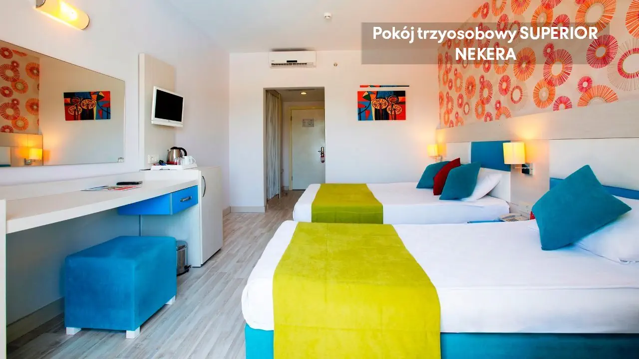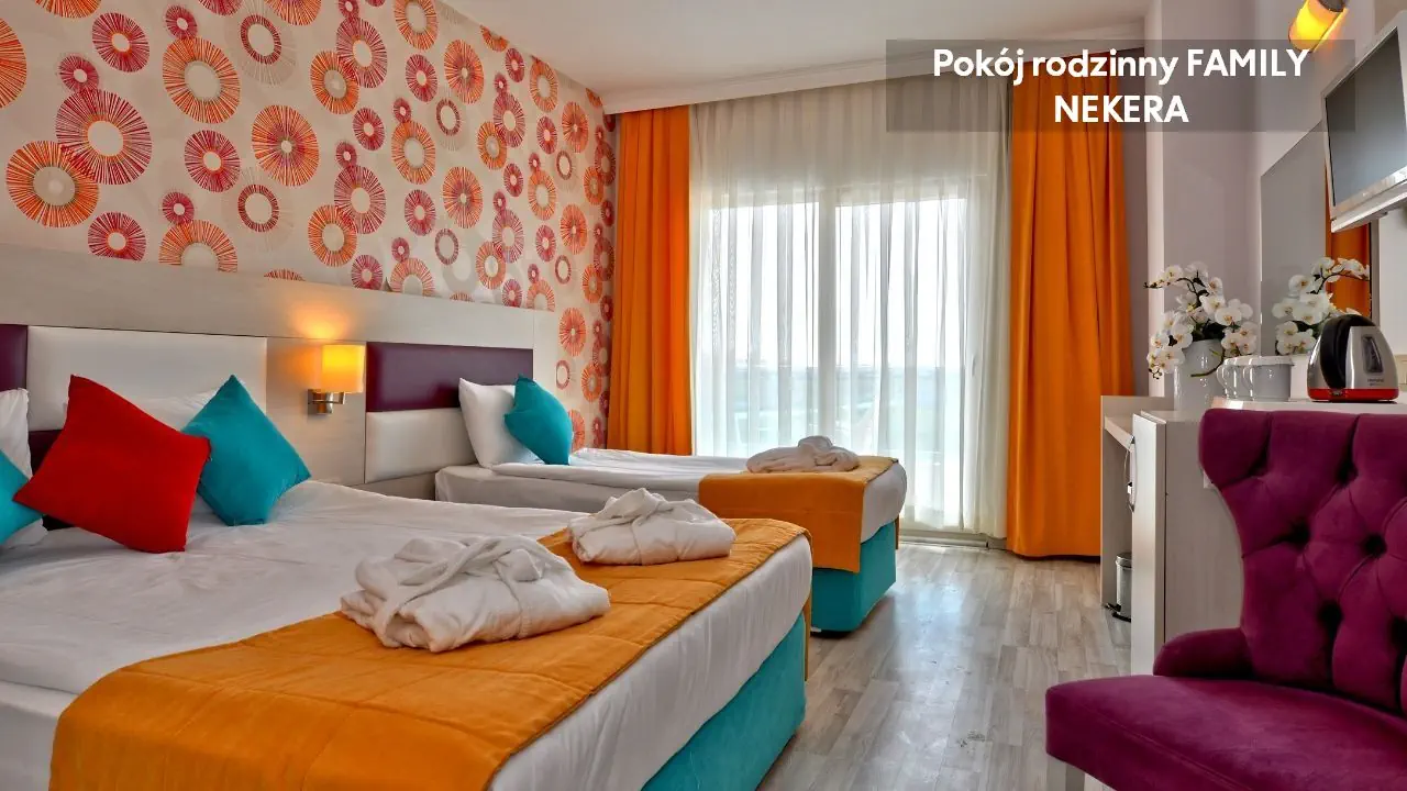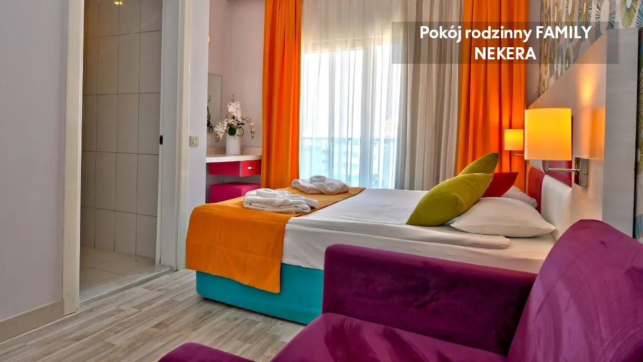 Noclegi, wyżywienie zgodnie z rezerwacją. Dodatkowo w przypadku imprez pakietowych z przelotem, oprócz ww. świadczeń w cenie zawarty jest: ubezpieczenie podstawowe (8000 EUR KL i 2000 EUR NNW) przelot, opłata lotniskowa, opłata za wylot z lotniska lokalnego, transfer lotnisko-hotel-lotnisko (chyba, że dana oferta stanowi inaczej). W sezonie letnim tj. w okresie od 01.06. do 15.09. br. oferujemy opiekę polskojęzycznego rezydenta. W pozostałym okresie opiekę lokalnego przedstawiciela, a także kontakt telefoniczny lub poprzez czat (na portalu moja.nekera.pl) z polskojęzycznym rezydentem. Wycieczki fakultatywne dostępne u rezydenta. Podane godziny serwowania posiłków oraz funkcjonowania poszczególnych elementów infrastruktury hotelowej mogą ulec nieznacznym zmianom, ze względu na sezonowość, siły wyższe i inne okoliczności.