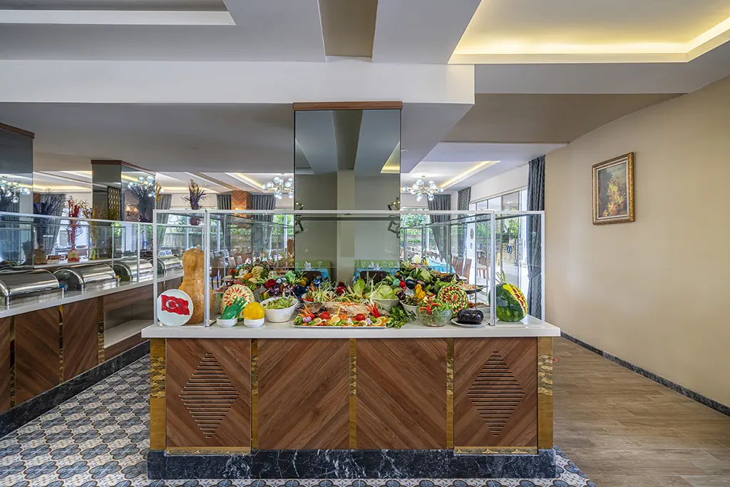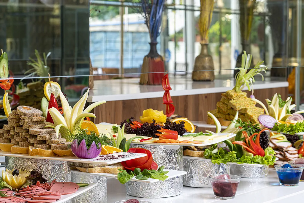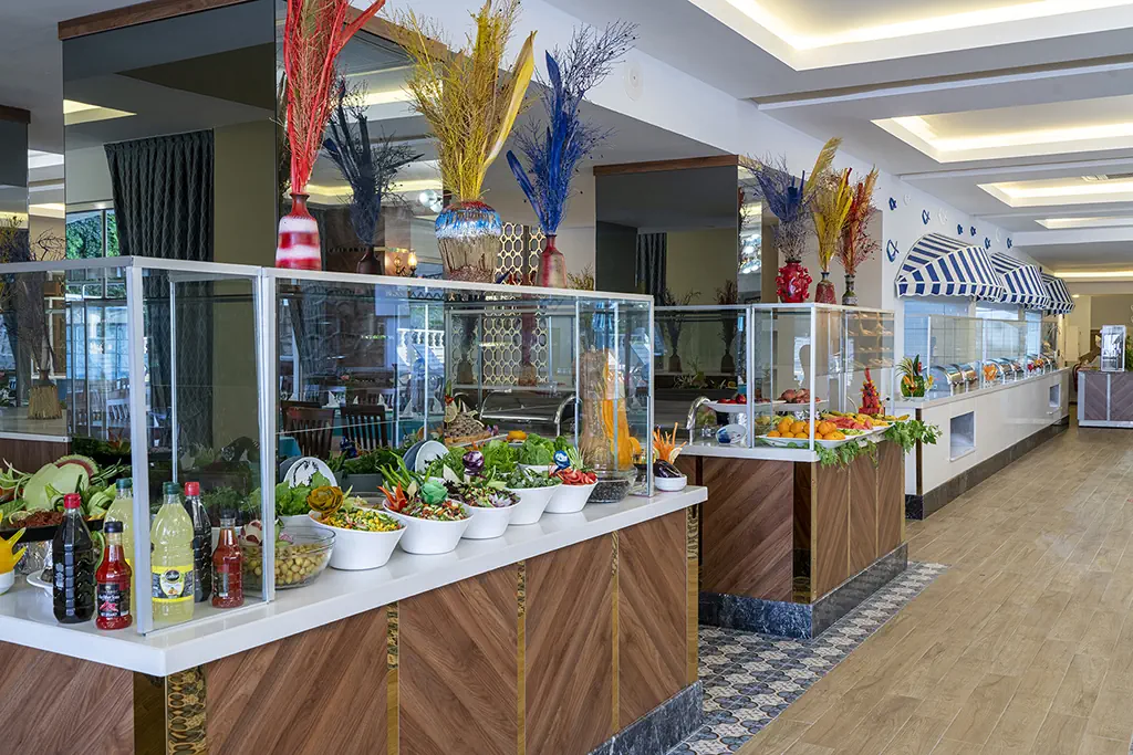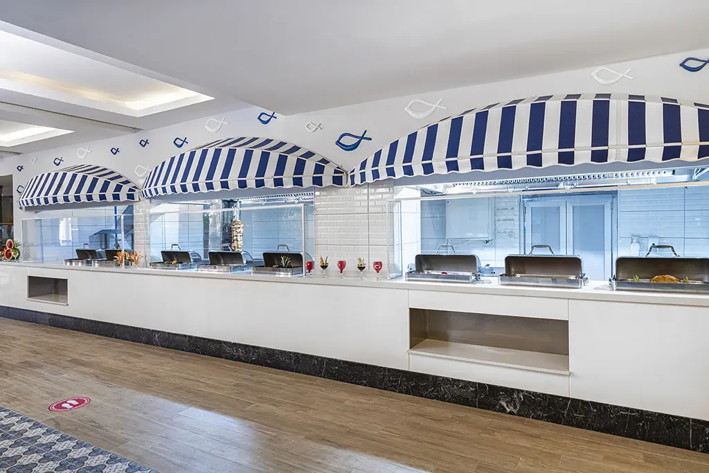 Śniadanie (07:30 - 09:30) - MAIN RESTAURANT, stół szwedzki, Późne śniadanie (09:30 - 10:00) - MAIN RESTAURANT, stół szwedzki, Obiad (12:30 - 14:00) - MAIN RESTAURANT, stół szwedzki, Przekąski (11:30 - 16:00) - MAIN RESTAURANT, stół szwedzki, Podwieczorek (16:00 - 17:00) - MAIN RESTAURANT, określone menu, Kolacja (18:30 - 20:30) - MAIN RESTAURANT, stół szwedzki, Późna kolacja (23:00 - 00:00) - MAIN RESTAURANT, stół szwedzki, RAMIRA BAR (10:00 - 00:00), Napoje: alkohole lokalne, napoje bezalkoholowe (10:00 - 00:00), napoje bezalkoholowe, alkohole lokalne, wybrane alkohole importowane ¹⁾, lody, cukiernia ¹⁾ - dodatkowo płatne