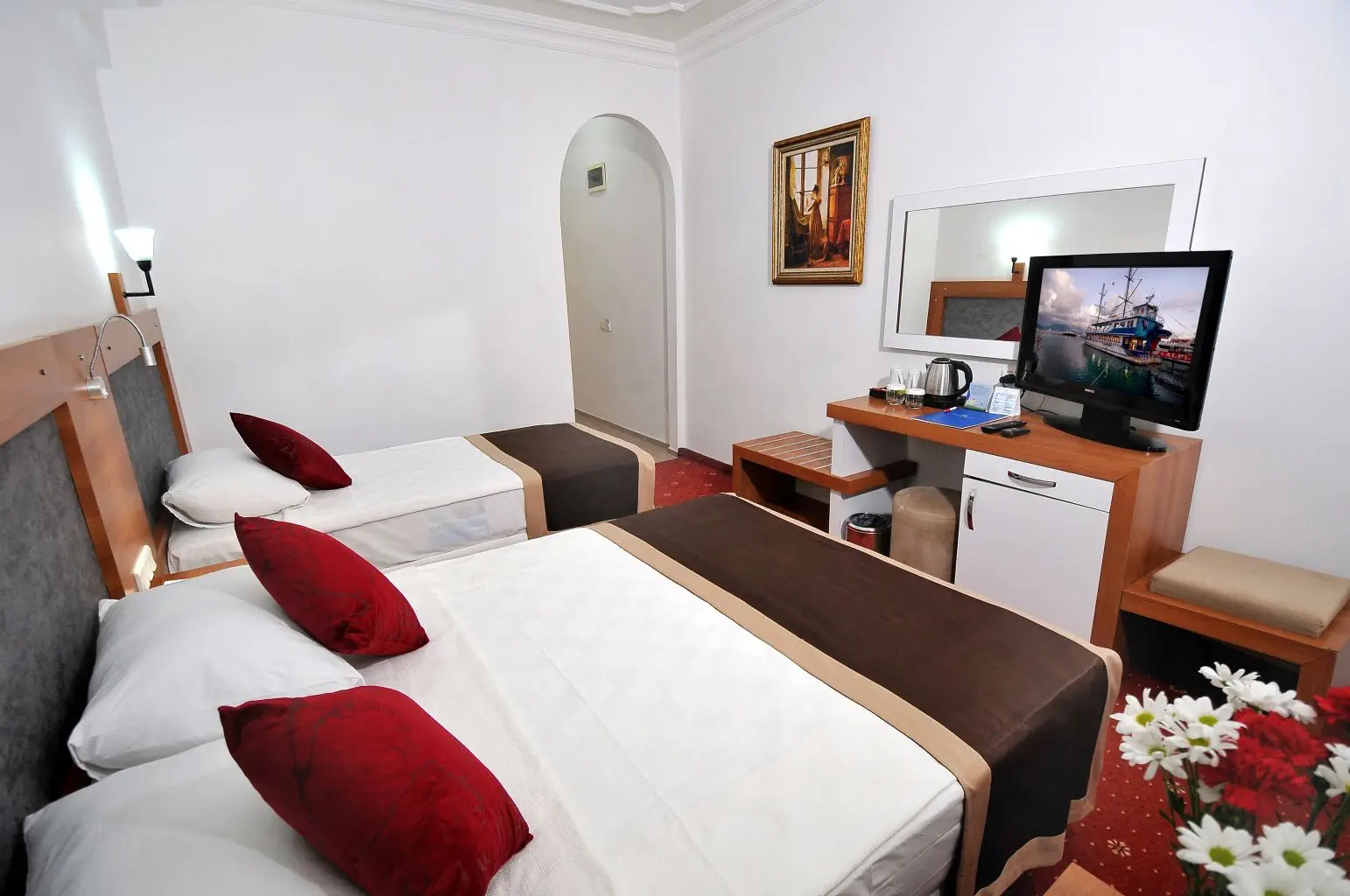 Dla max. 3 osób, Przestrzeń zewnętrzna: Balkon, Kanały telewizji: Angielski, Telefon w pokoju, wanna lub prysznic , Powierzchnia pokoju: ok. 20 - 22 m2, Rodzaj podłogi: wykładzina, Sprzątanie codziennie, 1 sypialnia, Maksymalna liczba osób dorosłych: 3, Maksymalna liczba dzieci: 2, Częściowy widok na morze, Liczba łazienek: 1, Liczba toalet: 1, Zestaw do parzenia kawy i herbaty, Klimatyzacja: Klimatyzacja indywidualna