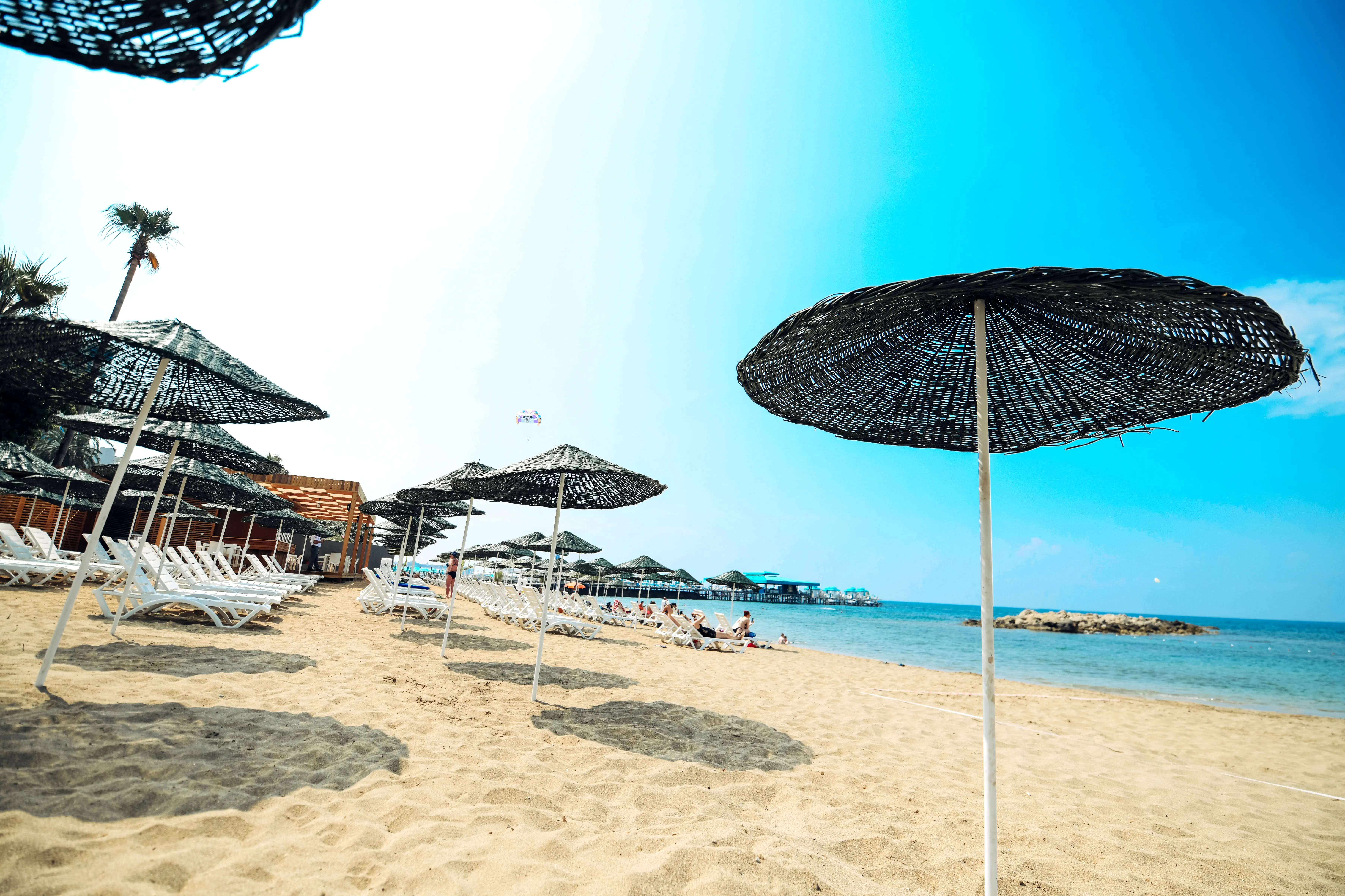 Wydzielona część plaży publicznej, Piaszczysto-żwirowa, Piaszczysto-żwirowe zejście do morza, odleglość do plaży: 1 m, długość plaży: 100 m, Parasole - bezpłatnie, Leżaki - bezpłatnie, Ręczniki - bezpłatnie, Prysznic