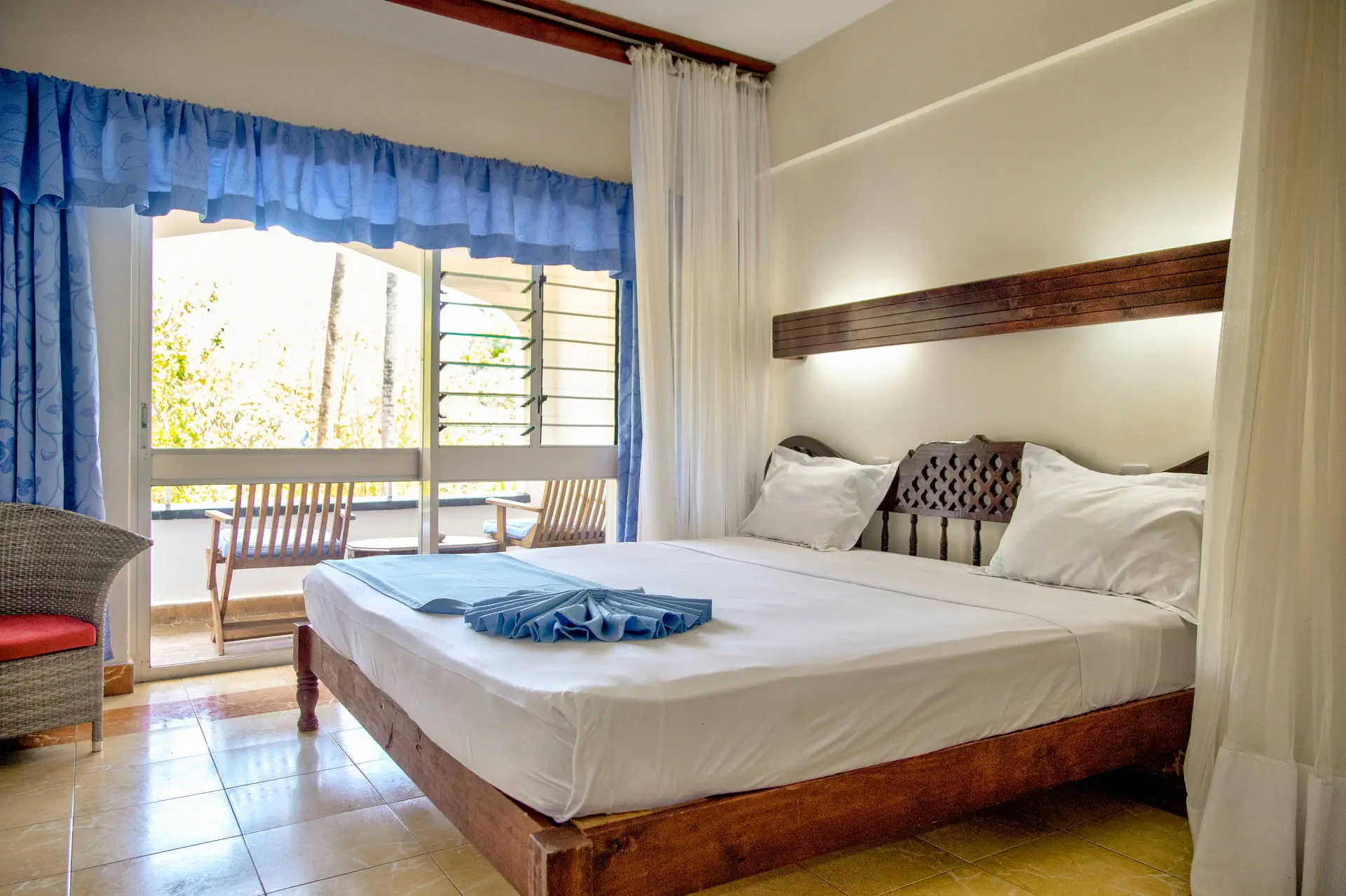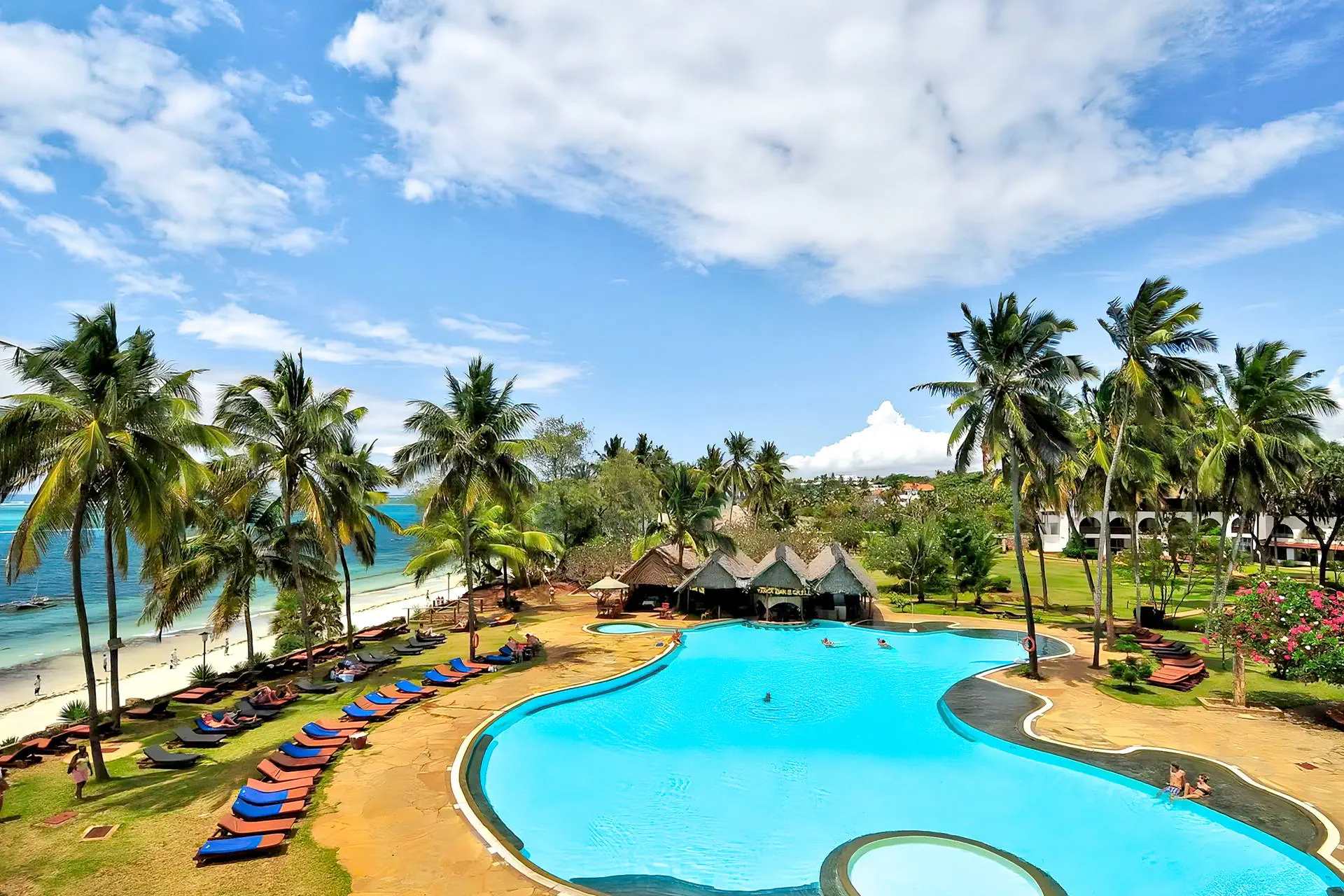 Położenie Hotel położony jest na północnym wybrzeżu Mombasy, w tropikalnym ogrodzie na dość rozległym terenie. Do lotniska w Mombasie jest około 20 km. Do centrum Mombasy jest około 10 km. Niedaleko hotelu znajduje się farma krokodyli i Park Hallera (ZOO zwierząt afrykańskich). W pobliżu hotelu znajduje się niewielkie centrum handlowe Nakumat, bary, restauracje i dyskoteki. Plaża Plaża bezpośrednio przy hotelu. Znana plaża Nyali z drobnym, białym piaskiem. Leżaki, parasole i ręczniki kąpielowe bezpłatne na terenie ogrodu hotelowego przy plaży. Do dyspozycji gości Recepcja 24h. 3 baseny: basen główny (przy którym odbywają się animacje) z wydzielonym brodzikiem dla dzieci, mały basen oraz basen położony w spokojnej części hotelu, wszystkie z leżakami, parasolami i ręcznikami kąpielowymi dostępnymi bezpłatnie.2 restauracje: główna z widokiem na ocean, a’la carte Tanga Bar and Grill serwująca głównie owoce morza (za dodatkową opłatą, bezpłatna dla Gości w formule All Inclusive). 3 bary: główny przy basenie (10:00-24:00), grill bar, bar Half Moon przy plaży.Pozostałe informacje: kantor, sala konferencyjna, sala telewizyjna, sklepik z pamiątkami, salon urody. Wyżywienie Rodzaje wyżywienia i posiłki: Śniadania: 07:00 - 09:30, w formie bufetu. Obiadokolacje: 19:30 - 21:30, w formie bufetu. Napoje do obiadokolacji płatne dodatkowo. Możliwość dopłaty do All Inclusive: lokalne napoje alkoholowe i bezalkoholowe w godzinach 11:00 - 23:00. Pozostałe napoje płatne dodatkowo. Program sportowy i animacyjny Dla każdego: dzienne i wieczorne animacje m.in.: muzyka na żywo, pokazy akrobatyczne i taneczne, aerobik, aqua aerobik, kort tenisowy, mini golf, boisko do siatkówki, tenis stołowy, bilard, rzutki, centrum fitness. Dla dzieci: mini klub (10:00-17:00). Za dodatkową opłatą: dyskoteka Moon Shine (napoje płatne dodatkowo), centrum sportowe, m.in.: windsurfing, kajaki, żeglarstwo, nurkowanie. Internet Bezpłatny Internet Wi-Fi dostępny w lobby. Kategoria lokalna *** Naszym zdaniem Doskonała lokalizacja przy pięknej plaży Nyali, z białym piaskiem, za niewygórowaną cenę! W okolicy hotelu liczne bary, restauracje i dyskoteki. Polecamy osobom pragnącym odkrywać okolicę we własnym zakresie ze względu na bliskość farmy krokodyli i Parku Hallera. Miła, uczynna obsługa, dobra i urozmaicona kuchnia. Strona www www.reefhotelkenya.com