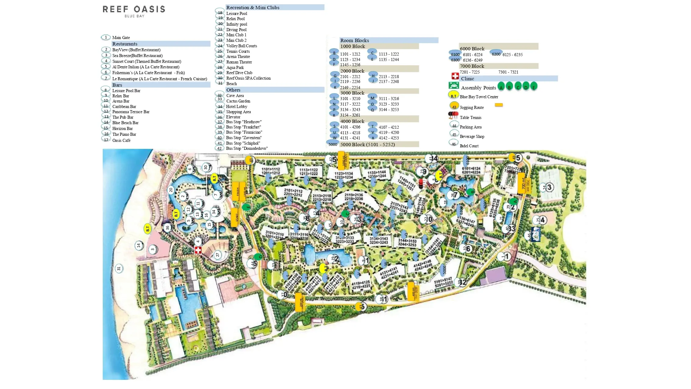 Śniadanie (07:00 - 10:00) - Bay View, stół szwedzki, Śniadanie (07:00 - 10:00) - Sea Breeze, stół szwedzki, Obiad (12:00 - 15:00) - Bay View, stół szwedzki, Obiad (12:00 - 15:00) - Sea Breeze, stół szwedzki, Przekąski (11:00 - 17:00) - Beach bar, stół szwedzki, Przekąski (11:00 - 17:00) - Leisure Pool Bar, stół szwedzki, Kolacja (19:00 - 22:00) - Bay View, stół szwedzki, Kolacja (19:00 - 22:00) - Sea Breeze, stół szwedzki, Sun Set Cours (19:00 - 22:00) (19:00 - 22:00), bez limitu, Kuchnia: Chińska, indyjska, Japońska, Libańska, Wymagana rezerwacja: Tak ¹⁾, Al Dente (19:00 - 22:00) (19:00 - 22:00), bez limitu, Kuchnia: Włoska, Wymagana rezerwacja: Tak ¹⁾, Fisherman's (19:00 - 22:00) (19:00 - 22:00), bez limitu, Kuchnia: owoce morza , Wymagana rezerwacja: Tak ¹⁾, Le Romantique (19:00 - 22:00) (19:00 - 22:00), bez limitu, Kuchnia: Francuska, Wymagana rezerwacja: Tak ¹⁾, napoje bezalkoholowe, alkohole lokalne, wybrane alkohole importowane, lody, room service, Minibar w pokoju ¹⁾ - dodatkowo płatne