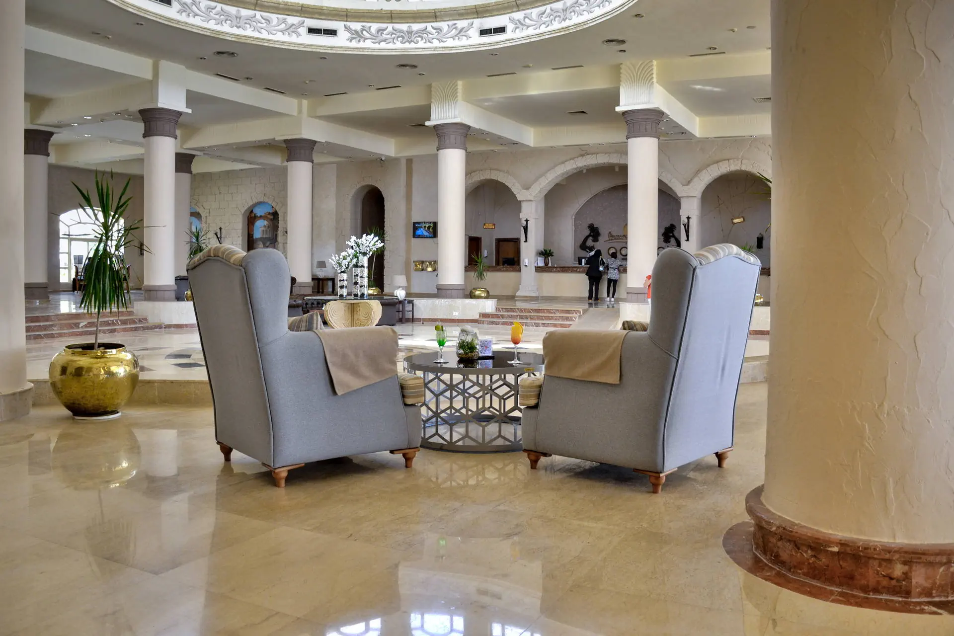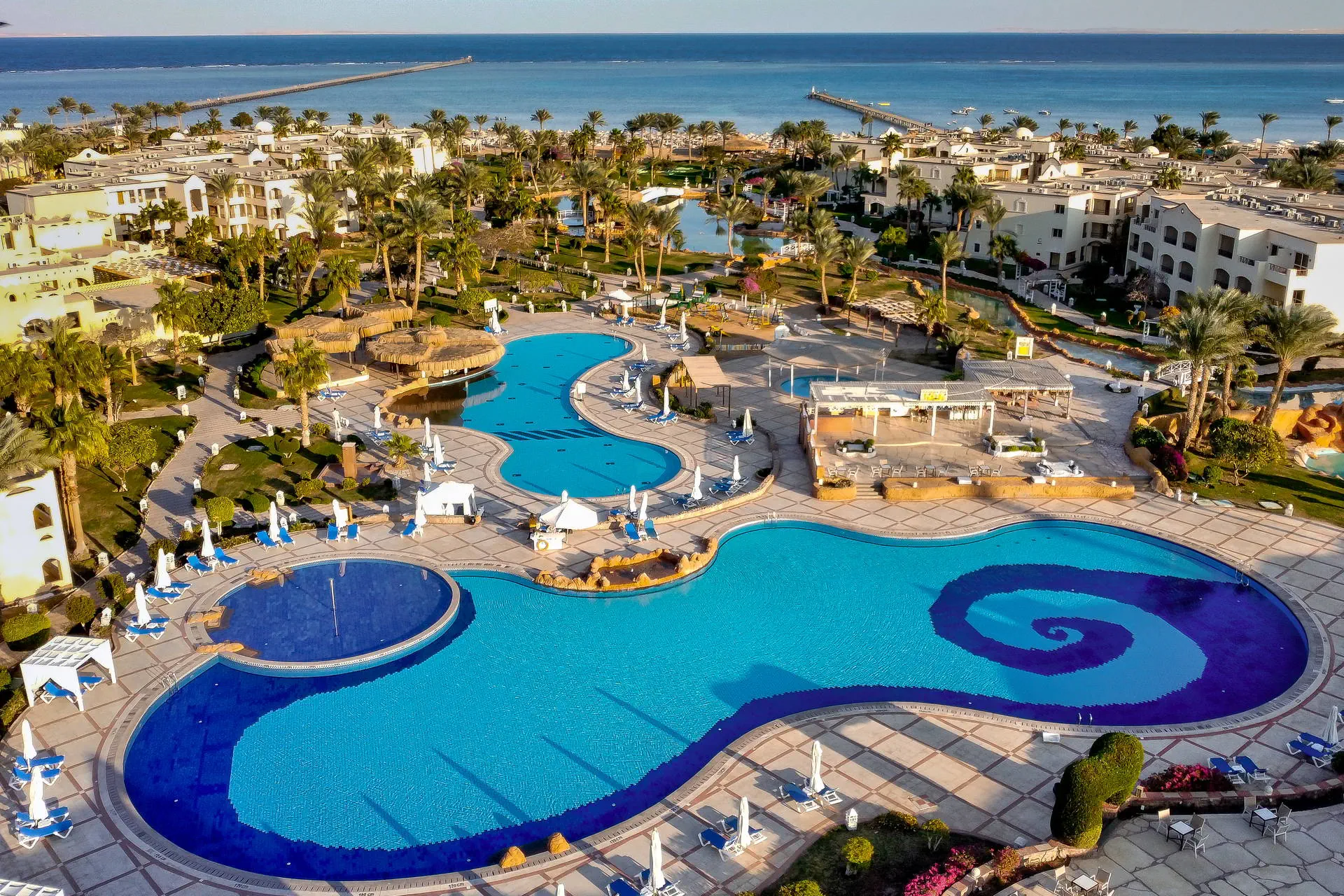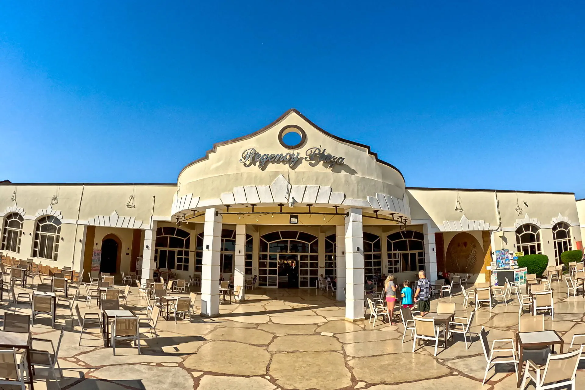 Położenie Hotel położony jest wśród starannie utrzymanej zieleni w mieście Sharm El Sheikh. Obiekt znajduje się około 13 km od międzynarodowego lotniska w Sharm El Sheikh. Do ścisłego centrum miasta Naama Bay jest około 18 km. Plaża Plaża bezpośrednio przy hotelu. Piaszczysto-żwirowa, prywatna, o długości 230 metrów. Leżaki, parasole oraz materace dostępne bezpłatnie. Do dyspozycji gości Regency Plaza Aqua Park & Spa to rozległy kompleks hotelowy, składający się z budynku głównego oraz szeregu budynków bocznych o niskiej zabudowie. Całodobowa recepcja, przestronne lobby, bankomat, restauracja główna „Floret”, kilka barów: „Lobby Bar”, Sunrise Beach Bar”, „Sunset Pool Bar”, „Aqua Park Bar” oraz dodatkowo płatne 4 restauracje a’la carte (dodatkowo płatne): „Oriental Restaurant”, „Italian Restaurant”, „Fish Restaurant” oraz „Pizza Corner Restaurant”. Ponadto dla gości dostępne: 4 baseny dla dorosłych, basen dla dzieci, Aqua Park (10:00-12:00 i 15:00-17:00) oferujący 5 zjeżdżalni dla dorosłych oraz 6 dla dzieci (leżaki i parasole dostępne bezpłatnie), siłownia, kort do tenisa, boiska do piłki nożnej i koszykówki, tenis stołowy, klub dla dzieci oraz plac zabaw. Za dodatkową opłatą: SPA, salon kosmetyczny, centrum sportów wodnych, bilard, pralnia, apteka, sklepy z pamiątkami. Pokoje Obiekt oferuje ok. 595 przestronnych, komfortowych pokoi. Wszystkie wyposażone są w: łazienkę (wanna, WC, suszarka do włosów), indywidualnie sterowaną klimatyzację, TV-sat, telefon, sejf, minibar (płatny), zestaw do parzenia kawy i herbaty, czajnik oraz balkon lub taras. Hotel oferuje butelkę wody w pokoju. Wyżywienie Rodzaje wyżywienia i posiłki: All Inclusive obejmuje: Śniadania: 07:00-10:00. Obiady: 12:30-14:30. Kolacje: 18:30-21:00. Restauracje: Restauracja główna „Floret” serwuje posiłki w formie bufetu. Bary: Lobby bar: przekąski 10:00-12:30, słodkości 21:30-00:00, napoje bezalkoholowe całodobowo, napoje alkoholowe (z wyjątkiem wina) 10:00-00:00. Bar „Sunrise”: przekąski 12:30-16:00. Bar przy basenie, aquaparku i plaży: napoje 10:00-17:00. „Terrace Bar”: napoje 18:00-23:00. Pozostałe informacje: All Inclusive nie obejmuje: mini baru, restauracji a’la carte, alkoholi importowanych oraz świeżo wyciskanych soków. Hotel zastrzega sobie prawo do zmiany zakresu usług objętych formułą all inclusive (np. godzin serwowania posiłków). Program sportowy i animacyjny Dla każdego: dzienne i wieczorne animacje prowadzone przez międzynarodowy zespół animatorów, gry i zabawy w wodzie, muzyka na żywo, baseny zewnętrzne (podgrzewane w okresie zimowym), siłownia, boiska do piłki nożnej i koszykówki, kort do tenisa oraz tenis stołowy. Dla dzieci: mini klub dla dzieci od 4 do 12 lat (10:00-12:30 i 15:00-16:30), basen oraz plac zabaw. Za dodatkową opłatą: bilard, centrum sportów wodnych na plaży oraz SPA. Kategoria lokalna ***** Naszym zdaniem Dobry wybór dla miłośników aktywnych wakacji oraz rodzin z dziećmi. Lokalizacja przy malowniczej plaży, rewelacyjny AquaPark.Obiekt polecany mniej wymagającym klientom. Strona www www.regencyplazasharm.com Internet Wi-Fi dodatkowo płatne (ok.10 USD /4dni).