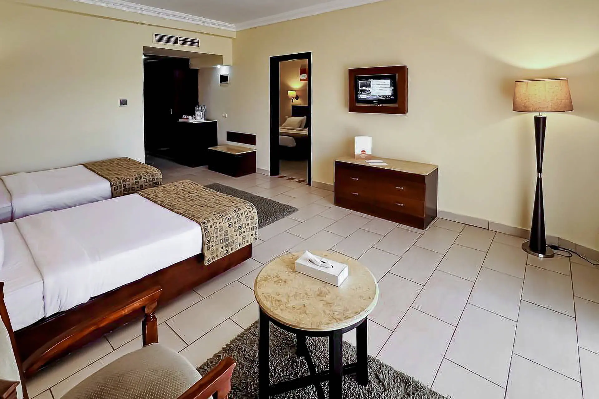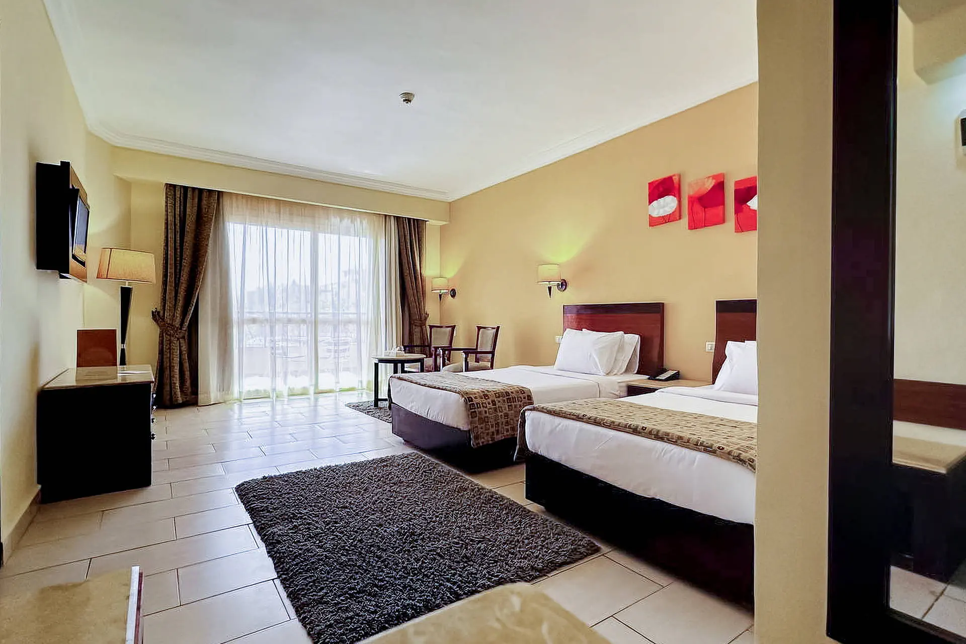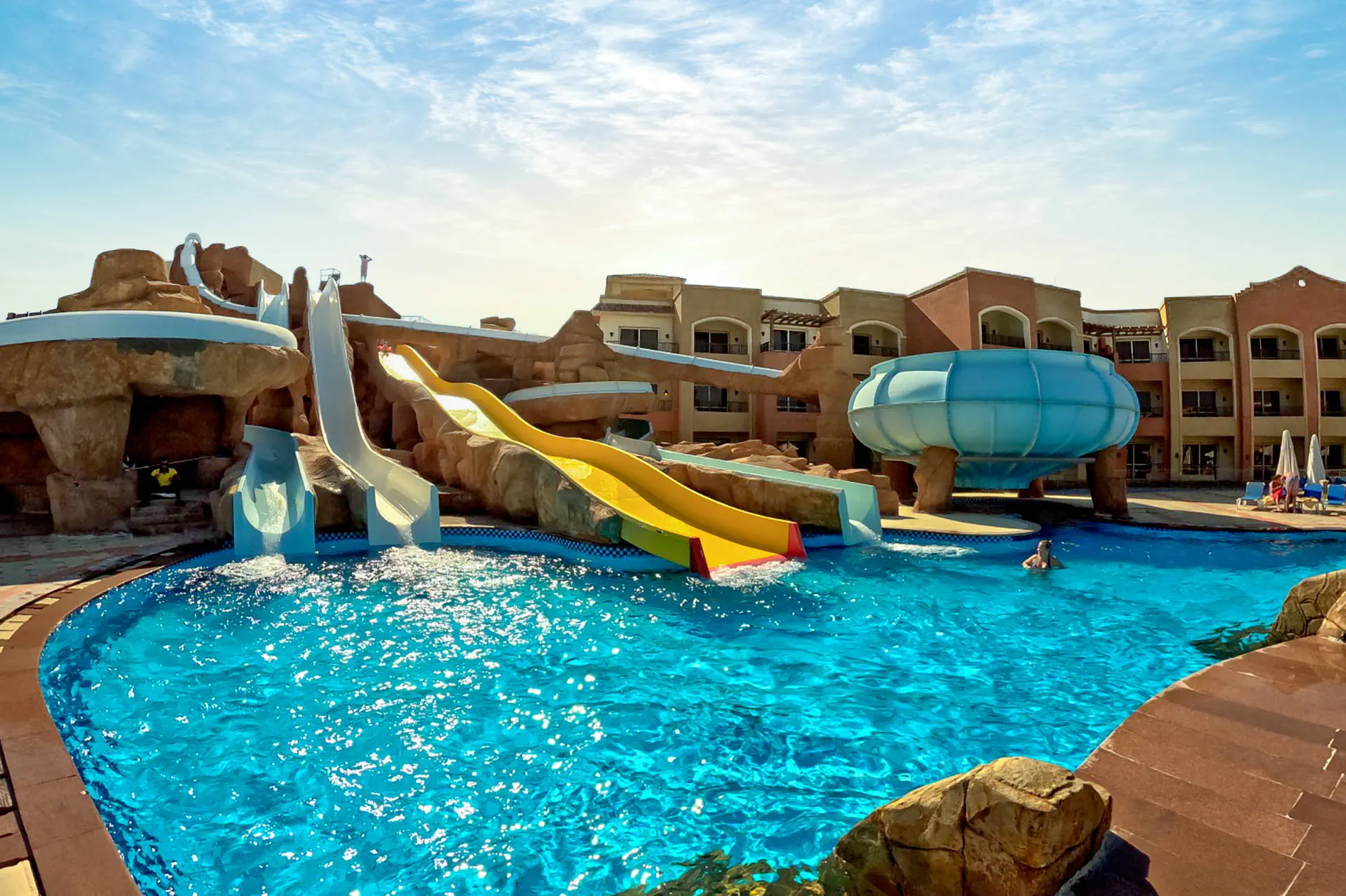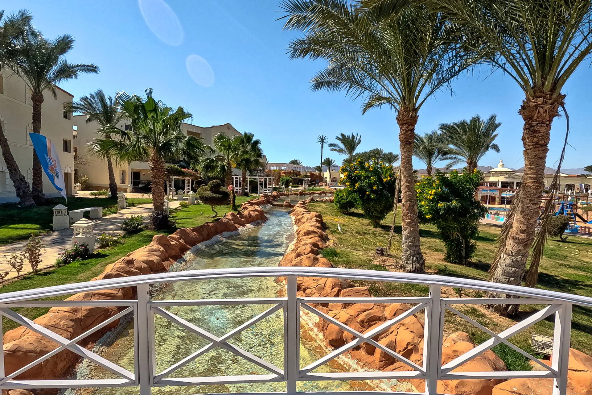 Położenie Hotel położony jest wśród starannie utrzymanej zieleni w mieście Sharm El Sheikh. Obiekt znajduje się około 13 km od międzynarodowego lotniska w Sharm El Sheikh. Do ścisłego centrum miasta Naama Bay jest około 18 km. Plaża Plaża bezpośrednio przy hotelu. Piaszczysto-żwirowa, prywatna, o długości 230 metrów. Leżaki, parasole oraz materace dostępne bezpłatnie. Do dyspozycji gości Regency Plaza Aqua Park & Spa to rozległy kompleks hotelowy, składający się z budynku głównego oraz szeregu budynków bocznych o niskiej zabudowie. Całodobowa recepcja, przestronne lobby, bankomat, restauracja główna „Floret”, kilka barów: „Lobby Bar”, Sunrise Beach Bar”, „Sunset Pool Bar”, „Aqua Park Bar” oraz dodatkowo płatne 4 restauracje a’la carte (dodatkowo płatne): „Oriental Restaurant”, „Italian Restaurant”, „Fish Restaurant” oraz „Pizza Corner Restaurant”. Ponadto dla gości dostępne: 4 baseny dla dorosłych, basen dla dzieci, Aqua Park (10:00-12:00 i 15:00-17:00) oferujący 5 zjeżdżalni dla dorosłych oraz 6 dla dzieci (leżaki i parasole dostępne bezpłatnie), siłownia, kort do tenisa, boiska do piłki nożnej i koszykówki, tenis stołowy, klub dla dzieci oraz plac zabaw. Za dodatkową opłatą: SPA, salon kosmetyczny, centrum sportów wodnych, bilard, pralnia, apteka, sklepy z pamiątkami. Pokoje Obiekt oferuje ok. 595 przestronnych, komfortowych pokoi. Wszystkie wyposażone są w: łazienkę (wanna, WC, suszarka do włosów), indywidualnie sterowaną klimatyzację, TV-sat, telefon, sejf, minibar (płatny), zestaw do parzenia kawy i herbaty, czajnik oraz balkon lub taras. Hotel oferuje butelkę wody w pokoju. Wyżywienie Rodzaje wyżywienia i posiłki: All Inclusive obejmuje: Śniadania: 07:00-10:00. Obiady: 12:30-14:30. Kolacje: 18:30-21:00. Restauracje: Restauracja główna „Floret” serwuje posiłki w formie bufetu. Bary: Lobby bar: przekąski 10:00-12:30, słodkości 21:30-00:00, napoje bezalkoholowe całodobowo, napoje alkoholowe (z wyjątkiem wina) 10:00-00:00. Bar „Sunrise”: przekąski 12:30-16:00. Bar przy basenie, aquaparku i plaży: napoje 10:00-17:00. „Terrace Bar”: napoje 18:00-23:00. Pozostałe informacje: All Inclusive nie obejmuje: mini baru, restauracji a’la carte, alkoholi importowanych oraz świeżo wyciskanych soków. Hotel zastrzega sobie prawo do zmiany zakresu usług objętych formułą all inclusive (np. godzin serwowania posiłków). Program sportowy i animacyjny Dla każdego: dzienne i wieczorne animacje prowadzone przez międzynarodowy zespół animatorów, gry i zabawy w wodzie, muzyka na żywo, baseny zewnętrzne (podgrzewane w okresie zimowym), siłownia, boiska do piłki nożnej i koszykówki, kort do tenisa oraz tenis stołowy. Dla dzieci: mini klub dla dzieci od 4 do 12 lat (10:00-12:30 i 15:00-16:30), basen oraz plac zabaw. Za dodatkową opłatą: bilard, centrum sportów wodnych na plaży oraz SPA. Kategoria lokalna ***** Naszym zdaniem Dobry wybór dla miłośników aktywnych wakacji oraz rodzin z dziećmi. Lokalizacja przy malowniczej plaży, rewelacyjny AquaPark.Obiekt polecany mniej wymagającym klientom. Strona www www.regencyplazasharm.com Internet Wi-Fi dodatkowo płatne (ok.10 USD /4dni).