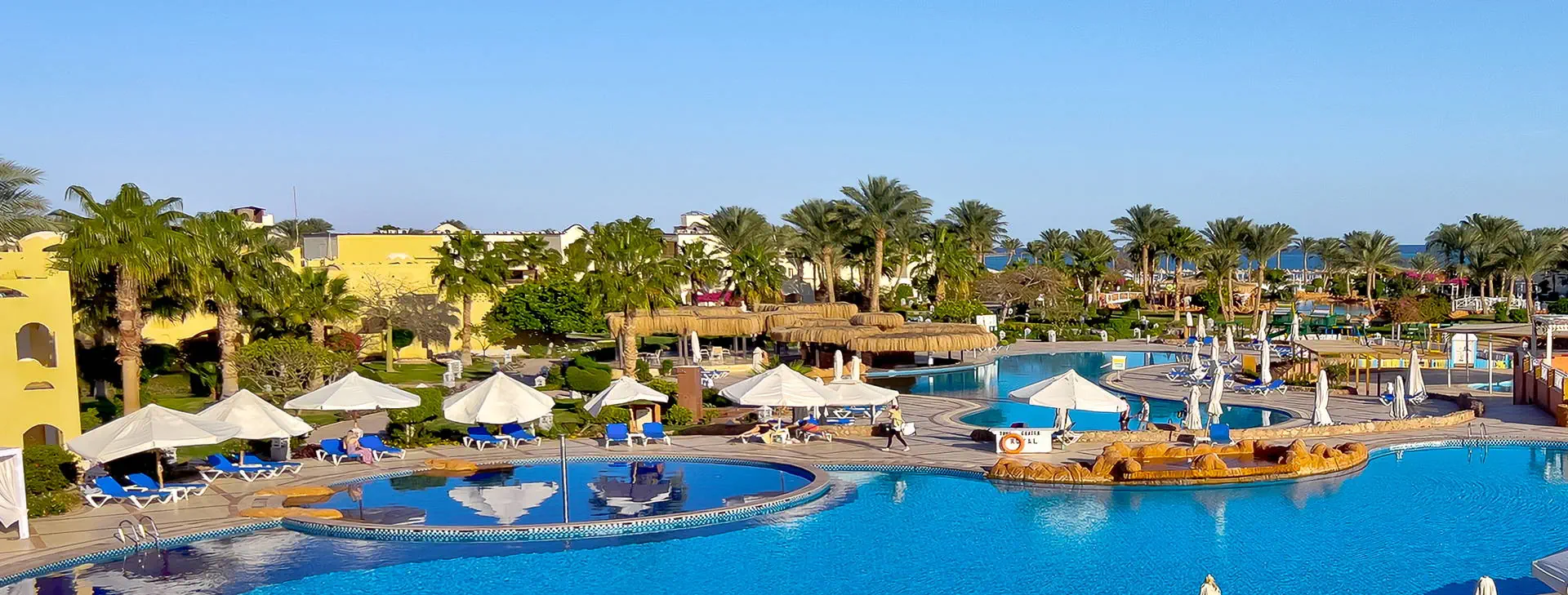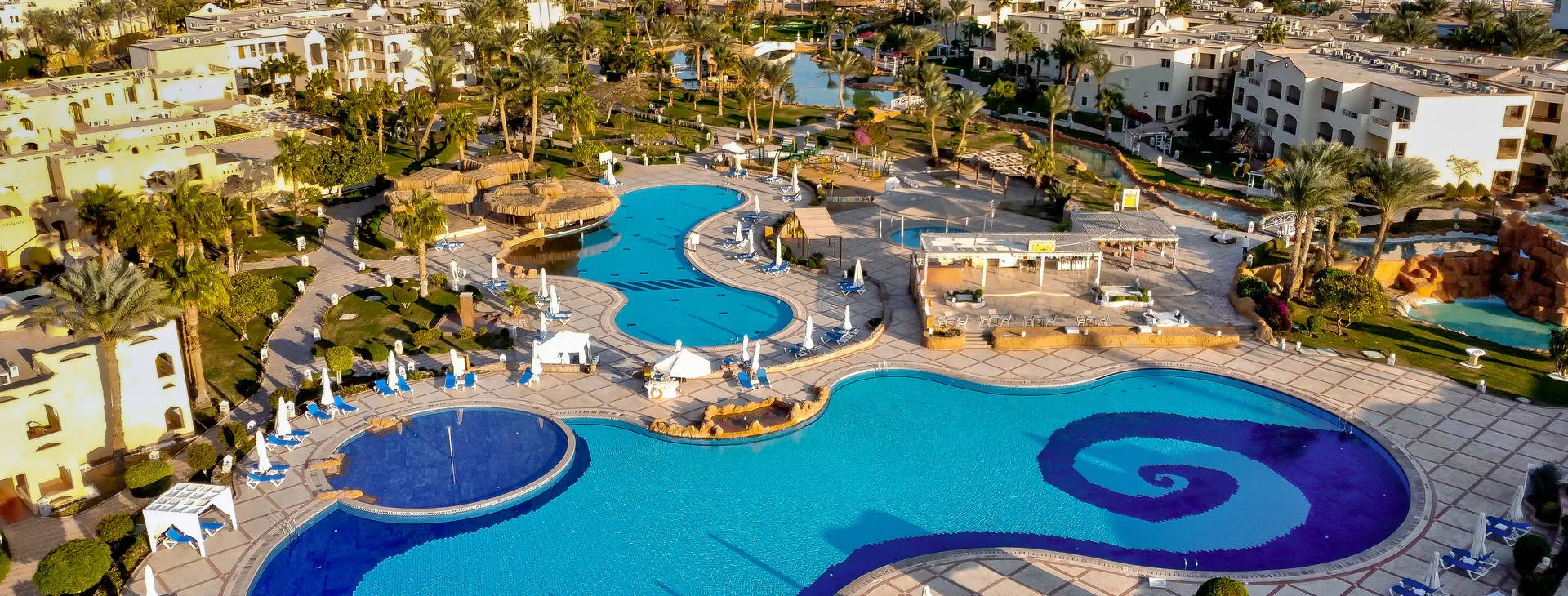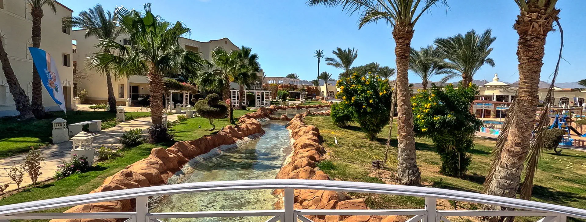 Położenie: Rozległy kompleks hotelowy położony wśród starannie utrzymanej zieleni. Do ścisłego centrum Sharm el Sheikh (Naama Bay) ok. 25 km, ok. 12 km od lotniska. Plaża: Hotel zlokalizowany jest bezpośrednio przy 230-metrowej, piaszczysto-żwirowej plaży. Leżaki, parasole oraz materace na plaży - bezpłatne. Do dyspozycji gości: Obiekt składający się z budynku głównego oraz szeregu budynków bocznych o niskiej zabudowie. Recepcja 24 - godz., przestronne lobby, restauracja główna, 4 bary: Sun Rise Beach Bar, Aqua Park Bar, Bella Vista Pool Bar, Azure Lobby Bar oraz dodatkowo płatne 3 restauracji a’la carte: Oriental Restaurant, Italian Restaurant, Fish Restaurant, a także dyskoteka (czynna okresowo), shisha corner, sklepy z pamiątkami, pralnia (dodatkowo płatne). Do dyspozycji gości 4 baseny dla dorosłych, basen dla dzieci, Aqua Park (10:30-12:30, 14:30-16:30) oferujący 5 zjeżdżalni dla dorosłych i część dla najmłodszych z małymi zjeżdżalniami. Leżaki, parasole oraz materace przy basenach - bezpłatne. Wyżywienie: All Inclusive obejmujące śniadania (07:00-10:00), obiady (12:30-14:30) i kolacje (18:30-21:00) serwowane w formie bufetu w restauracji głównej. Przekąski dostępne są w barze na plaży (12:30-16:00), Aqua Park Bar (10:00-12:00 oraz 16:00 - 17:30), w lobby barze herbata i słodkie przekąski (16:30-17:30). Lokalne napoje alkoholowe (z wyjątkiem wina) i bezalkoholowe dostępne podczas posiłków, w ciągu dnia serwowane w barze przy basenie, aquaparku i na plaży (10:00-17:00), a w lobby barze (10:00-24:00). All Inclusive nie obejmuje mini baru, restauracji a’la carte, alkoholi importowanych oraz świeżo wyciskanych soków. Hotel zastrzega sobie prawo do zmiany zakresu usług objętych formułą all inclusive (np. godzin serwowania posiłków). Program sportowy i animacyjny: Animacje w ciągu dnia i wieczorami prowadzone przez międzynarodowy zespół animatorów. Bezpłatnie m.in.: siłownia, tenis stołowy, siatkówka plażowa, piłka nożna, koszykówka oraz odpłatnie: bilard, kort tenisowy, sauna, masaże i jacuzzi. Na plaży centrum sportów wodnych (odpłatnie) - nurkowanie. Dla najmłodszych - mini klub (dla dzieci w przedziale 4-12 lat, czynny okresowo w godzinach 10:00-13:00 i 15:00-17:00) i plac zabaw, mini disco oraz brodzik. Internet: Internet Wi-Fi - płatny (ok.10 USD /4dni). Kategoria lokalna: ***** Strona www:
