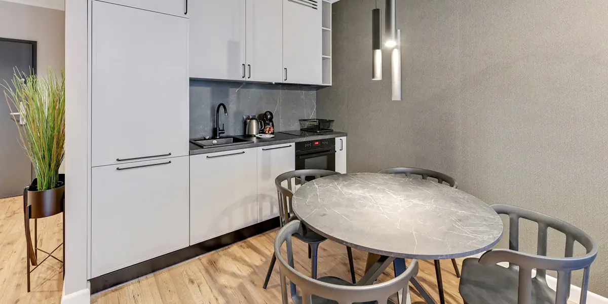 Apartament z 1 sypialnią, salonem z aneksem kuchennym oraz łazienką. 48 m2 powierzchni
