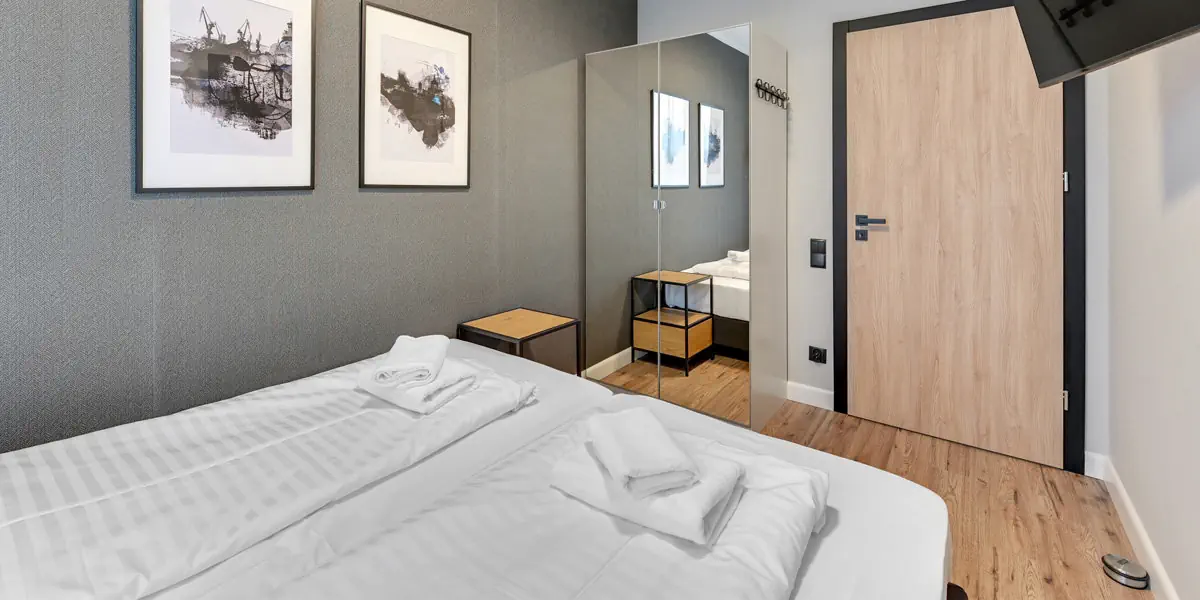 Apartamenty mieszczą się w nowym apartamentowcu nad Motławą, w centrum Gdańska, nieopodal Muzeum II wojny światowej.