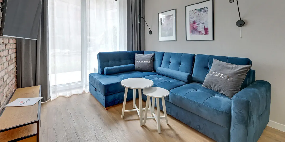 Apartament z 1 sypialnią, salonem z aneksem kuchennym oraz łazienką. 32 m2 powierzchni
