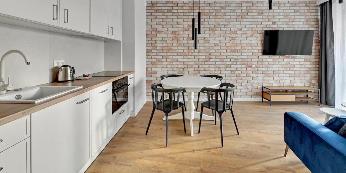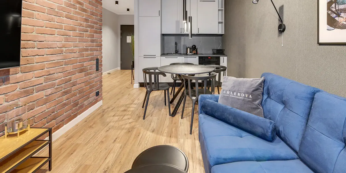 Apartament z 1 sypialnią, salonem z aneksem kuchennym oraz łazienką. 39 m2 powierzchni