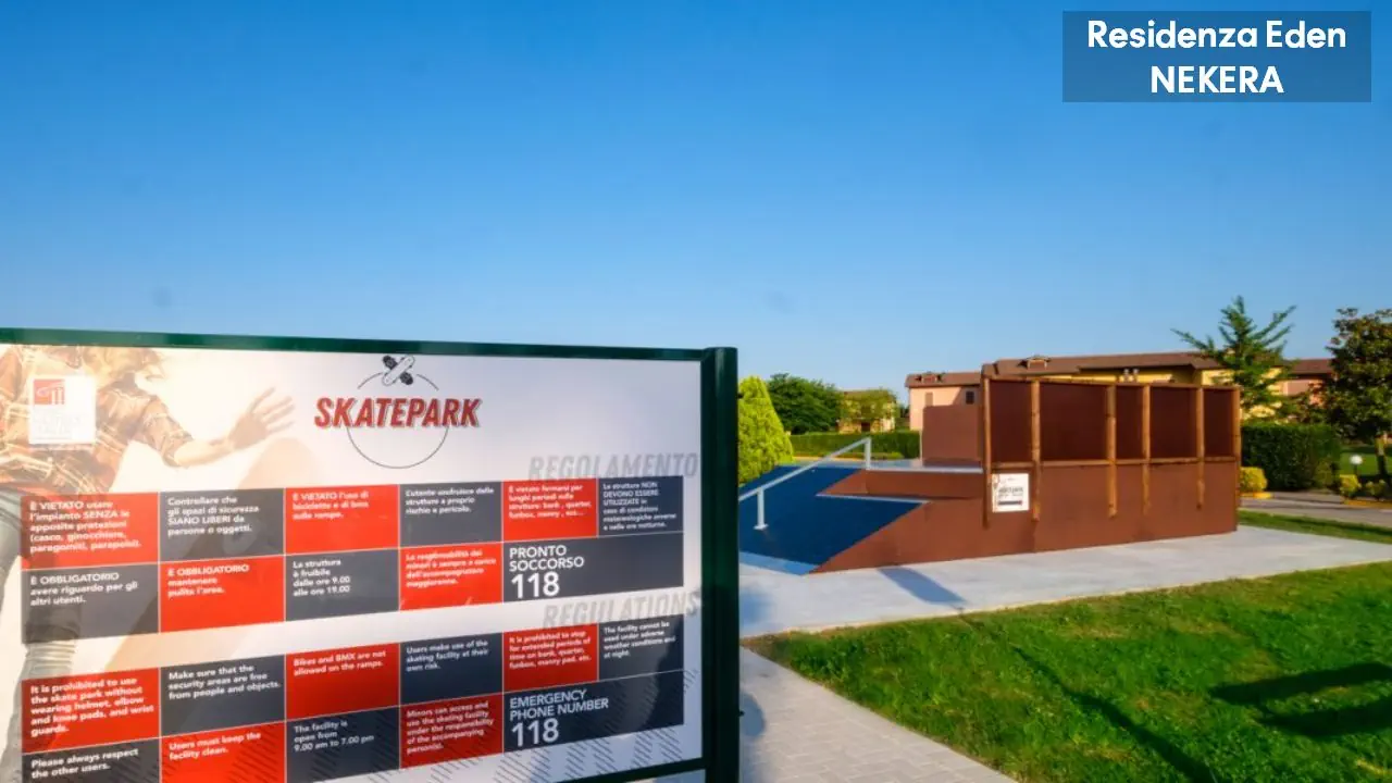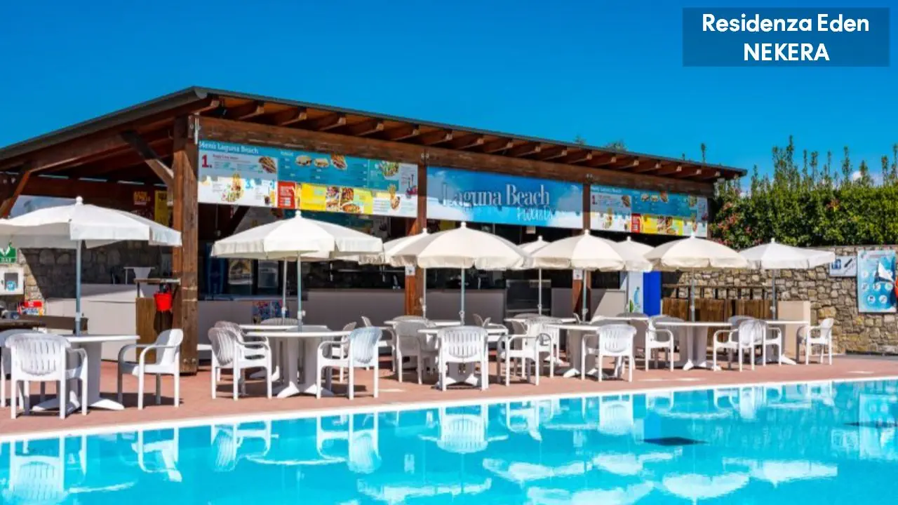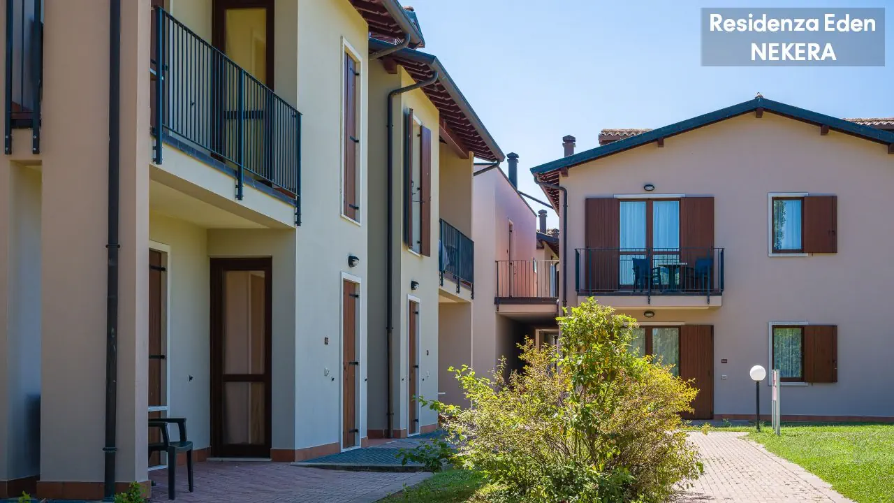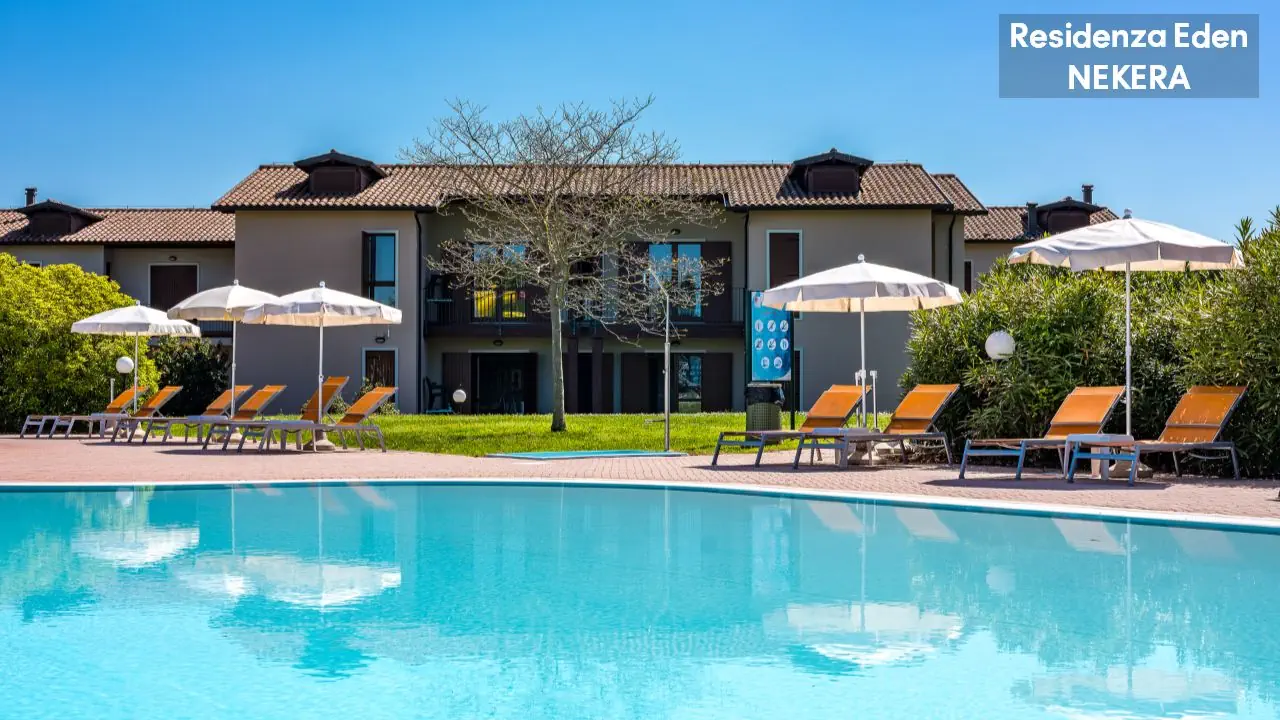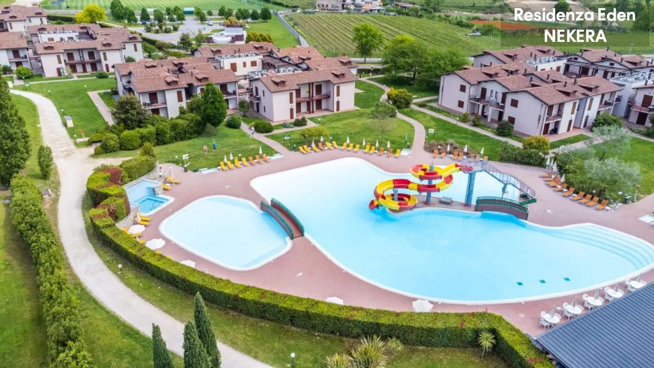 Kompleks apartamentowy oferuje 173 apartamenty w niskiej zabudowie, położone wokół ogrodu i basenów. Do dyspozycji gości: recepcja w Parc Hotel (ok. 200 m od Residence Eden), restauracja i bar w części głównej kompleksu, basen ze zjeżdżalnią wodną, dodatkowo 4 odkryte baseny znajdujące się w sąsiednim hotelu Parc Hotel w tym basen dla dzieci oraz basen znajdujący się w sąsiednim hotelu Active Hotel Paradiso, taras słoneczny z leżakami i parasolami, plac zabaw, miniklub. Dodatkowo płatne: pralnia, sklep, wypożyczalnia rowerów, pole golfowe.