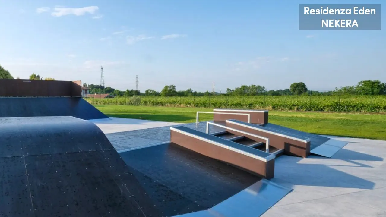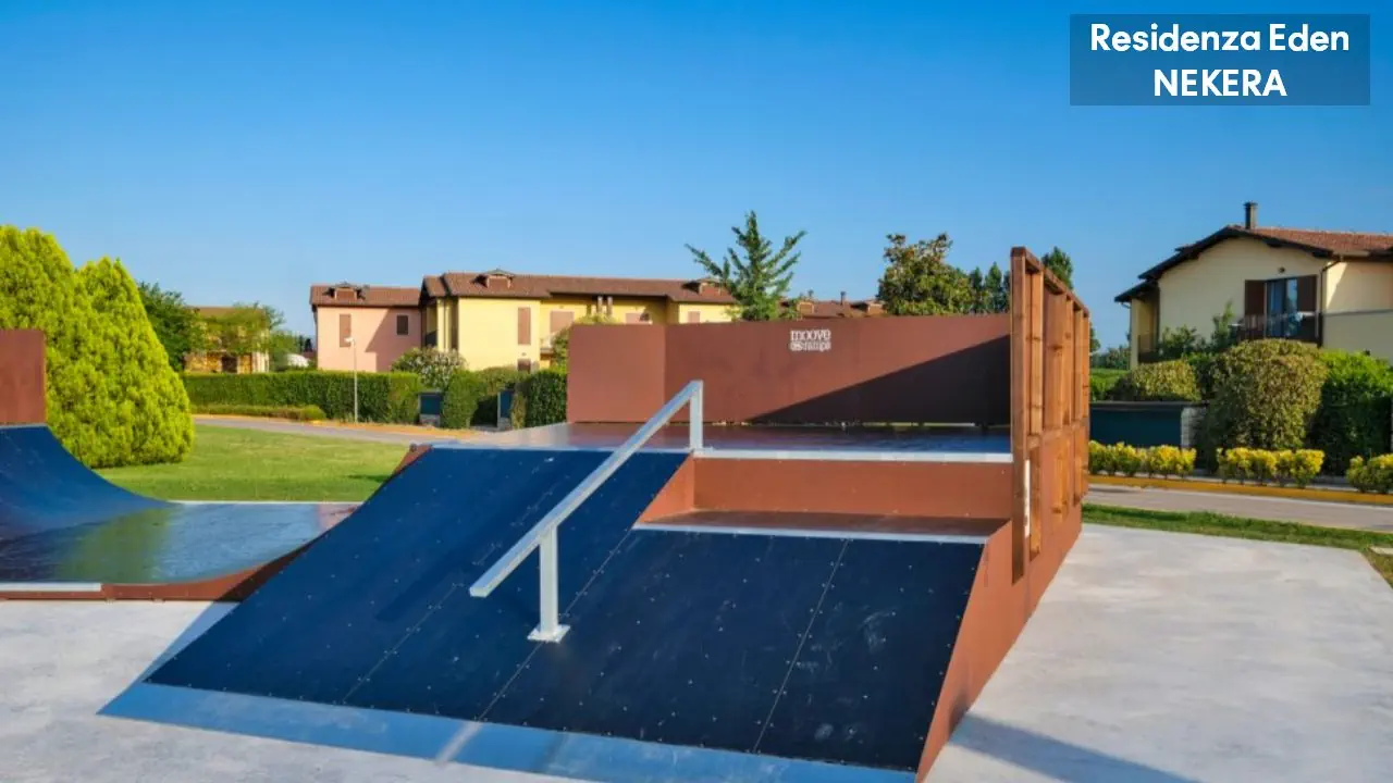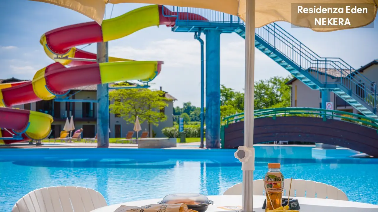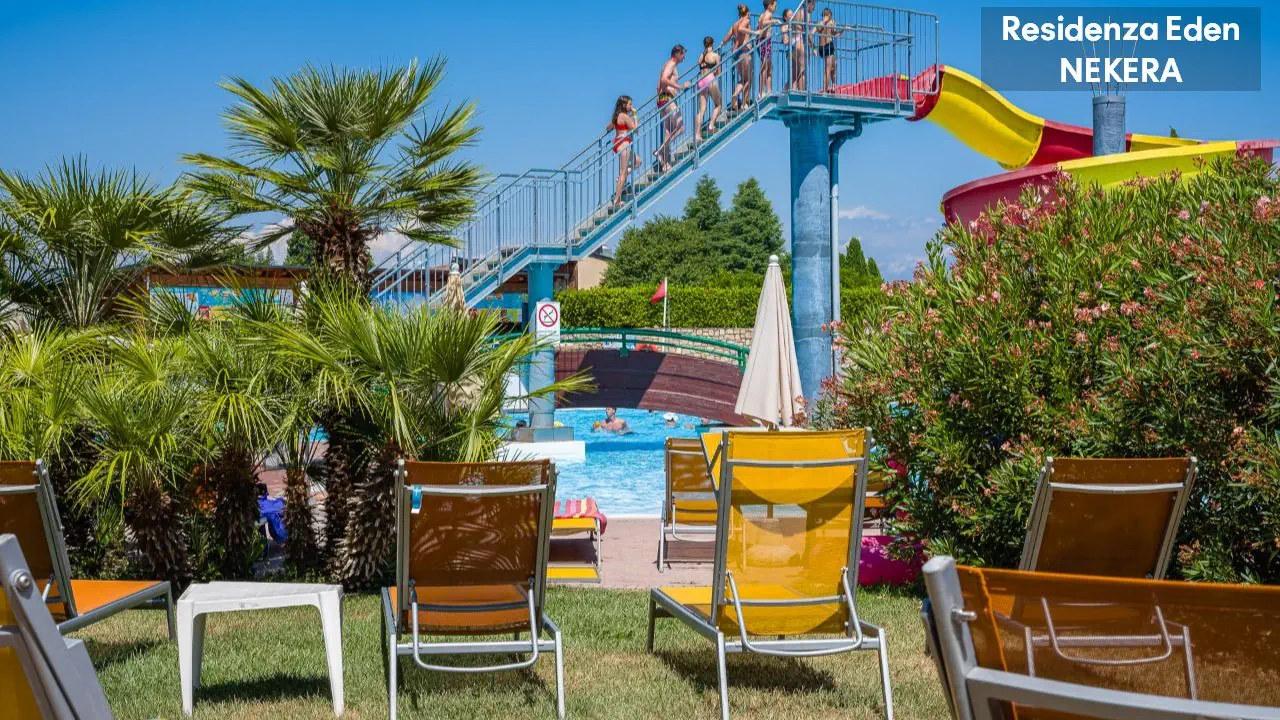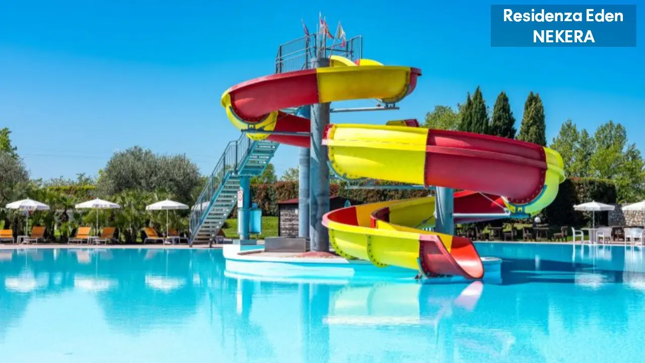 Kompleks apartamentowy oferuje 173 apartamenty w niskiej zabudowie, położone wokół ogrodu i basenów. Do dyspozycji gości: recepcja w Parc Hotel (ok. 200 m od Residence Eden), restauracja i bar w części głównej kompleksu, basen ze zjeżdżalnią wodną, dodatkowo 4 odkryte baseny znajdujące się w sąsiednim hotelu Parc Hotel w tym basen dla dzieci oraz basen znajdujący się w sąsiednim hotelu Active Hotel Paradiso, taras słoneczny z leżakami i parasolami, plac zabaw, miniklub. Dodatkowo płatne: pralnia, sklep, wypożyczalnia rowerów, pole golfowe.