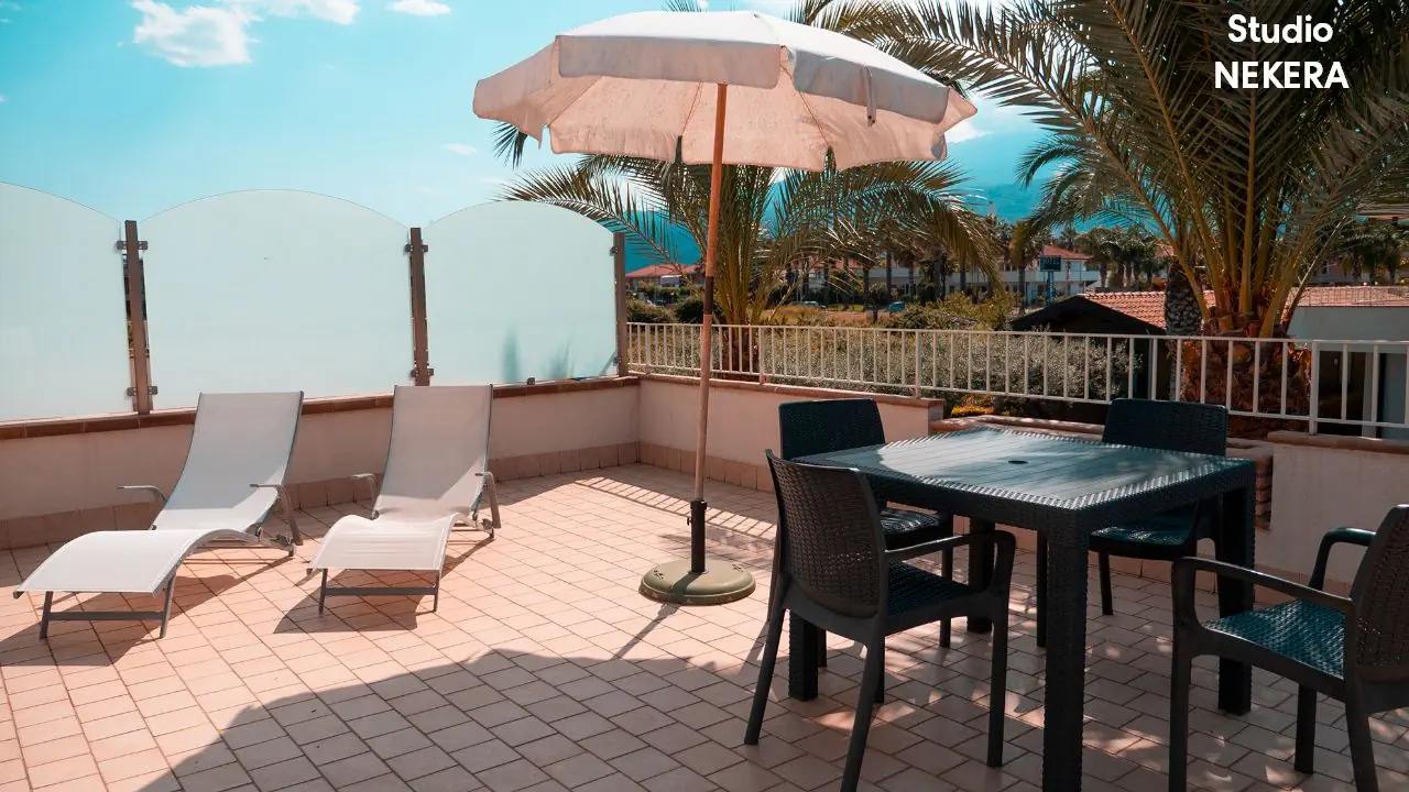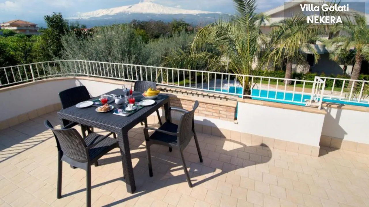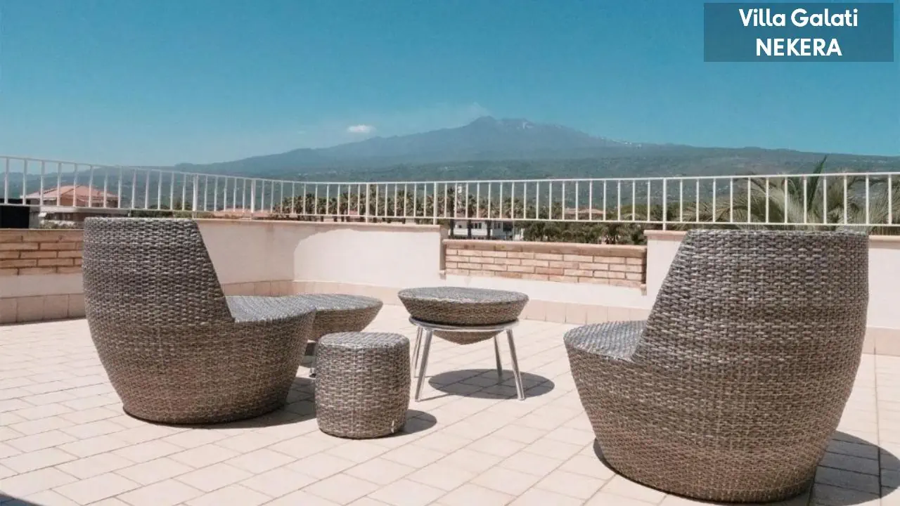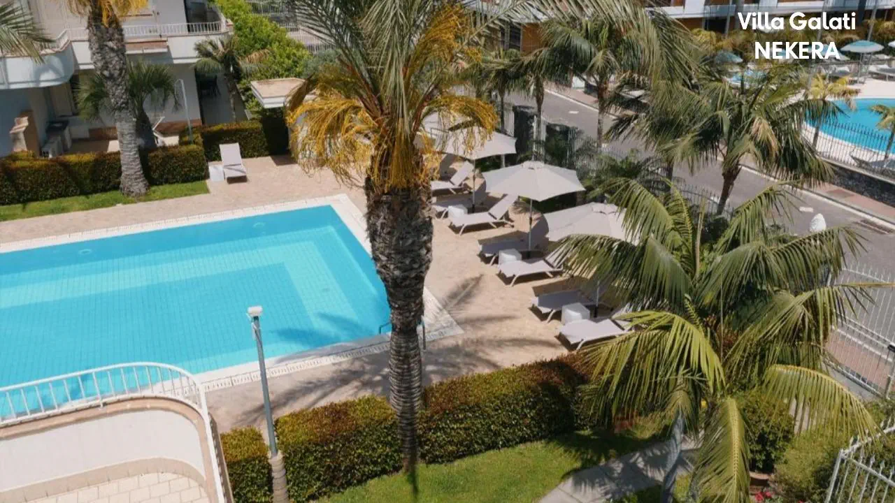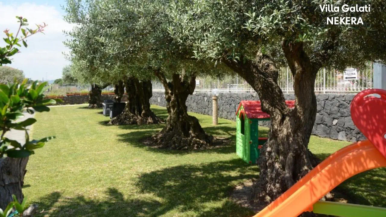 kameralny kompleks apartamentowy w stylu rezydencji wakacyjnej, składa się z kilku niskich budynków położonych w zadbanym, ogrodzonym ogrodzie z widokiem na morze i Etnę. Do dyspozycji Gości: recepcja, ogród, odkryty basen ze strefą hydromasażu / jacuzzi, taras słoneczny z leżakami i parasolami, niewielki plac zabaw dla dzieci, strefy wypoczynkowe na świeżym powietrzu, przechowalnia bagażu. Za dodatkową opłatą: wypożyczalnia samochodów.