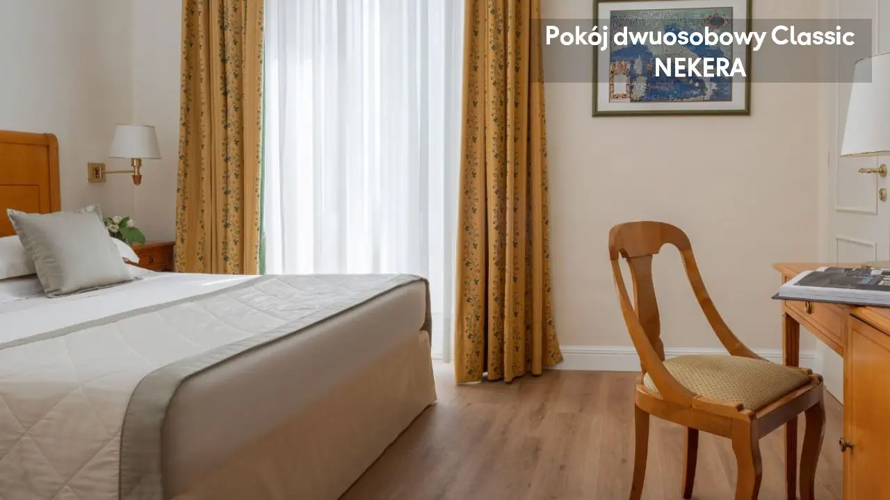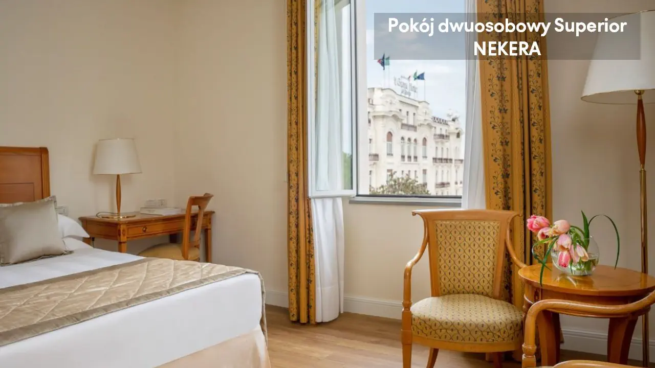 Pokój dwuosobowy Classic: ok. 18 m2, mogący zakwaterować do dwóch osób; jedno łóżko podwójne lub dwa łóżka pojedyncze, TV, Wi-Fi, biurko, sejf, klimatyzacja, minibar, prywatna łazienka (wanna lub prysznic, toaleta, umywalka, suszarka do włosów). Pokój dwuosobowy Superior: ok. 25 m2, mogący zakwaterować do trzech osób, jedno łóżko podwójne lub dwa łóżka pojedyncze z możliwością dostawki, pokój większy; poza tym wyposażony jak pokój dwuosobowy Classic. Junior Suite: ok. 30 m2, mogący zakwaterować do trzech osób, jedno łóżko podwójne z możliwością dostawki i część dzienna z miejscem do siedzenia, poza tym wyposażony jak pokój dwuosobowy Classic.