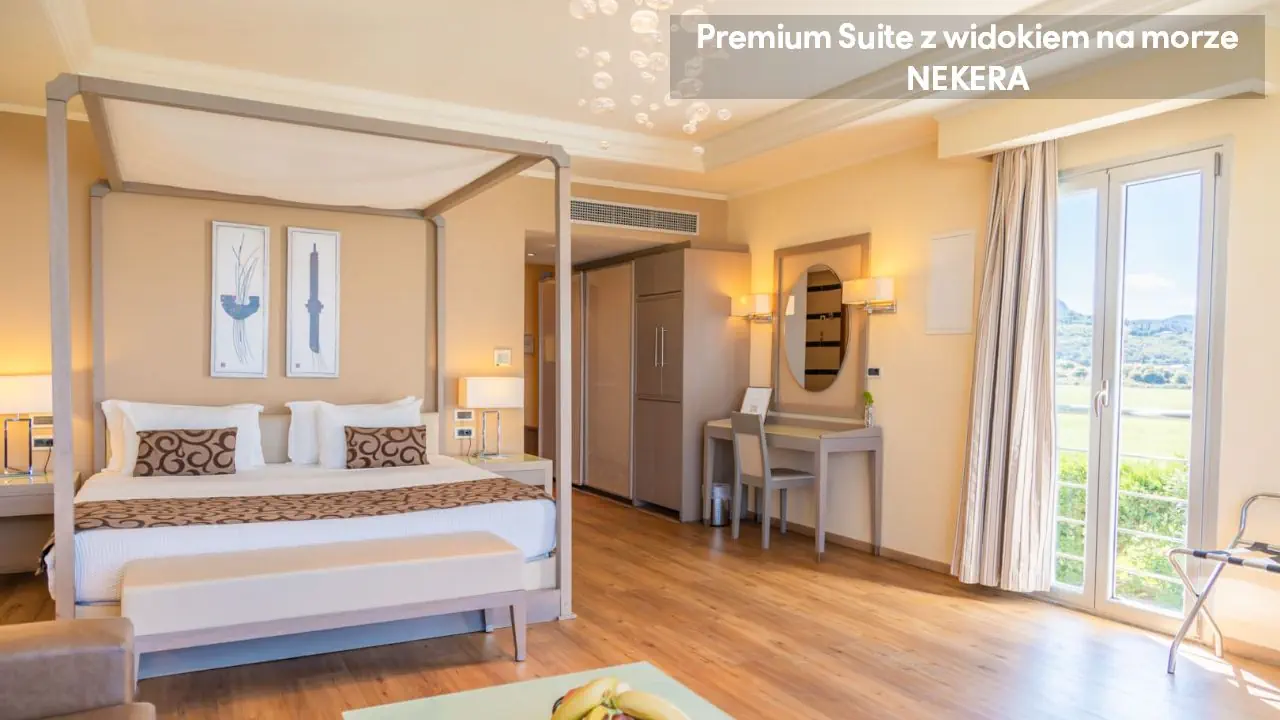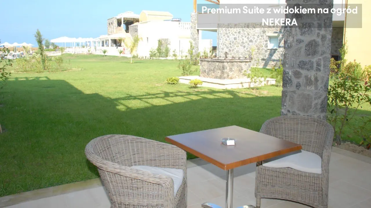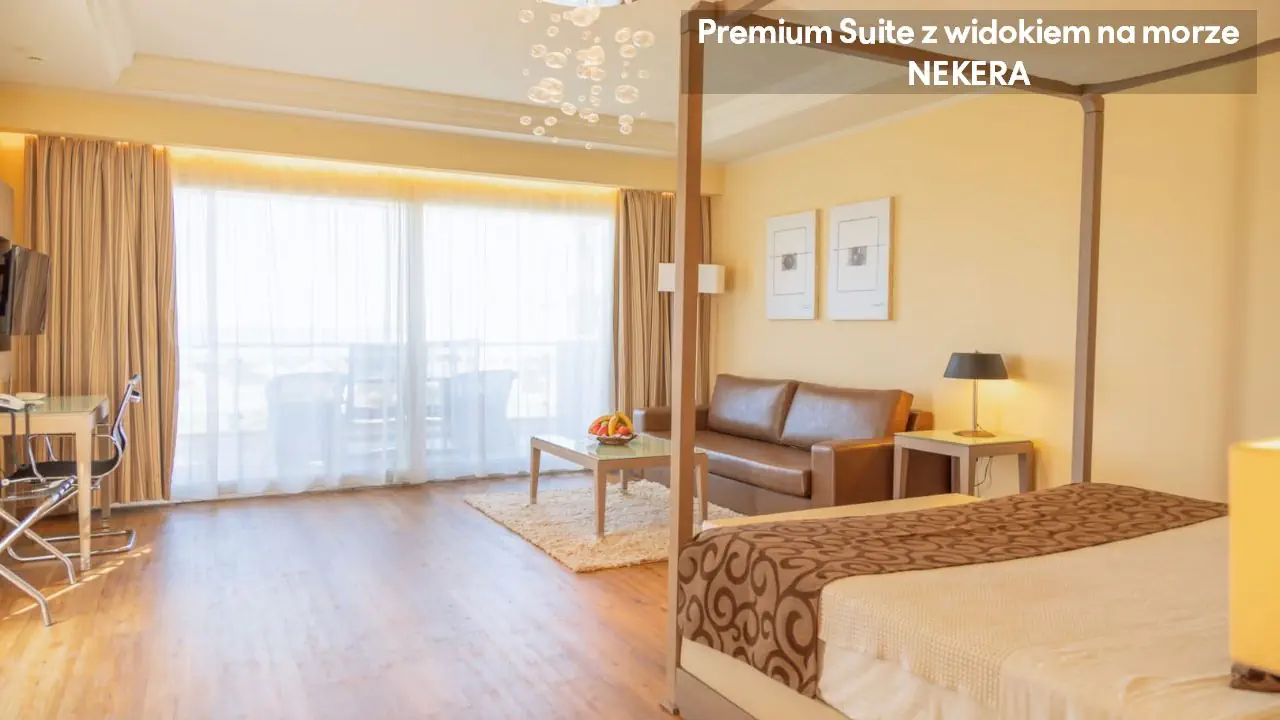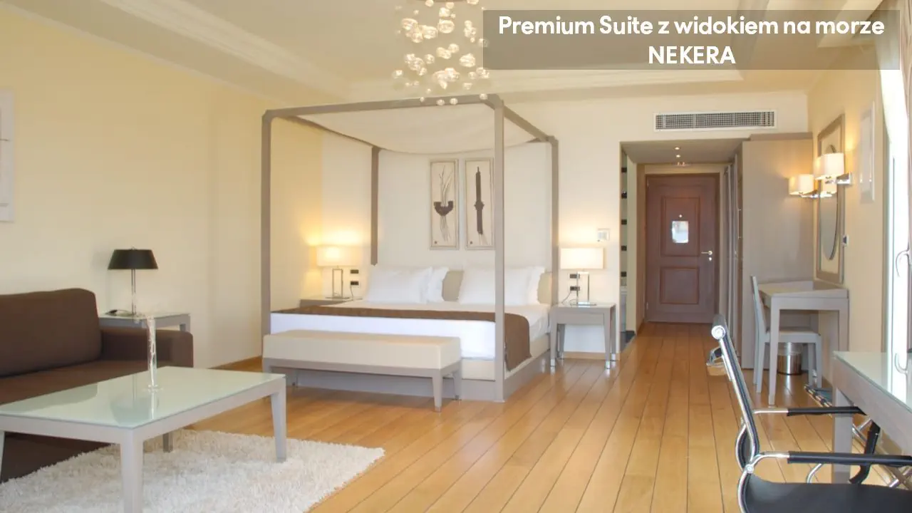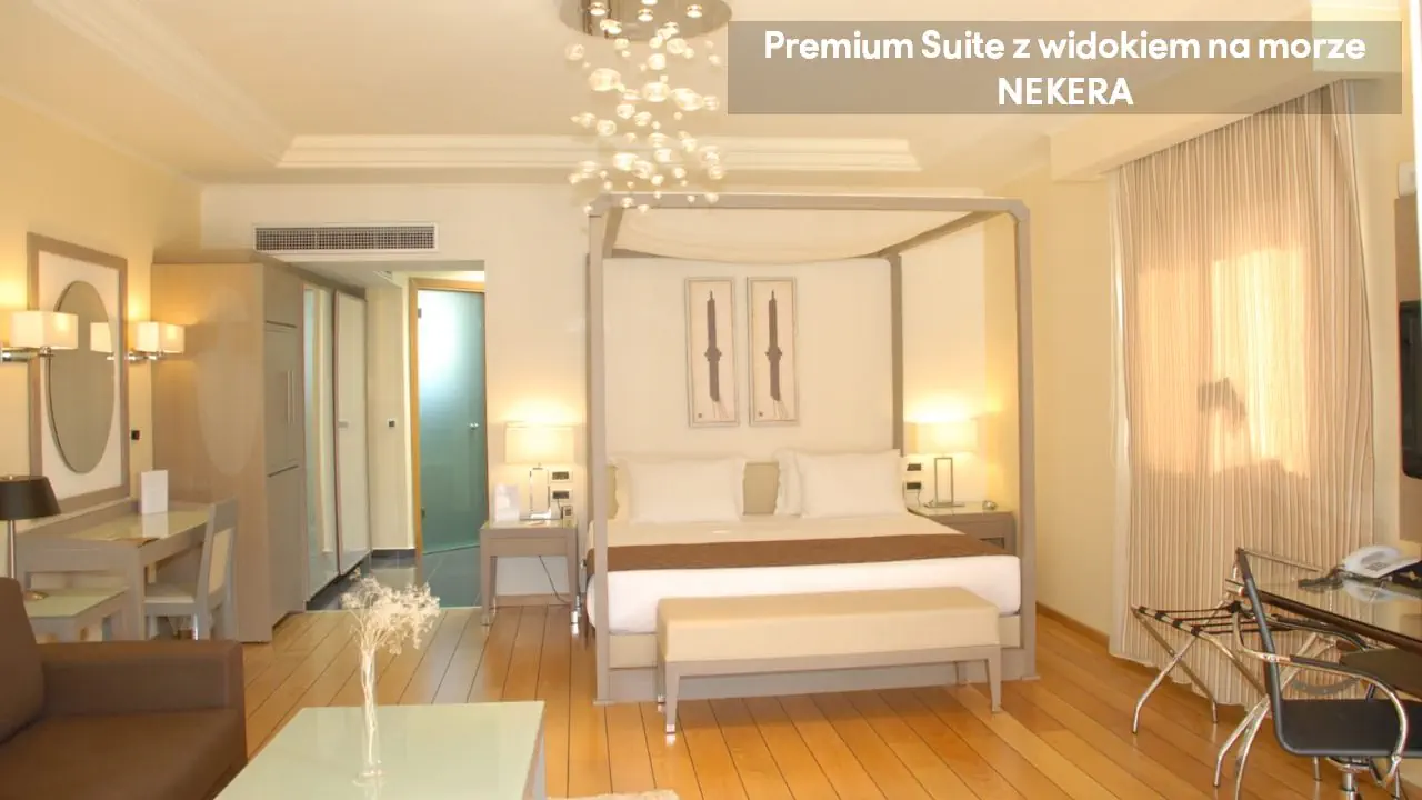 Suite Premium z widokiem na ogród - max 3-os - jedno łóżko podwójne lub dwa pojedyncze, sofa jako dostawka - klimatyzacja - sejf - bezpłatne Wi-Fi - suszarka do włosów - telewizor z płaskim ekranem - lodówka - łazienka z wanną lub prysznicem - mini kosmetyki - balkon lub taras - za dodatkową opłatą możliwość rezerwacji pokoju z prywatnym dostępem do basenu Suite Premium z widokiem na morze - ok. 52 m² - max 3-os - jedno łóżko podwójne lub dwa pojedyncze, sofa jako dostawka - klimatyzacja - sejf - bezpłatne Wi-Fi - suszarka do włosów - telewizor z płaskim ekranem - lodówka - łazienka z prysznicem lub wanną, jacuzzi - mini kosmetyki, kapcie, szlafrok - balkon lub taras