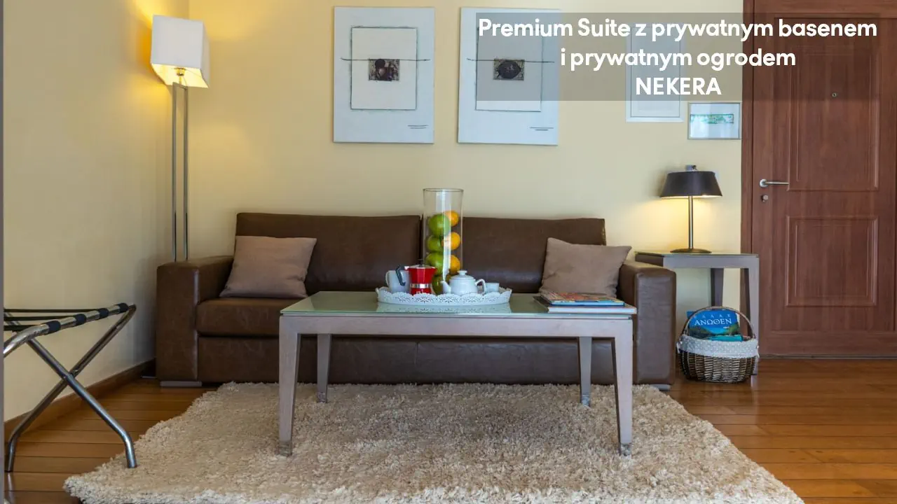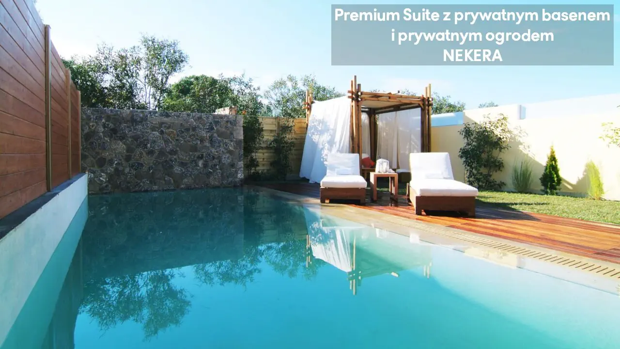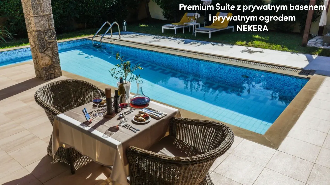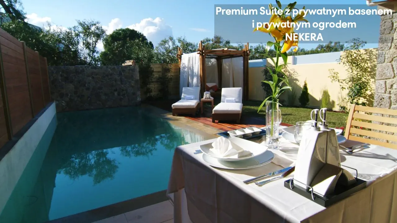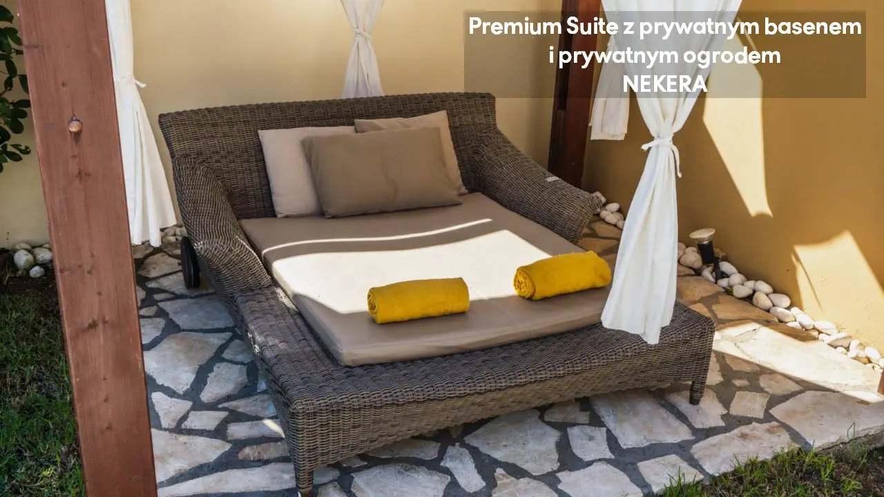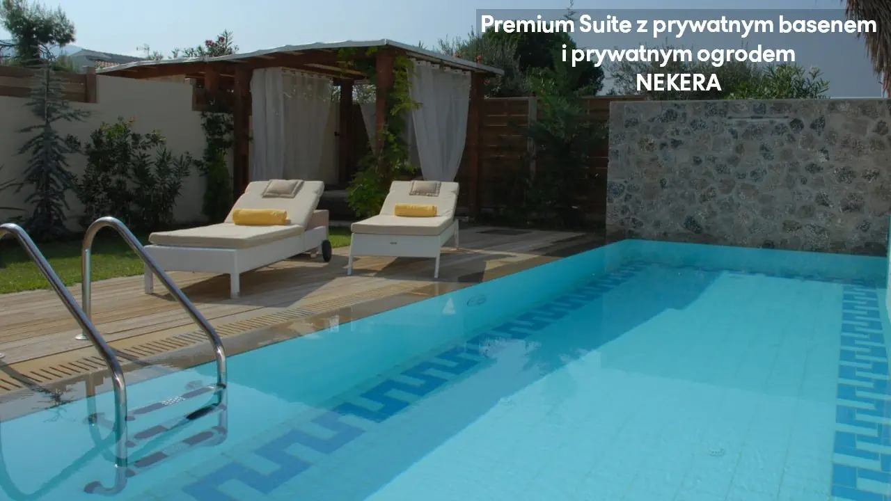 Suite Premium z widokiem na ogród - max 3-os - jedno łóżko podwójne lub dwa pojedyncze, sofa jako dostawka - klimatyzacja - sejf - bezpłatne Wi-Fi - suszarka do włosów - telewizor z płaskim ekranem - lodówka - łazienka z wanną lub prysznicem - mini kosmetyki - balkon lub taras - za dodatkową opłatą możliwość rezerwacji pokoju z prywatnym dostępem do basenu Suite Premium z widokiem na morze - ok. 52 m² - max 3-os - jedno łóżko podwójne lub dwa pojedyncze, sofa jako dostawka - klimatyzacja - sejf - bezpłatne Wi-Fi - suszarka do włosów - telewizor z płaskim ekranem - lodówka - łazienka z prysznicem lub wanną, jacuzzi - mini kosmetyki, kapcie, szlafrok - balkon lub taras