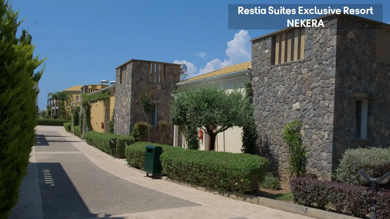 - na północy wyspy - na uboczu popularnej wypoczynkowej miejscowości Acharavi - ok. 2,5 km do centrum z barami, restauracjami i sklepami - ok. 6,5 km od miasta Roda - ok 18 km od Przylądka Drastis - ok. 40 km do miasta Korfu - ok. 40 km od lotniska