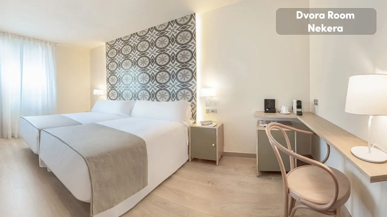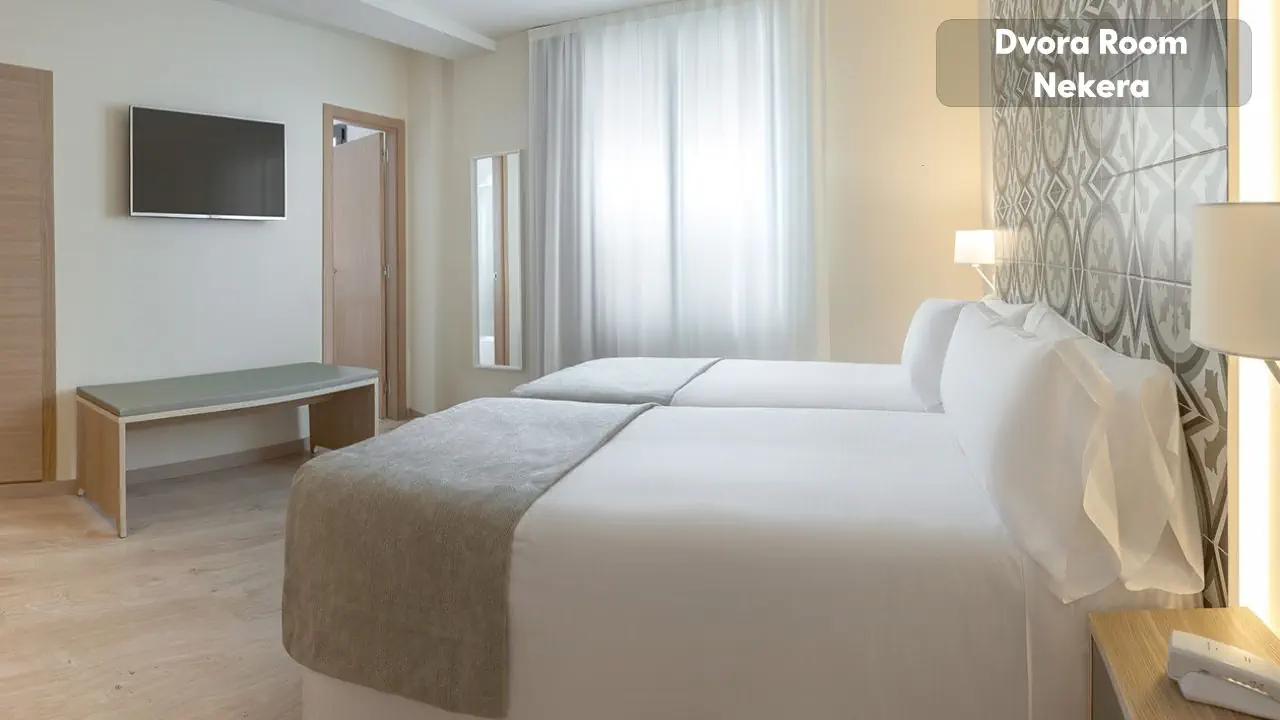 - powierzchnia 24m2 - balkon - dwa pojedyncze łóżka lub podwójne łóżko - smart TV - biurko - czajnik - zestaw do parzenia kawy - lodówka - łazienka z prysznicem - sejf (bezpłatny)