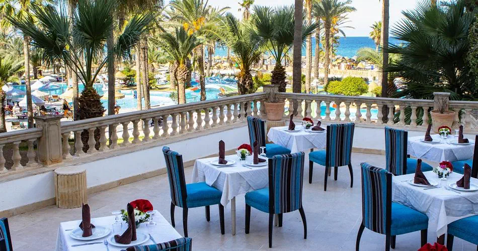 All Inclusive: Śniadania, lunch, kolacja w formie bufetu Póżne śniadanie od 10:00 do 12:00 Przekąski przez cały dzień w wybranych barach Napoje bezalkoholowe i alkohole lokalnej produkcji serwowane są w wybranych barach hotelowych w godzinach ich otwarcia. Alkohole importowane są dodatkowo płatne. Raz na pobyt kolacja w restauracji a'la carte (wymagana wcześniejsza rezerwacja)