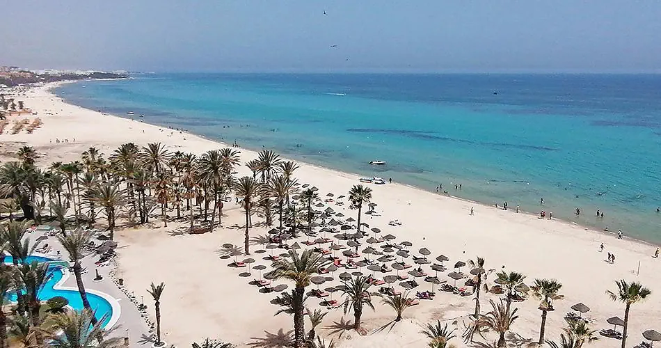 Prywatna, piaszczysta bezpośrednio przy hotelu, jedna z najpiękniejszych w Tunezji Leżaki i parasole plażowe bezpłatnie Ręczniki plażowe dostepne po wpłaceniu depozytu