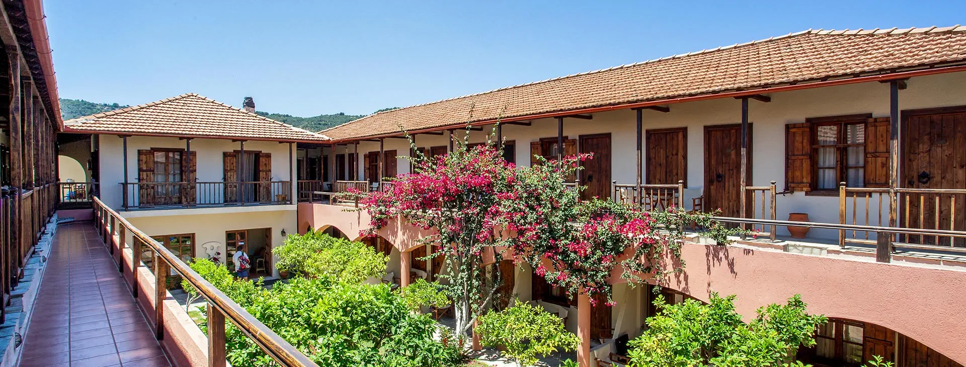 Położenie: Hotel położony w ładnie zagospodarowanym ogrodzie, w otoczeniu drzew mandarynkowych i cytrynowych przeplatanych kolorowymi kwiatami bugenwilli. Do portu ok. 400 m, skąd możemy popłynąć na inne wyspy Sporad, w tym Skiathos. Obiekt położony jest zaledwie ok. 400 m od centrum miasta Skopelos, stolicy soczysto zielonej wyspy, z piękną architekturą, która znamy choćby z popularnego filmu „Mamma Mia”. W centrum miasta znajdują się liczne sklepy, tawerny i restauracje. Tuż przy hotelu znajduje się przystanek autobusowy, z którego można dostać się do głównych plaż wyspy - Velanio, Stafilos, Panormos i Milia. Transfer z lotniska do hotelu trwa ok. 3 godz. (obejmuje przeprawę promową). UWAGA! Cena nie obejmuje lokalnego podatku turystycznego w wysokości 1,5 EUR/pokój/dzień. Podatek jest obligatoryjny i płatny bezpośrednio w recepcji, przed zakwaterowaniem Klientów w hotelu. Plaża: Obiekt położony ok. 350 m od piaszczysto-żwirowej plaży miejskiej. Przy plaży działa zorganizowany bar plażowy z leżakami i parasolami - odpłatnie. Do dyspozycji gości: Hotel składa się z 2-piętrowych budynków. Recepcja 24 h. z lobby, klimatyzowana restauracja główna z tarasem (dostępne krzesełka dla dzieci), basen (ze słodką wodą), taras słoneczny (leżaki i parasole przy basenie - bezpłatne), bar przy basenie, sejf w recepcji (bezpłatne). Pokoje: 96 wygodnie urządzonych pokoi 2-osobowych (możliwość 1 dostawki dla osoby dorosłej lub 2 dostawek dla dzieci, w formie rozkładanej sofy) z łazienkami (suszarka do włosów) i balkonami lub tarasami (meble ogrodowe). W pokojach znajdują się: TV-sat, telefon, lodówka (bezpłatna), klimatyzacja (indywidualnie sterowana, bezpłatna). Pokoje typu standard mieszczą 1 dostawkę, a pokoje family 2 dostawki - są zbliżone pod względem wyposażenia i wielkości. Pokoje typu studio są większe od pozostałych pokoi. Łóżeczko dla dziecka do 2 lat - bezpłatne, brak możliwości wstawienia łóżeczka w przypadku rezerwacji dostawki w pokoju. W naszej ofercie posiadamy również tańsze pokoje typu economy, które są usytuowane na tzw. niskim parterze. Ostatnia renowacja pokoi miała miejsce w 2011 r. Wyżywienie: All Inclusive light: śniadania w formie bufetu (08:00-10:30), lunch - w formie przekąsek, typu pizza, gyros, hamburger, hot-dog, makaron - jedno danie każdego dnia (13:00-14:00), kolacje w formie bufetu (19:00-21:30), przerwa kawowa - herbata, kawa filtrowana, ciasteczka (16:00-17:00). Napoje bezalkoholowe: woda, soki, słodkie napoje typu cola, fanta, kawa, herbata oraz lokalne alkoholowe: piwo, wino, tsipouro (10:00-22:00). Program sportowy i animacyjny: Hotel raz w tygodniu organizuje wieczór z muzyką na żywo, raz w tygodniu pokaz filmy Mamma Mia. Ponadto 6 x w tygodniu figloklub z polskim animatorem (Więcej informacji o Figloklubach znajdziesz na stronie r.pl/figlokluby). Internet: W ogólnodostępnych częściach hotelu (również w pokojach) internet Wi-Fi - bezpłatny. Kategoria lokalna: *** Strona www: