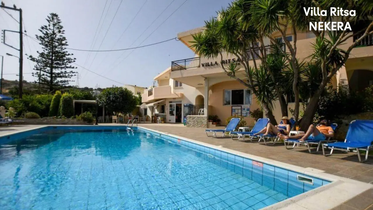 Stalida, ok. 2,5 km od parku wodnego Star Beach. Port lotniczy w Heraklionie oddalony o ok. 30 km.