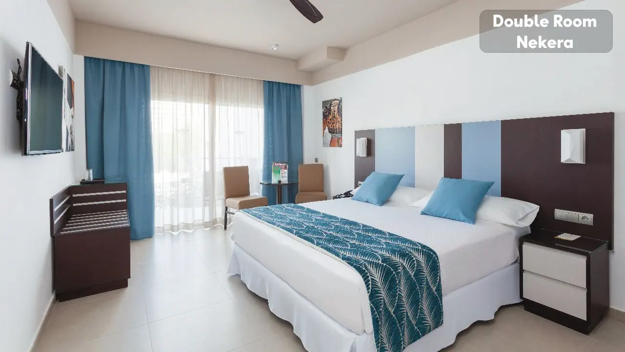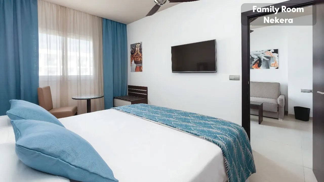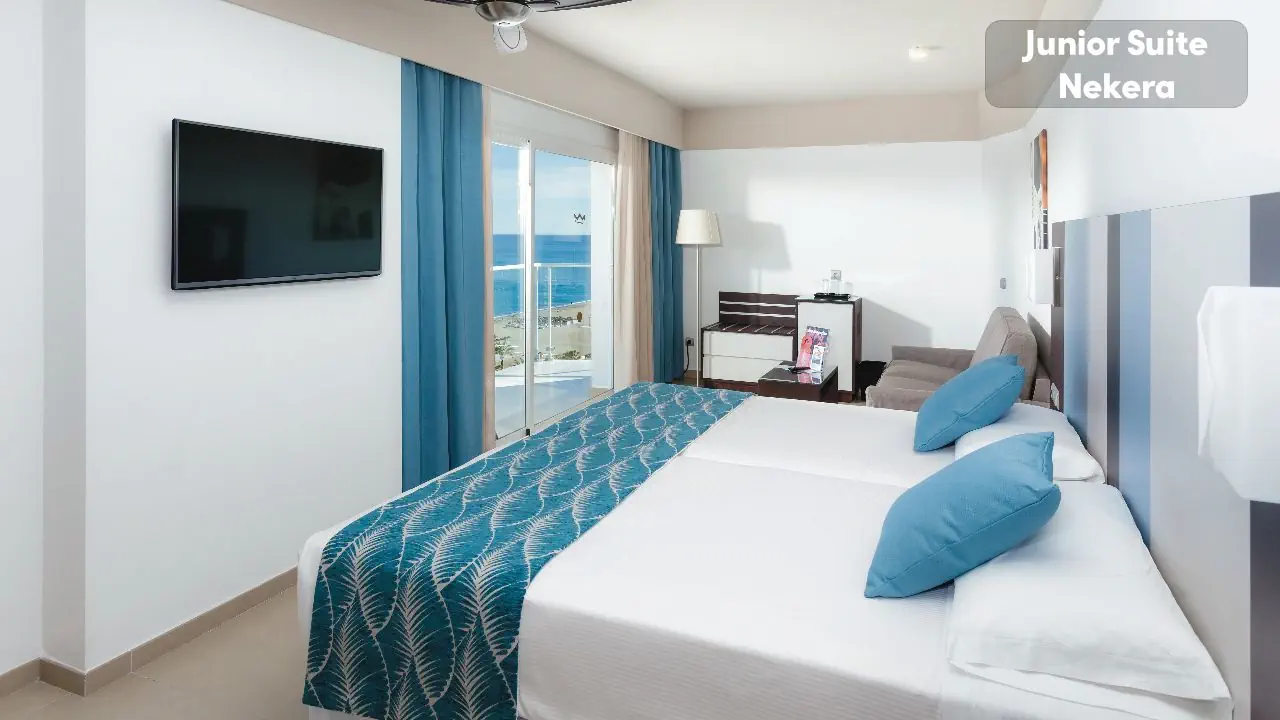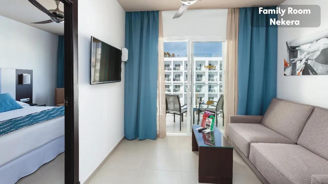 Double Room - powierzchnia 26m² - taras lub balkon - podwójne łóżko lub 2 pojedyncze łóżka - telewizor - lodówka - czajnik - zestaw do parzenia kawy - łazienka z prysznicem - sejf Family Room - powierzchnia 30m² - taras lub balkon - podwójne łóżko - telewizor - sofa - lodówka - czajnik - zestaw do parzenia kawy - łazienka z prysznicem - sejf Junior Suite - powierzchnia 36m² - taras lub balkon z widokiem na morze - dwa pojedyncze łóżka - telewizor - sofa - lodówka - czajnik - zestaw do parzenia kawy - łazienka z prysznicem - sejf