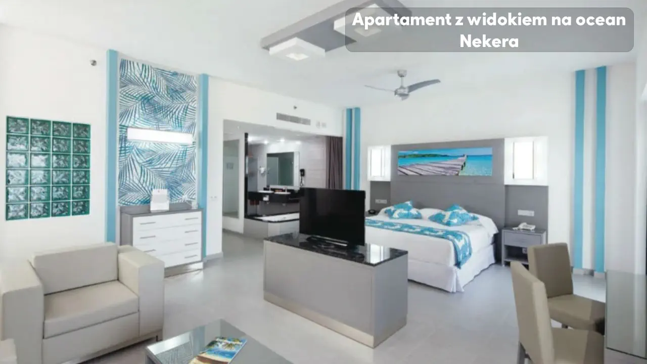 Pokój Dwuosobowy Standard - powierzchnia 35m2 - taras lub balkon - klimatyzacja - podwójne łóżko lub dwa pojedyncze łóżka - telewizor - lodówka - żelazko - łazienka z prysznicem - sejf Pokój Rodzinny - powierzchnia 79m2 - taras lub balkon - klimatyzacja - dwie sypialnie - podwójne łóżko oraz dwa pojedyncze łóżka - telewizor - sofa - lodówka - żelazko - 2 łazienki z wanną i prysznicem - sejf Apartament z widokiem na ocean - powierzchnia 53m2 - taras lub balkon - klimatyzacja - podwójne łóżko - telewizor - sofa - garderoba - lodówka - żelazko - łazienka z wanną z hydromasażem - sejf