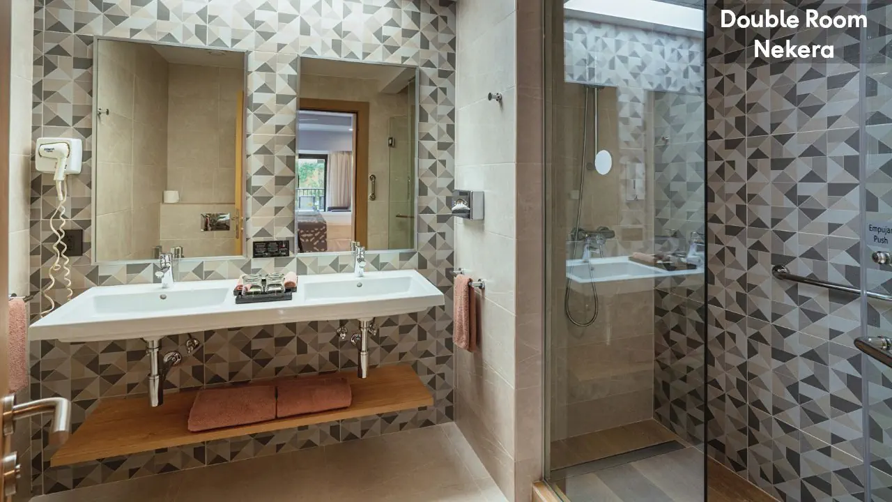 Pokój dwuosobowy standard - powierzchnia 28 m² - dwa pojedyncze łóżka lub jedno podwójne - łazienka z prysznicem - podwójna umywalka - suszarka do włosów - strefa wypoczynkowa - rozkładana sofa - balkon lub taras z krzesłami i stolikiem - telewizja satelitarna - ekspres do kawy - minibar (za opłatą) - sejf (za opłatą) Pokój rodzinny - powierzchnia 49 m² - 3 łóżka pojedyncze lub 1 podwójne + 1 pojedyncze - łazienka z prysznicem - podwójna umywalka - suszarka do włosów - strefa wypoczynkowa - rozkładana sofa - balkon lub taras z krzesłami i stolikiem - telewizja satelitarna - ekspres do kawy - minibar (za opłatą) - sejf (za opłatą) Apartament Suite - powierzchnia 70 m² - łóżko podwójne - łazienka przy sypialni z wanną - oddzielnie prysznic - podwójna umywalka - suszarka do włosów - strefa wypoczynkowa - rozkładana sofa - taras z krzesłami i stolikiem - telewizja satelitarna - ekspres do kawy - minibar (za opłatą) - sejf (za opłatą)